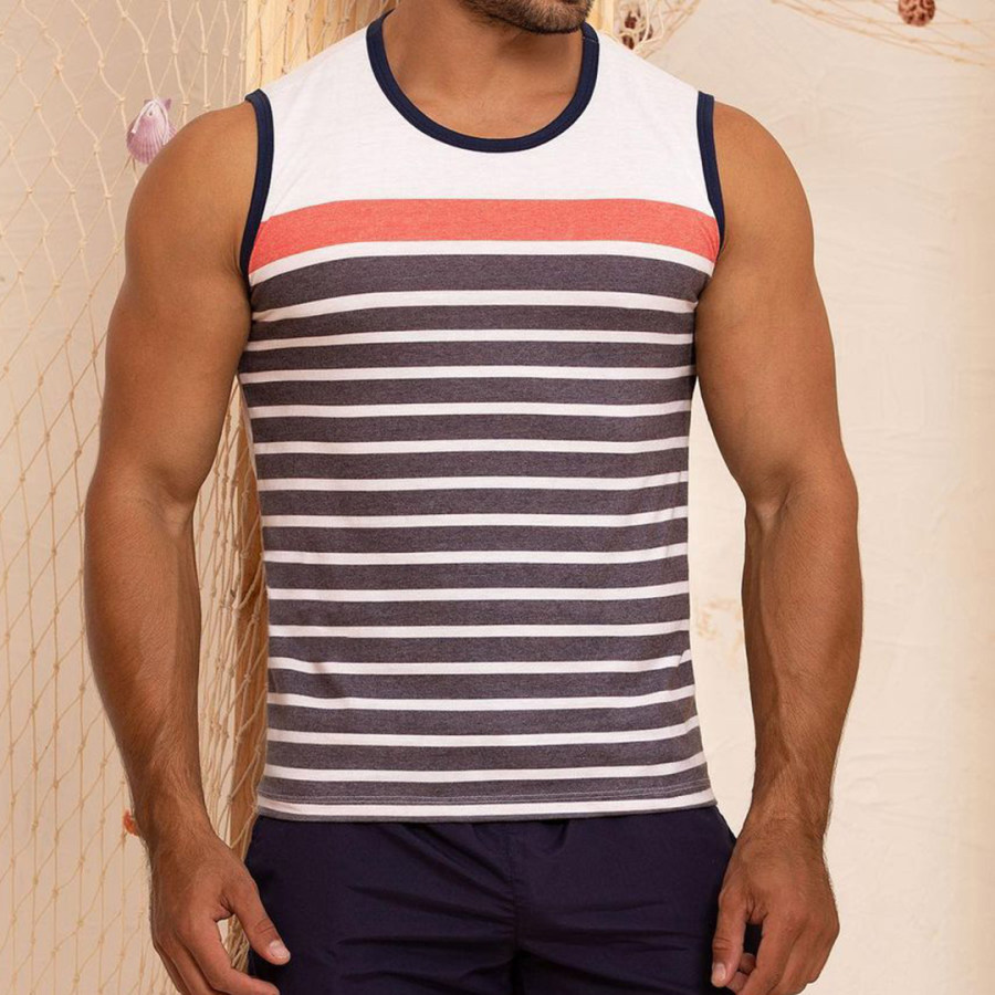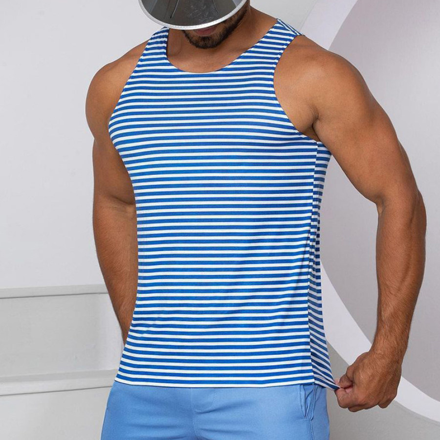 Summer Men's Striped Print Tank Top Casual Breathable Sleeveless Vest T-Shirt |