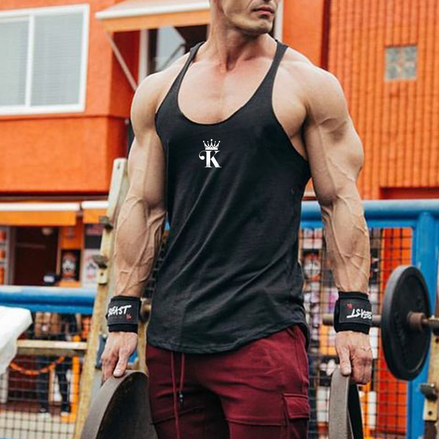 Black Men's Sports Breathable Vest Letter K Print King Style |