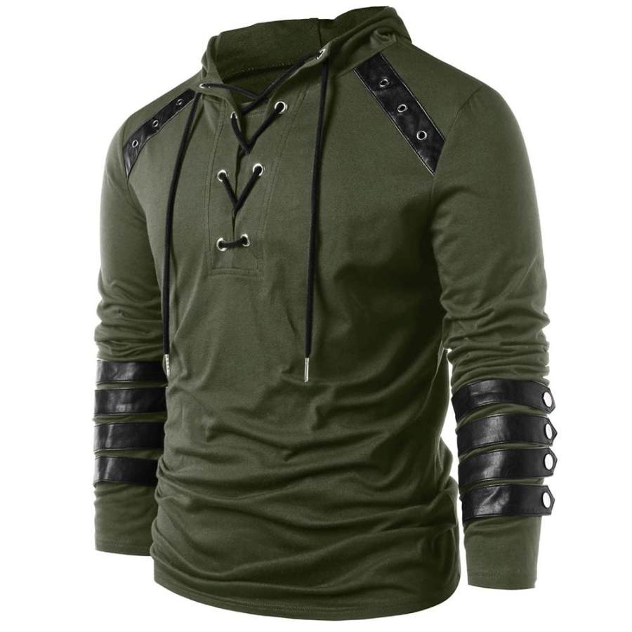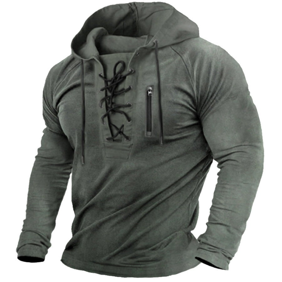 Men's Outdoor Tactical Lace-Up Pocket Long Sleeve Hooded T-Shirt |