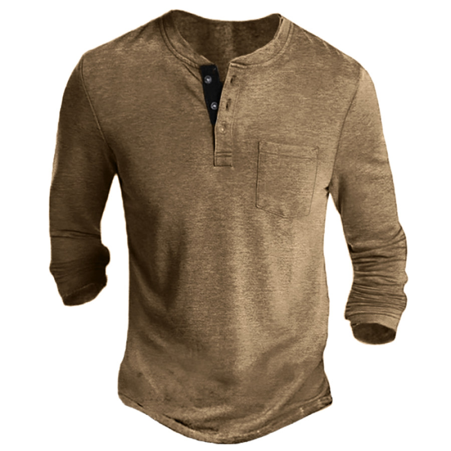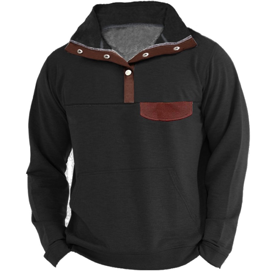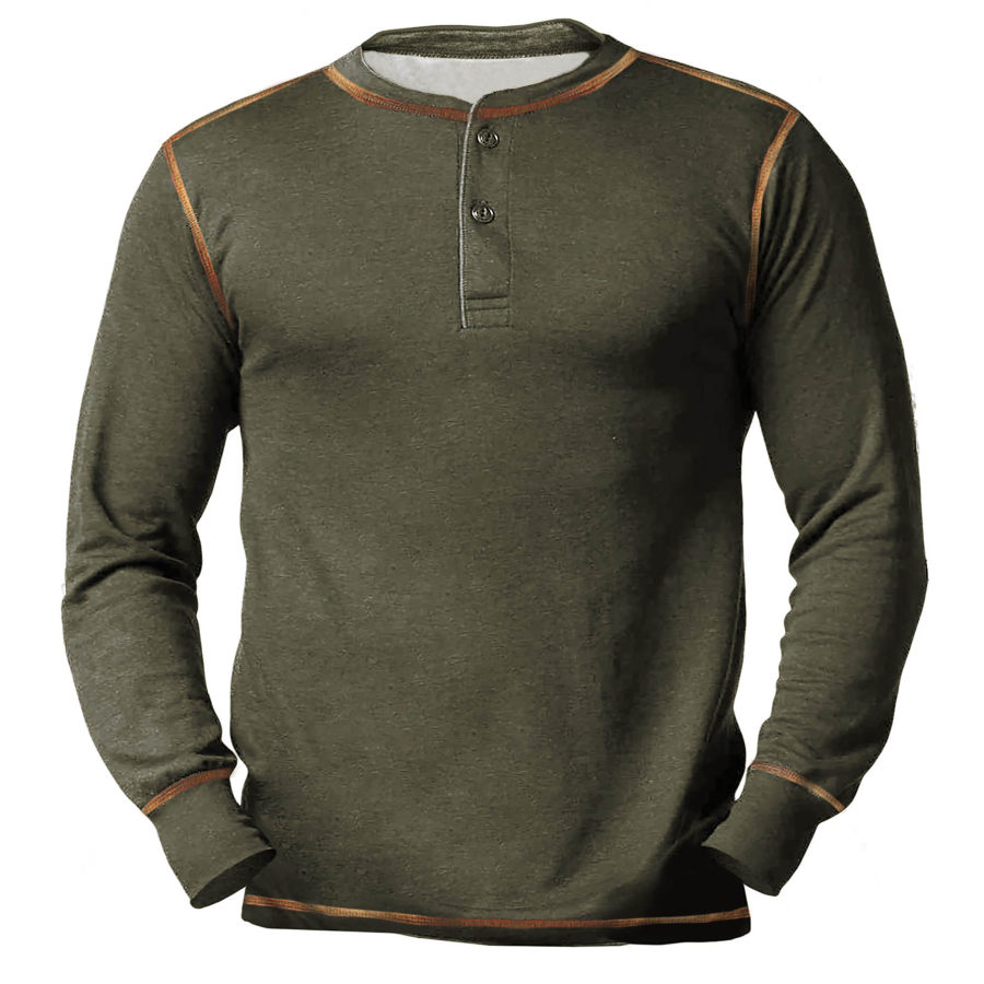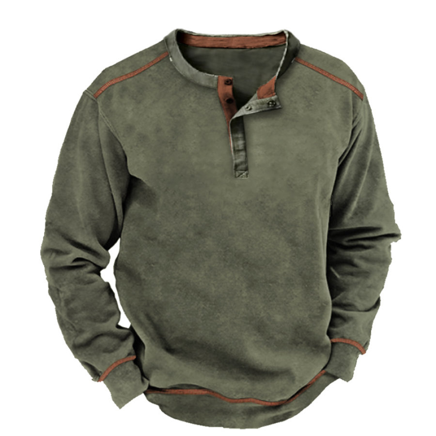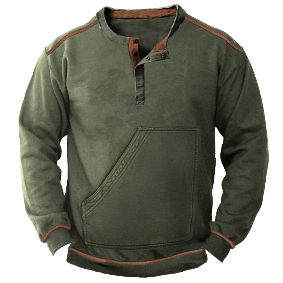 Men's Contrast Vintage Pocket Henley Sweatshirt |
