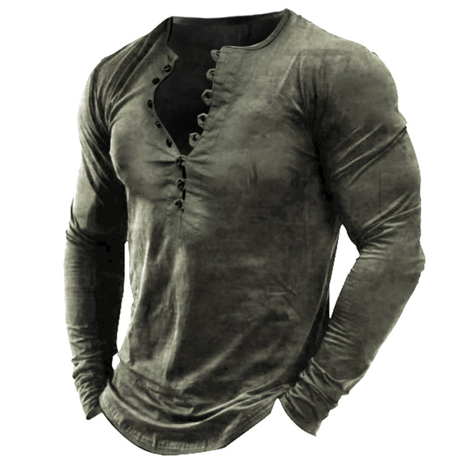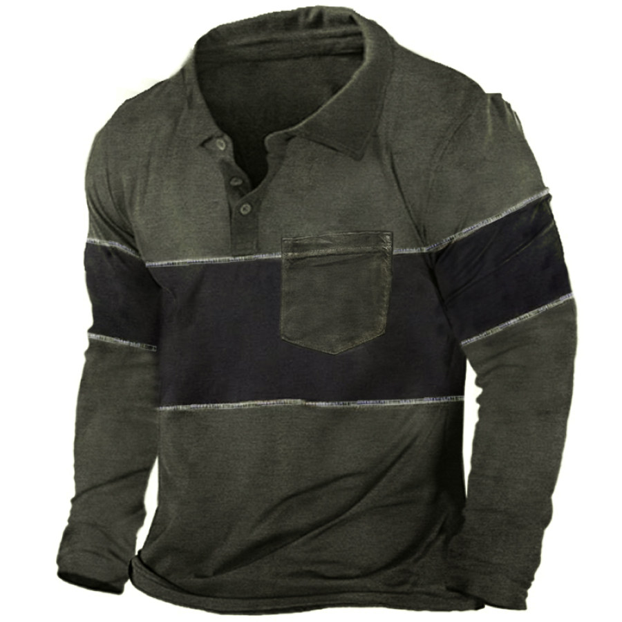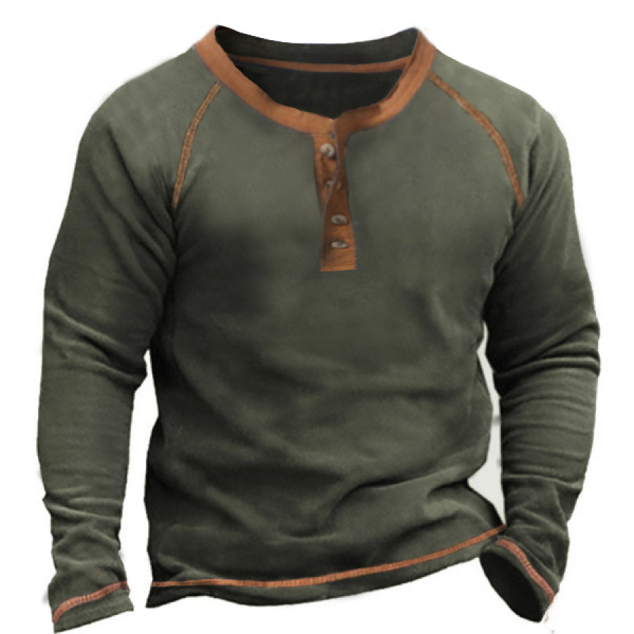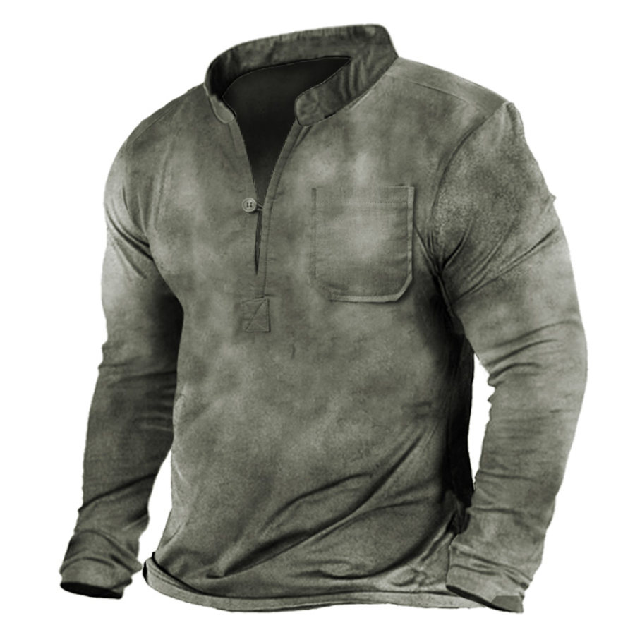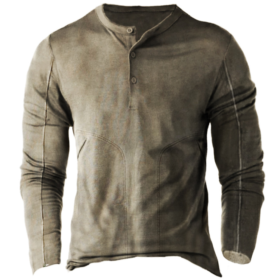 Men's Contrast Vintage Pocket Henley Sweatshirt |