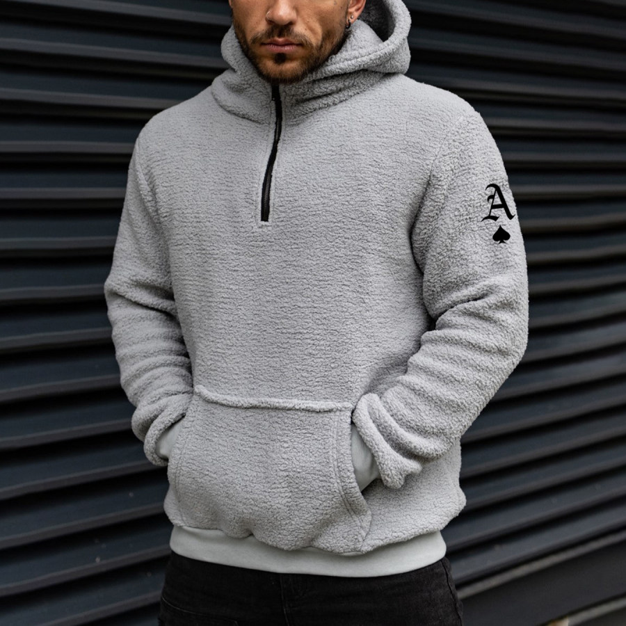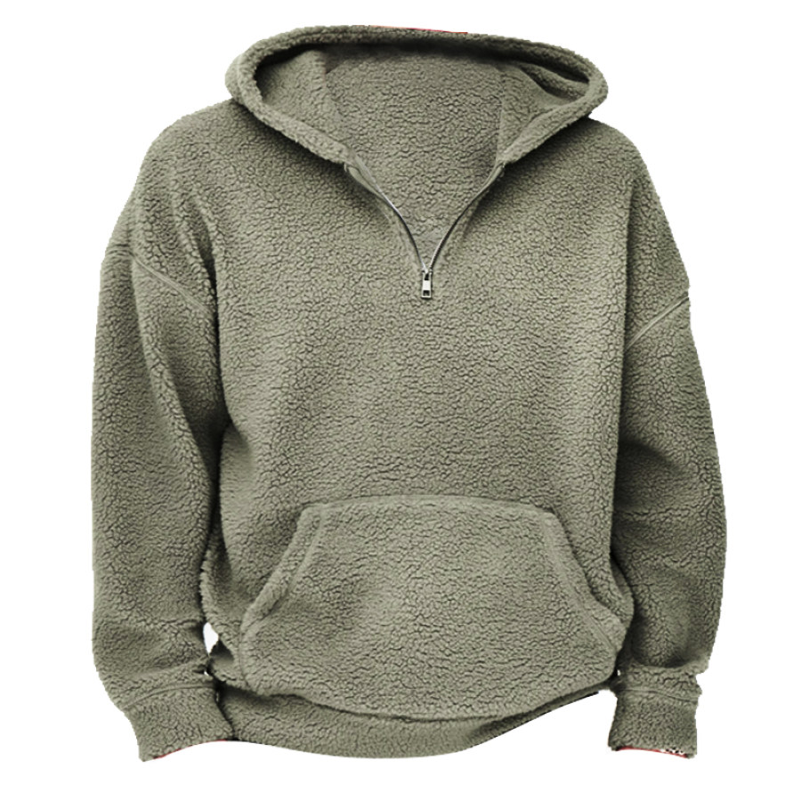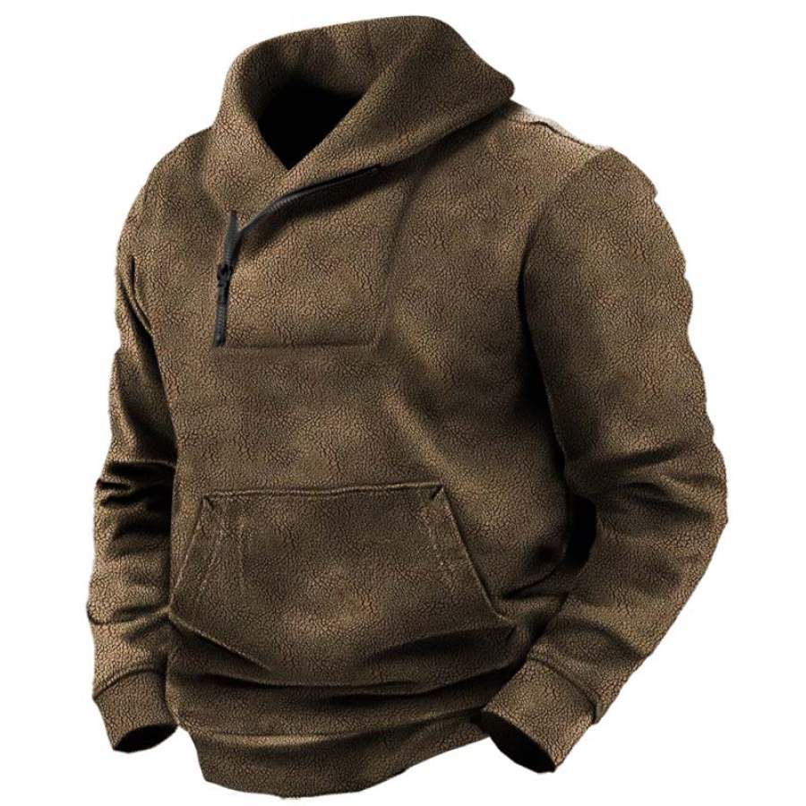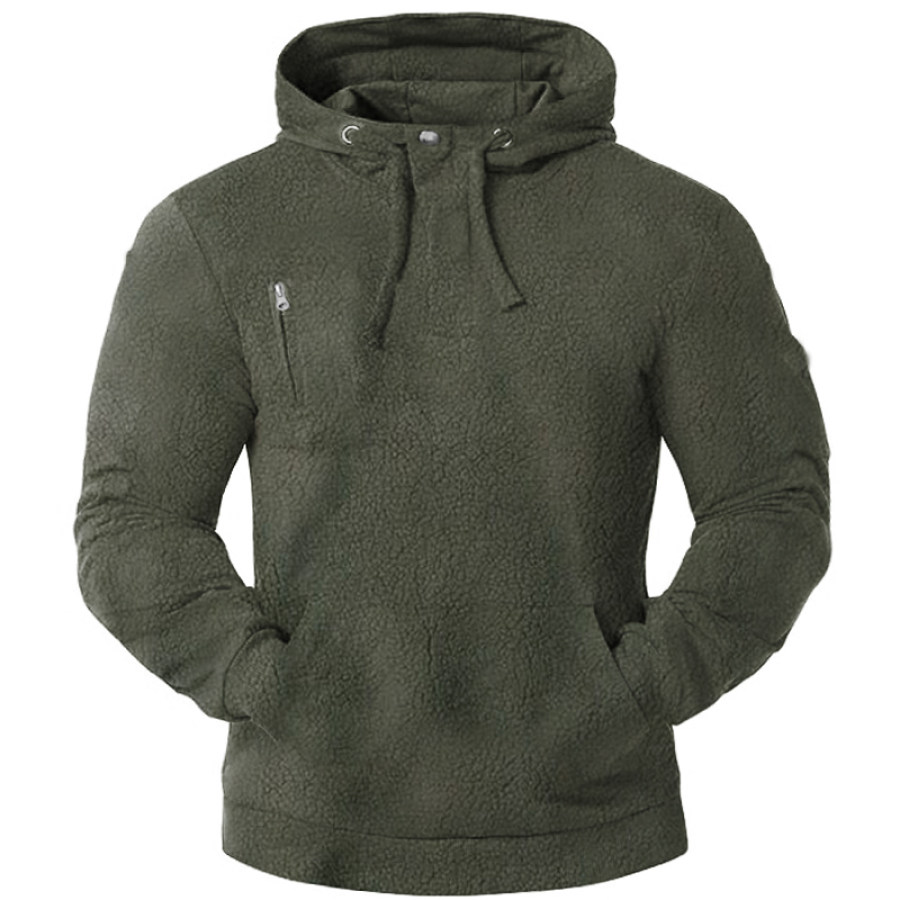 Men's Zip Pocket Fleece Thickened Hoodie |