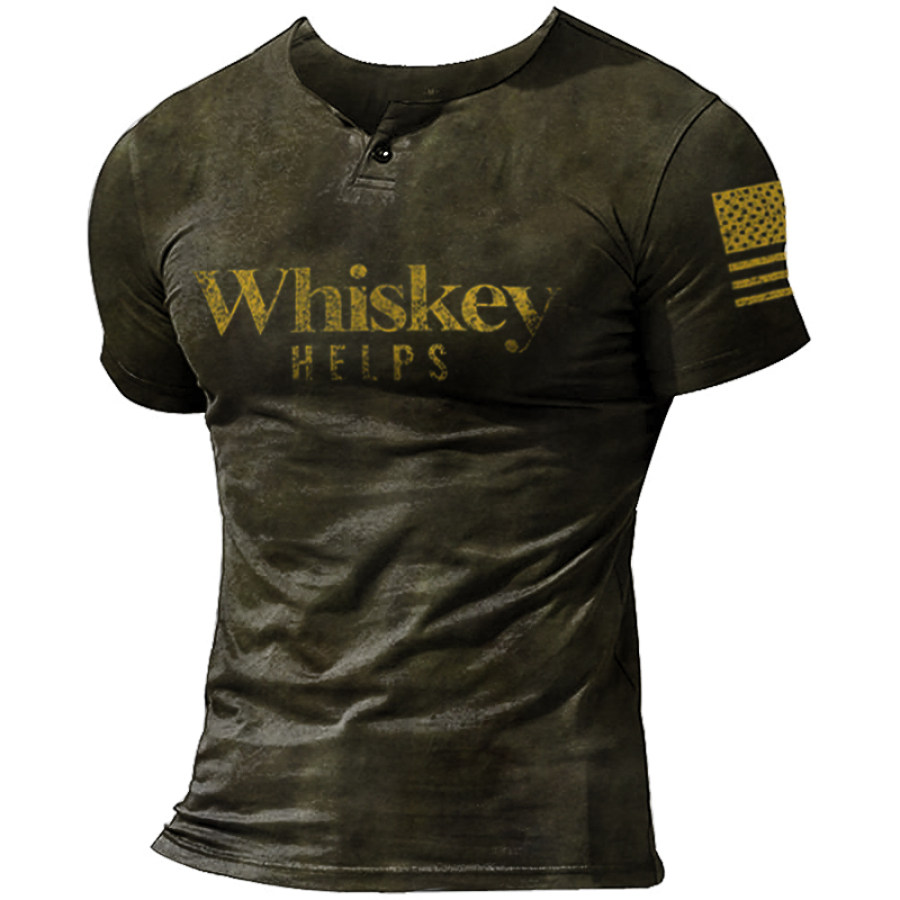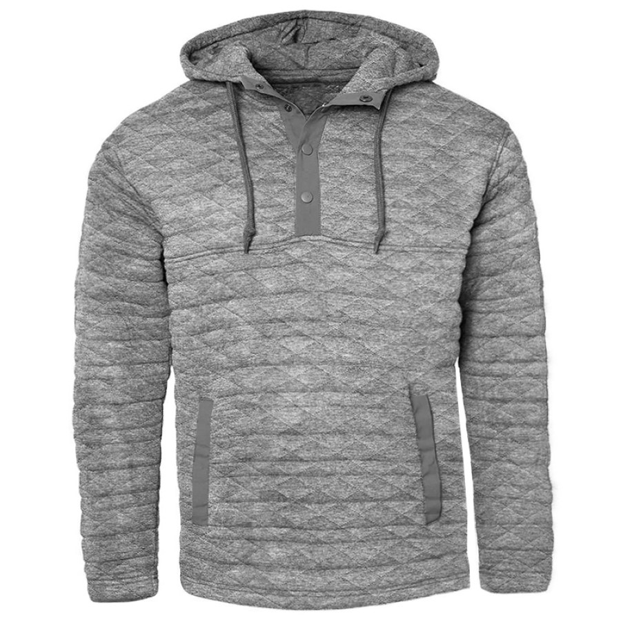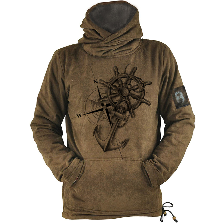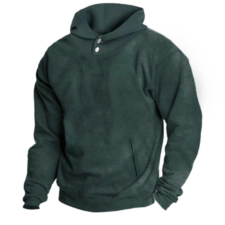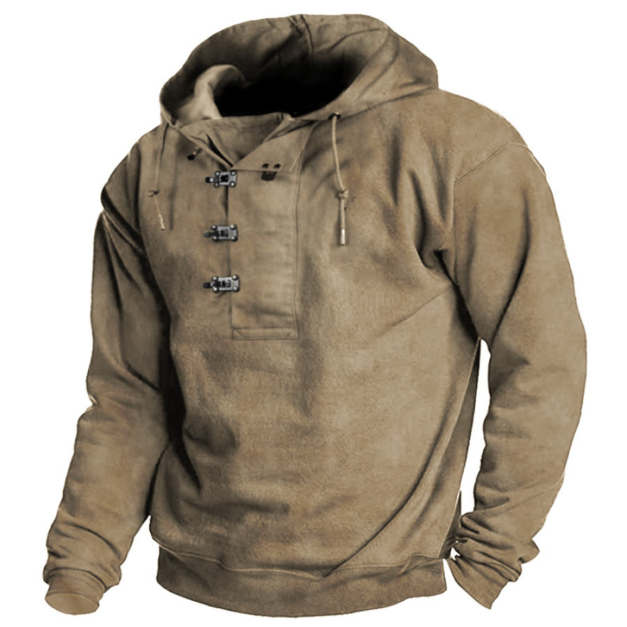 Men's Western Retro Print Outdoor Thickened Henley Collar Hoodie |