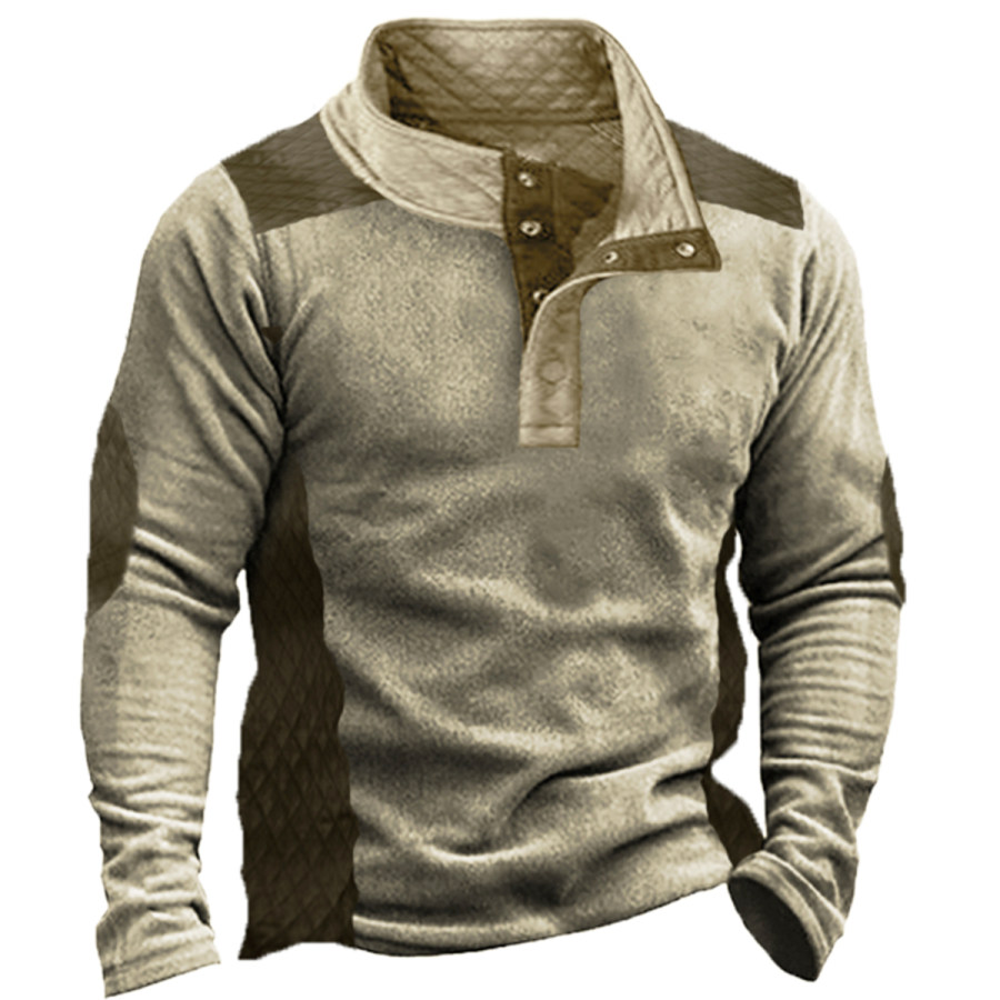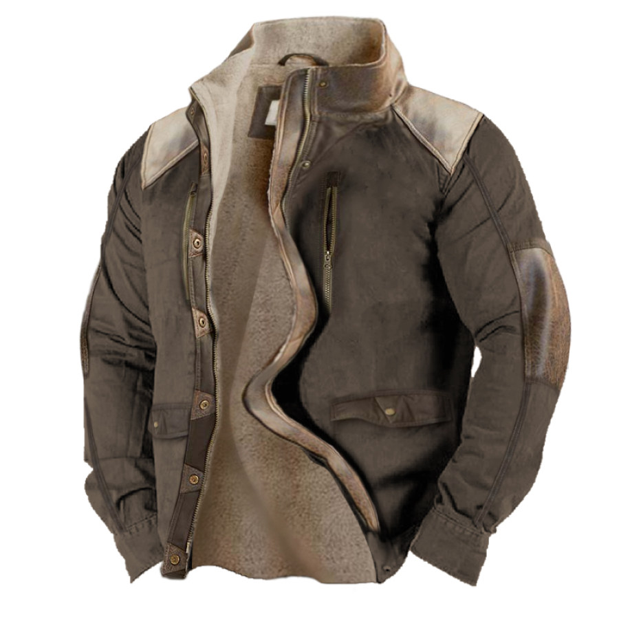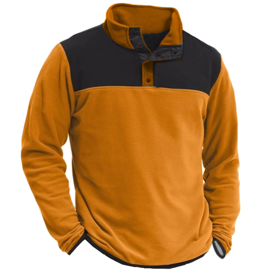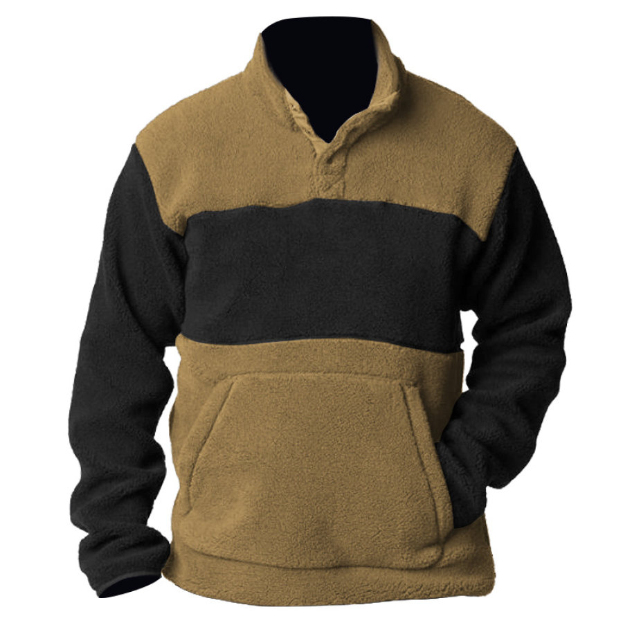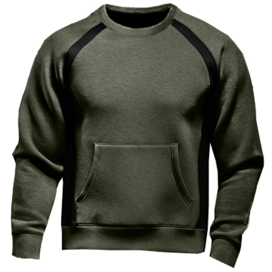 Men's Retro Contrast Color Patchwork Outdoor Training Fleece Sweatshirt |