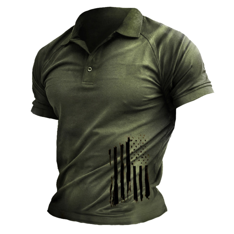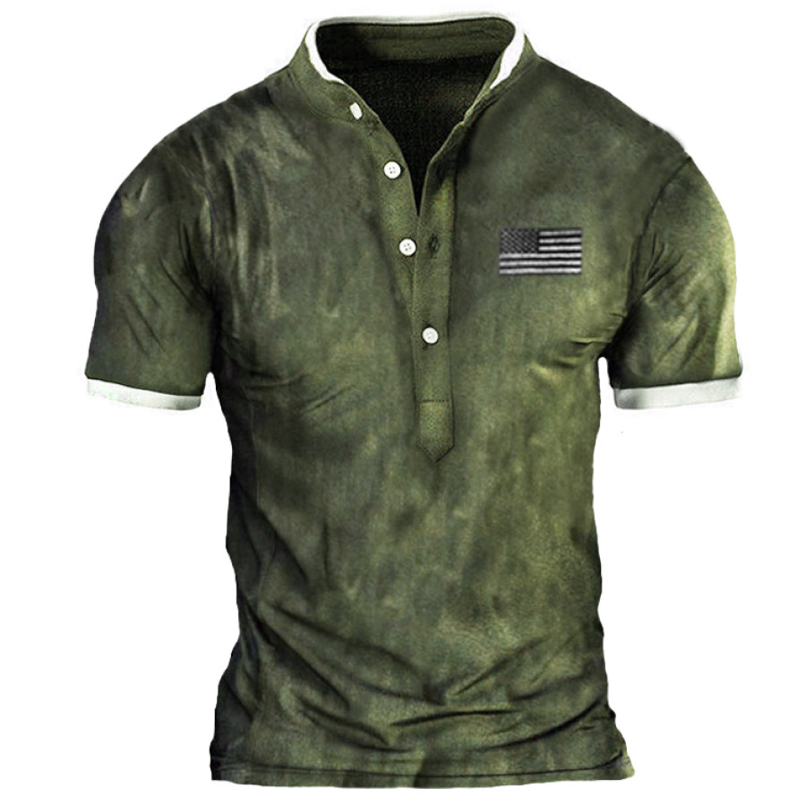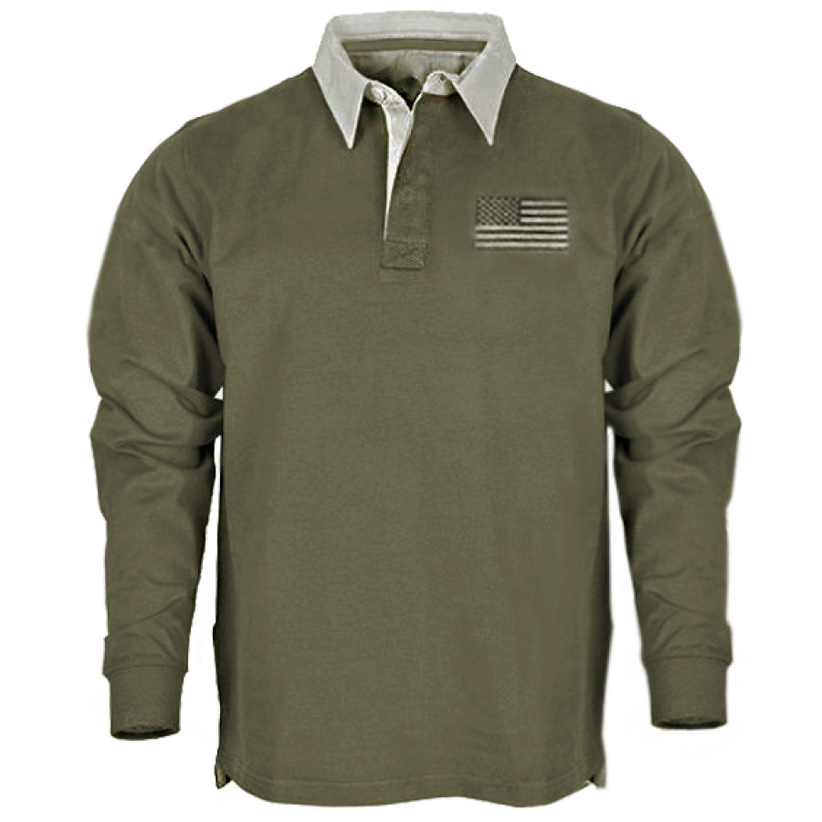 Men's Vintage American Flag Velcro Button Collar Hoodie |