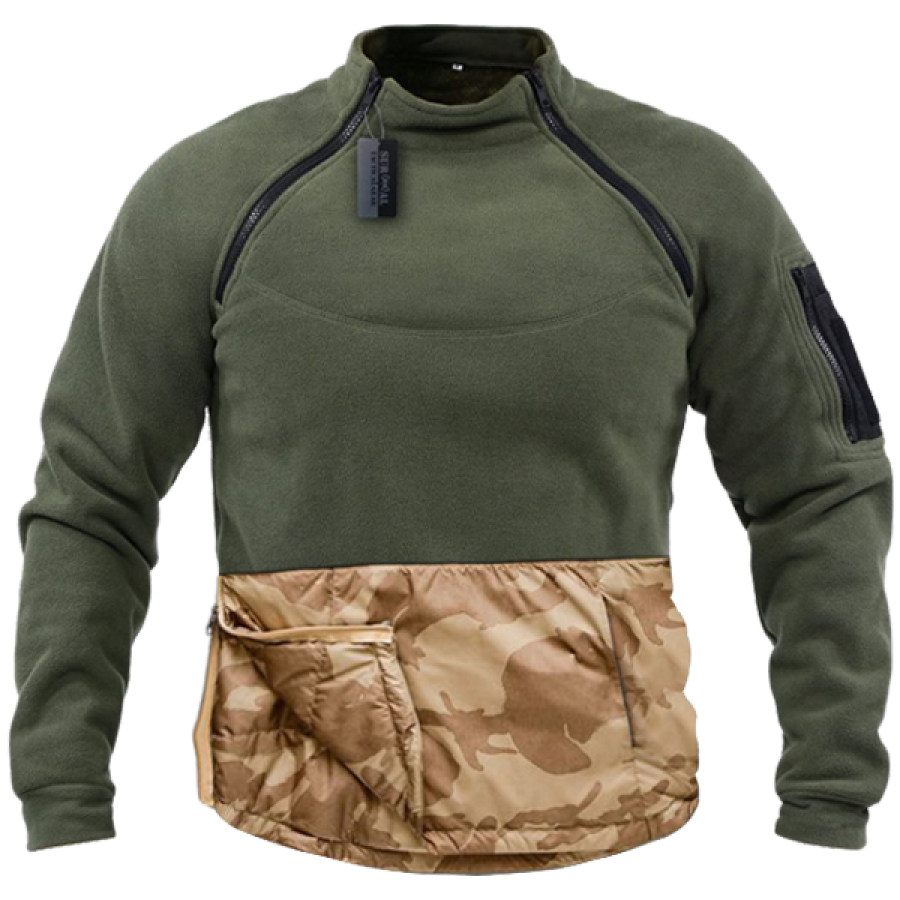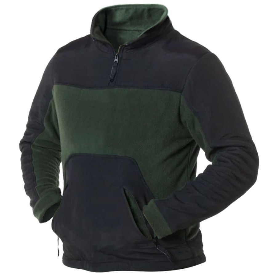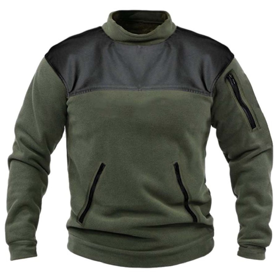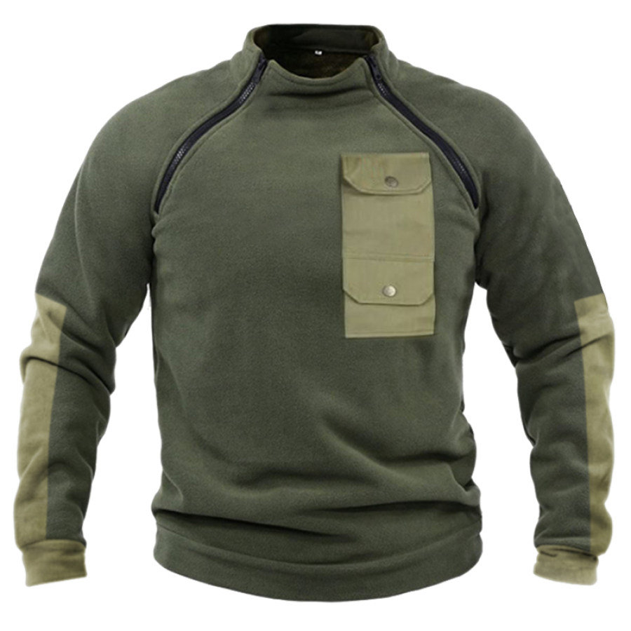 Men's Polar Fleece Zip Pocket Patchwork Polar Thermal Sweatshirt |