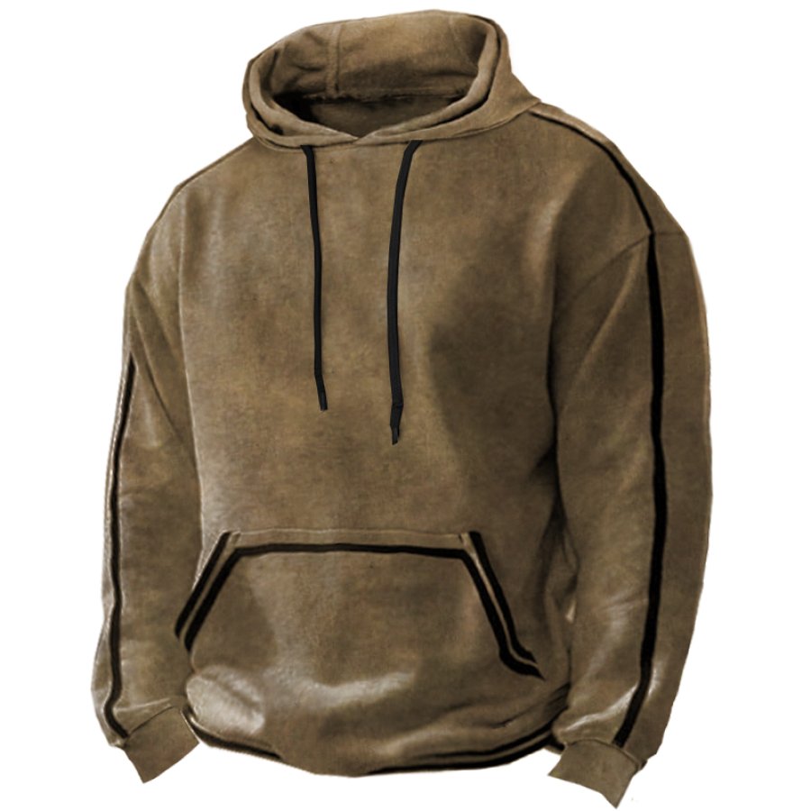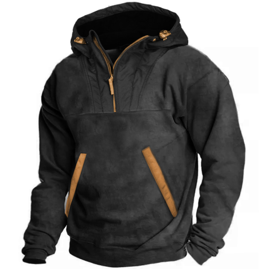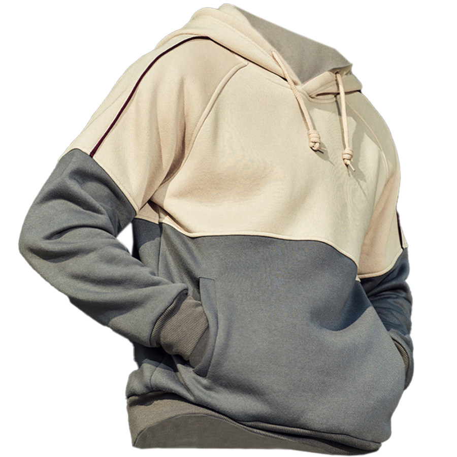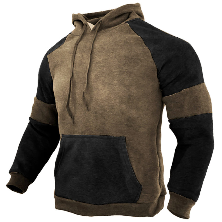 Men's Vintage Outdoor Contrast Patchwork Pocket Hoodie |