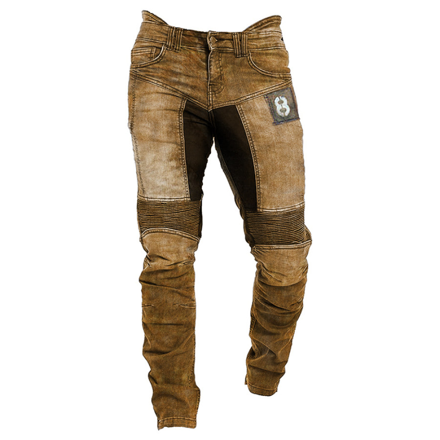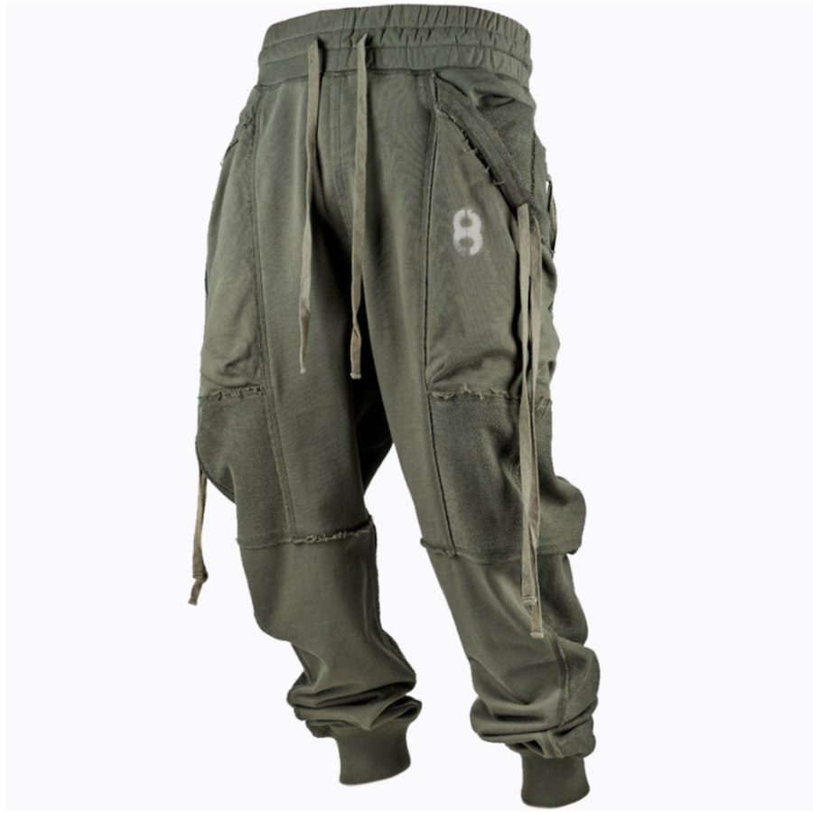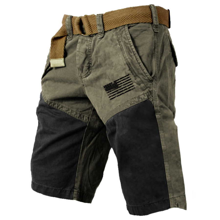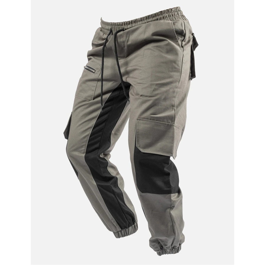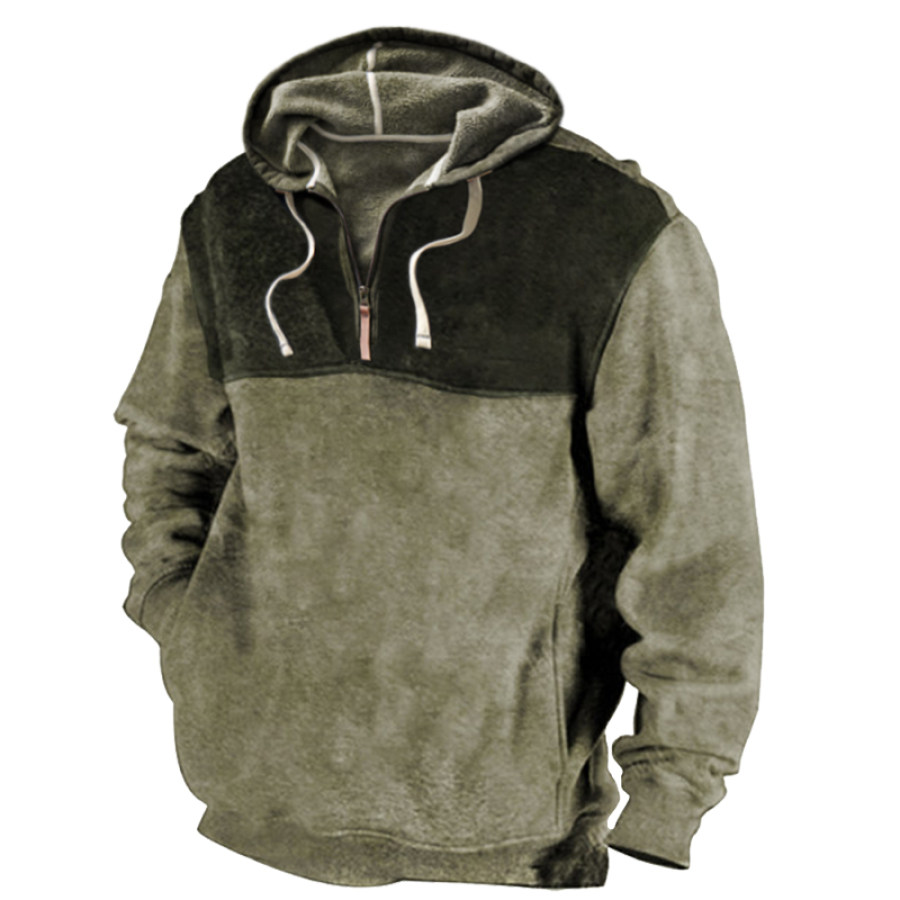 Men's Vintage Outdoor Contrast Patchwork Pocket Hoodie |