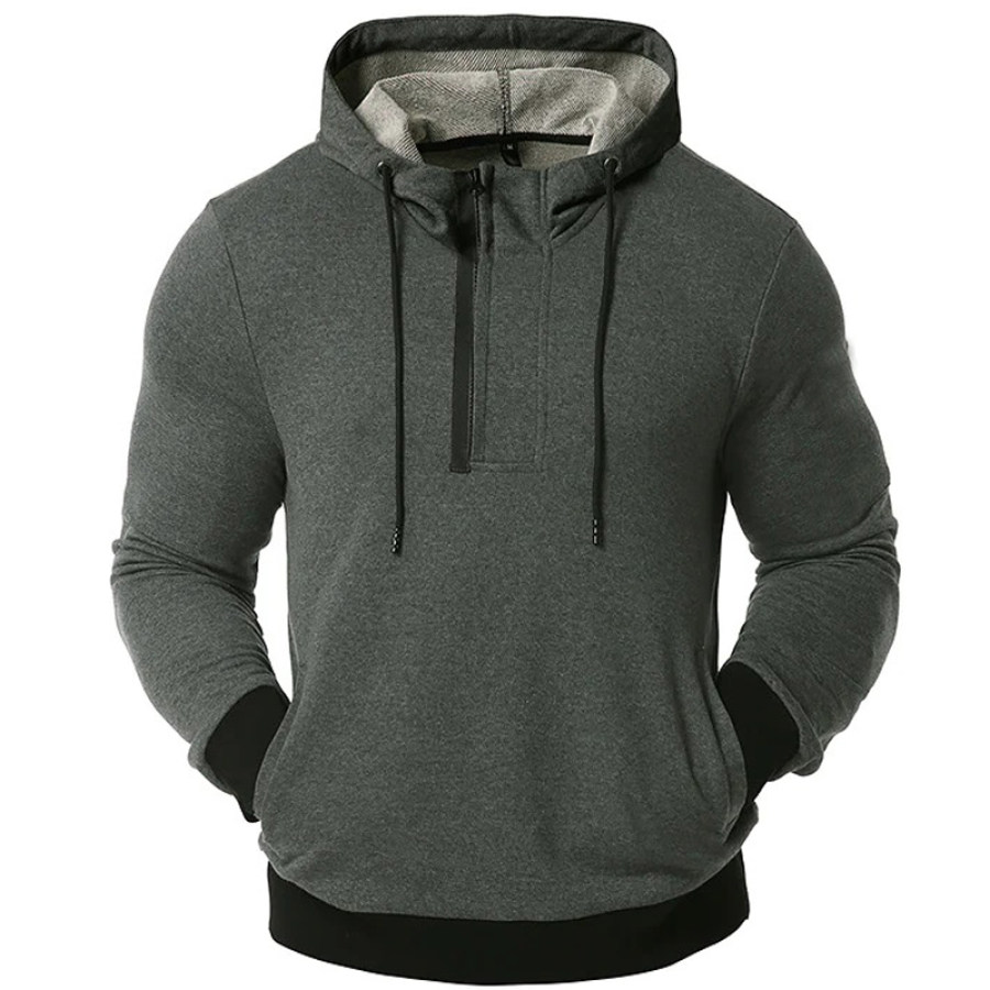 Men's Outdoor Sports Zipper Neckline Pocket Hoodie |