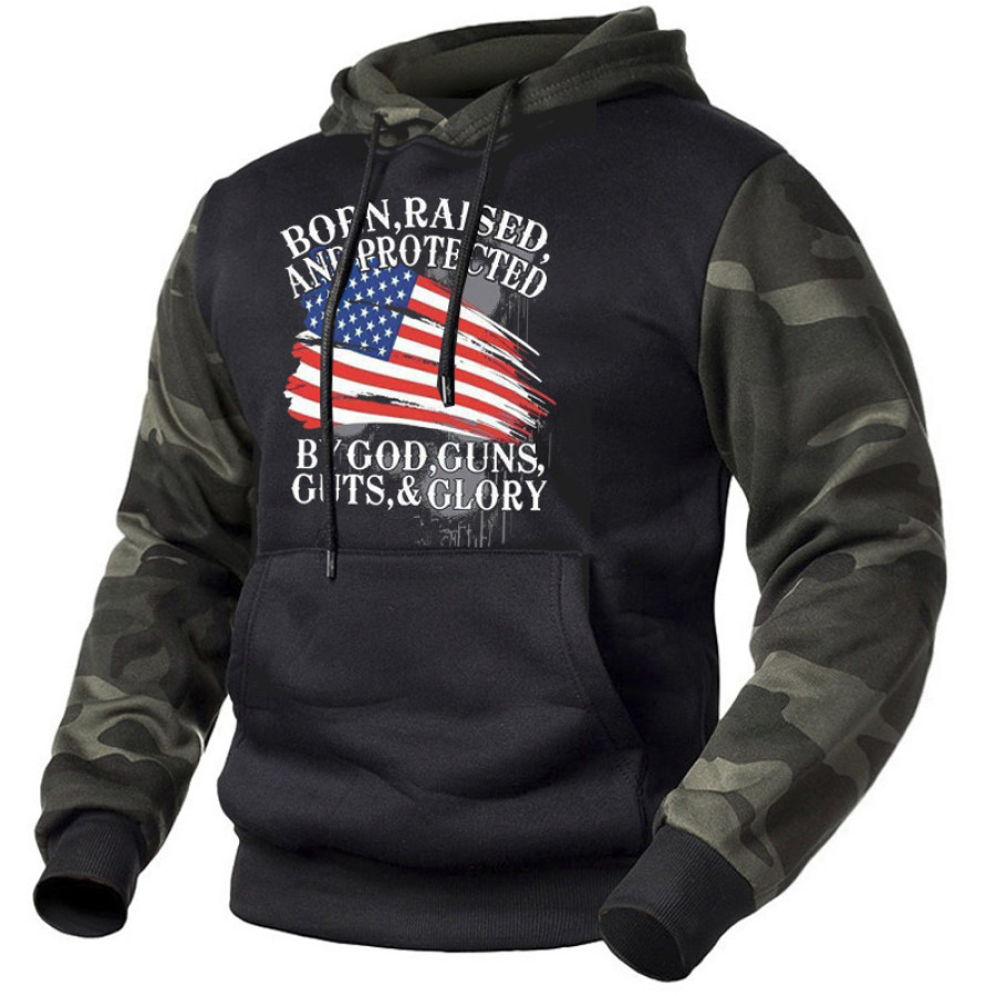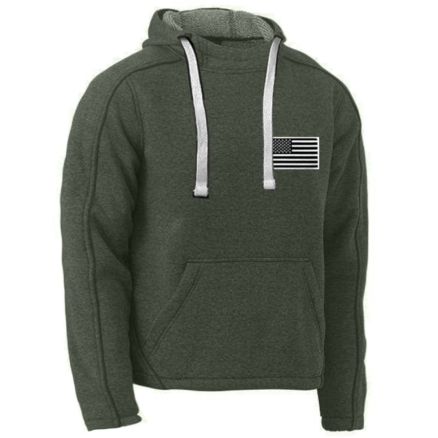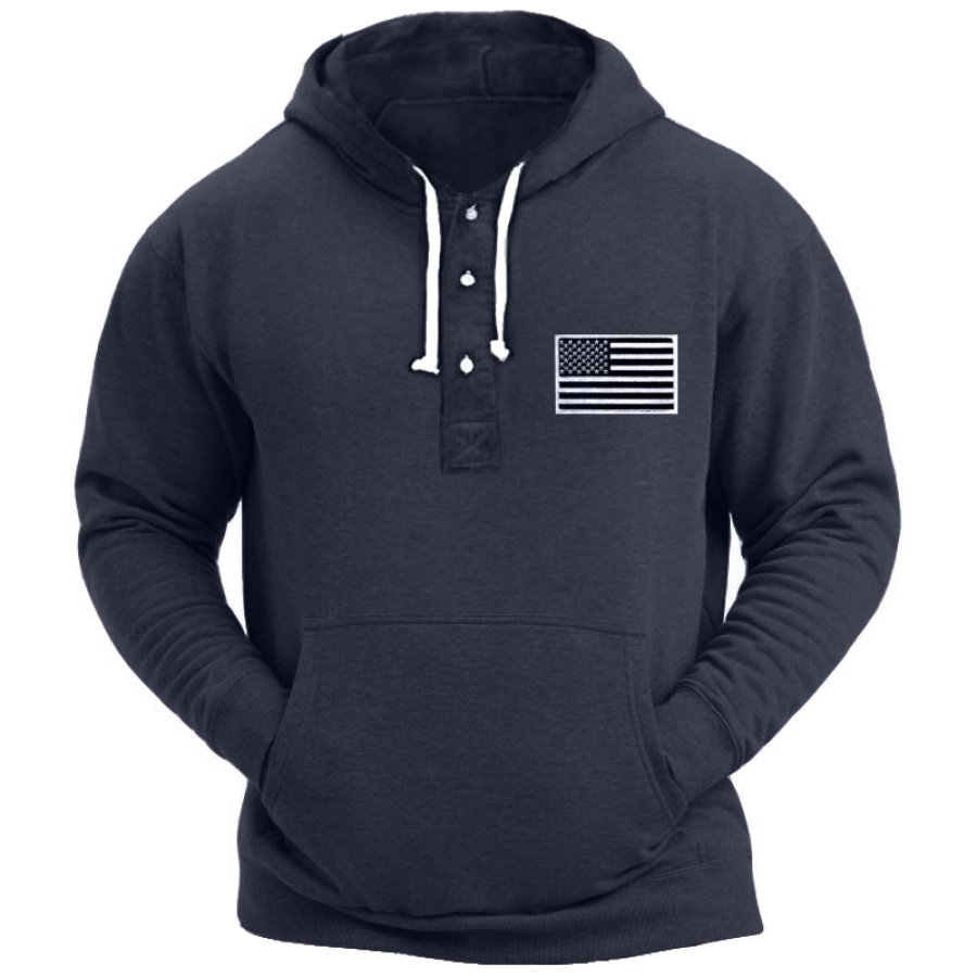 Men's Vintage American Flag Velcro Button Drawstring Hoodie |