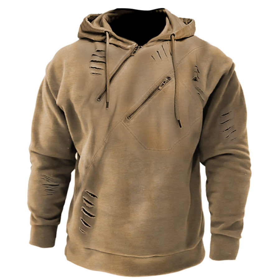 Men's Retro Outdoor Warm Double Zipper Tactical Hoodie |