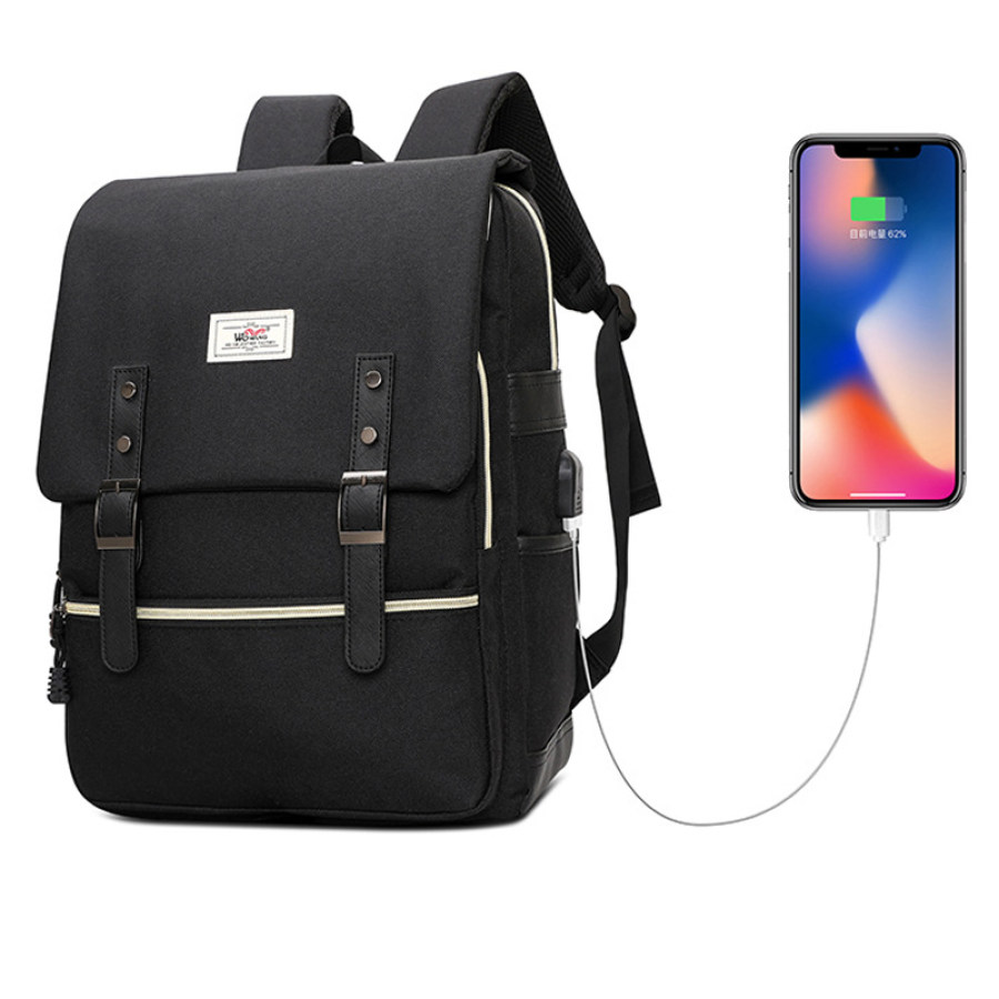 Vintage Laptop Backpack USB Charging Port |