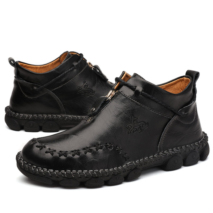 Men's Genuine Leather Vintage Zipper Casual Business Office Soft Walking Boots |