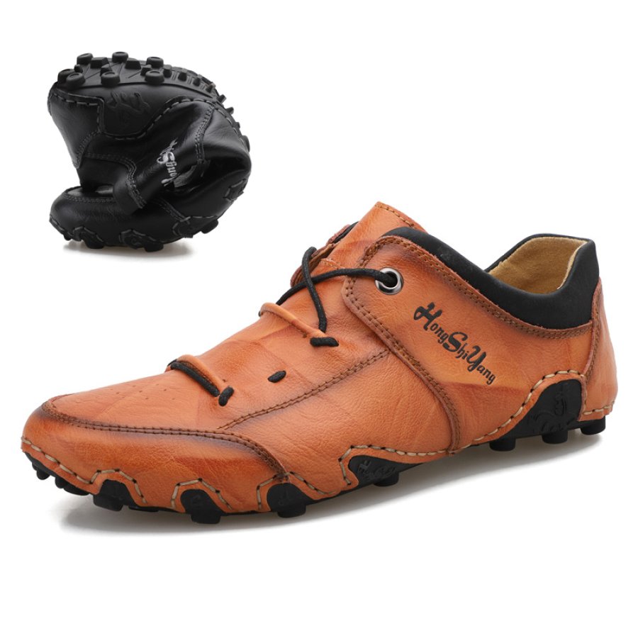 New casual men's shoes large size hand-sewn peas shoes business retro soft sole men's shoes |