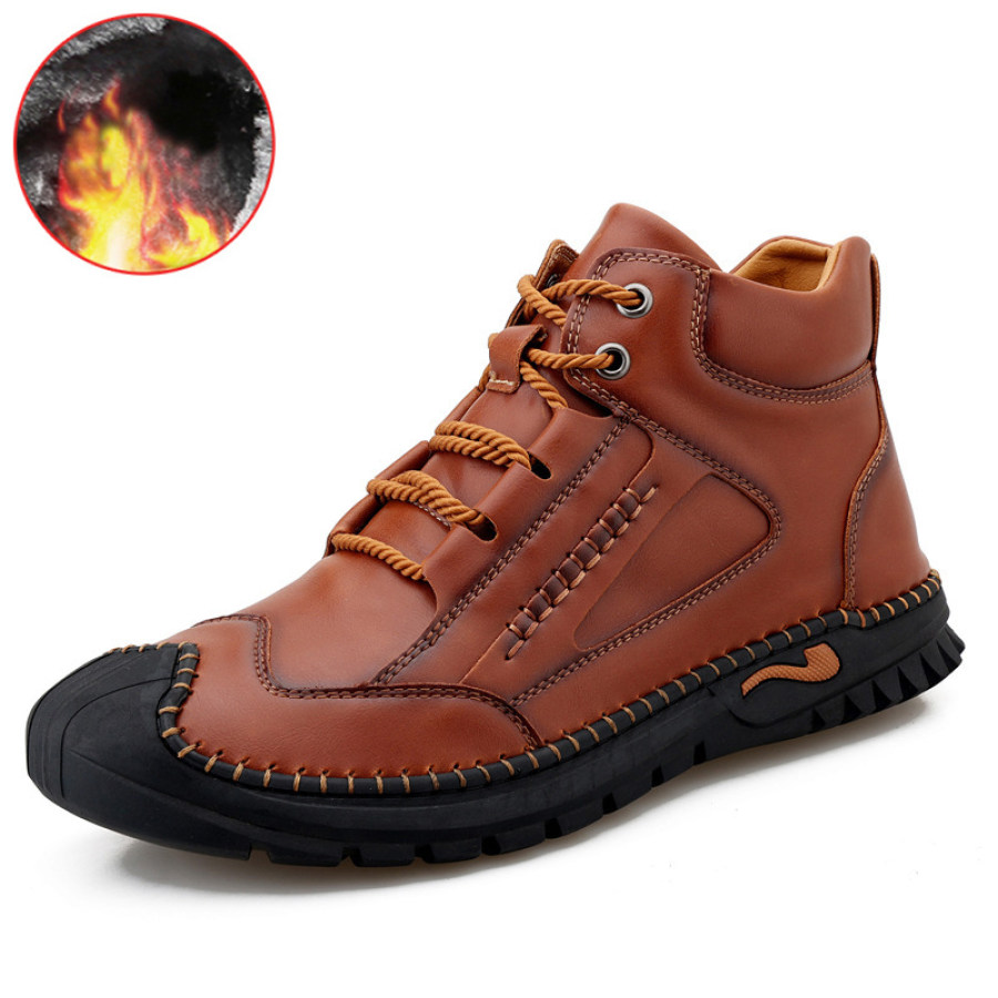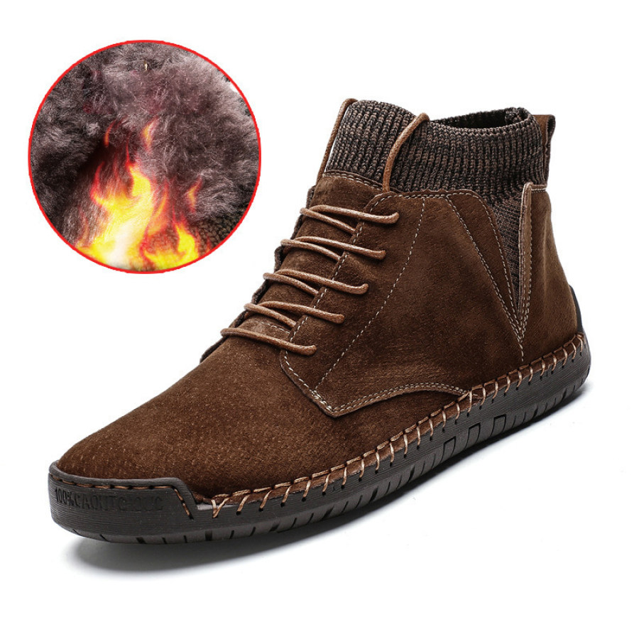 Men's Genuine Leather Warm And Non-slip High-top Handmade Casual Shoes |
