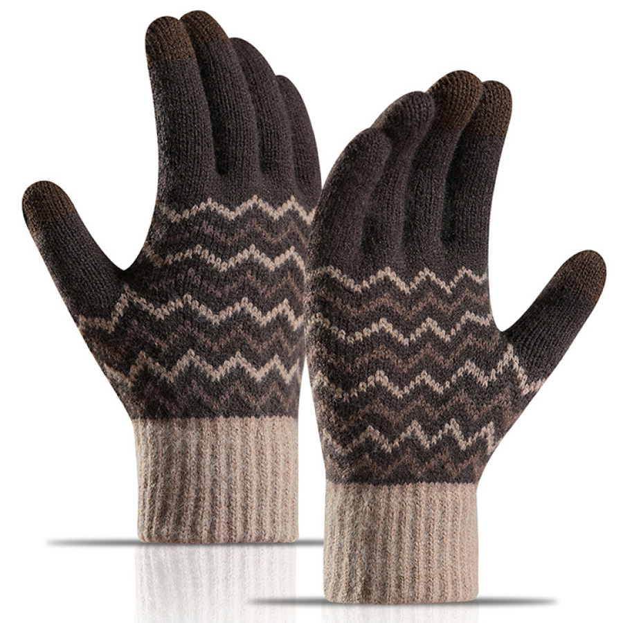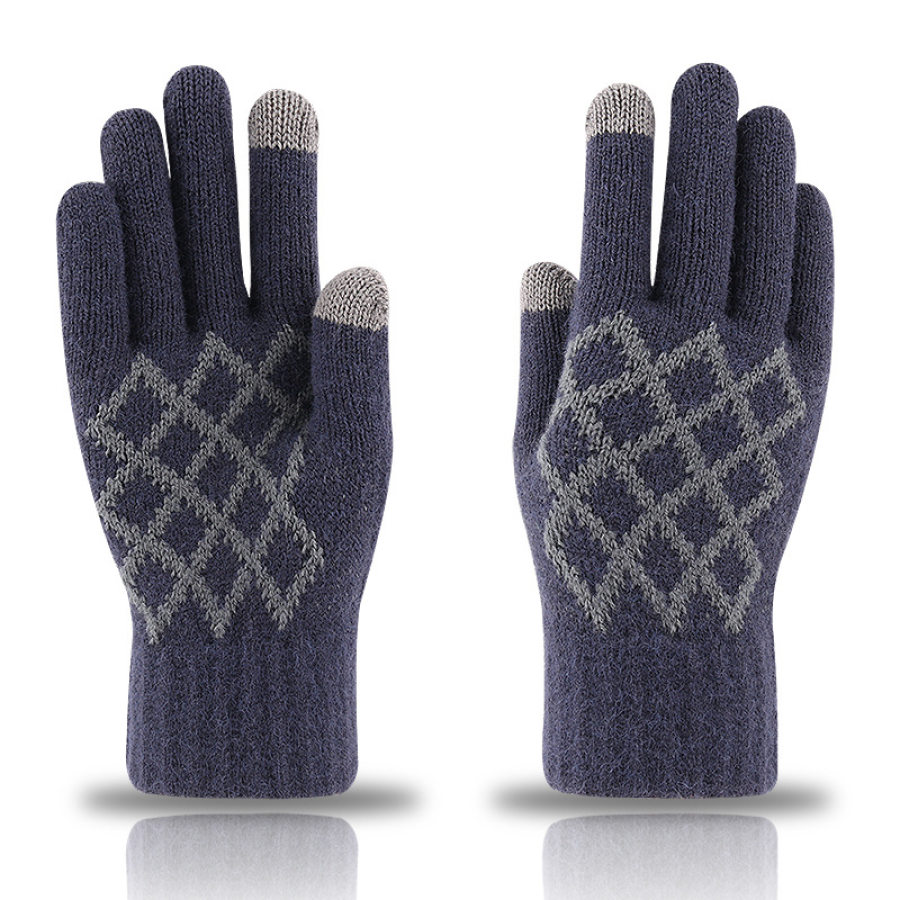 Men's Outdoor Fleece Warm Jacquard Wool Touch Screen Gloves |