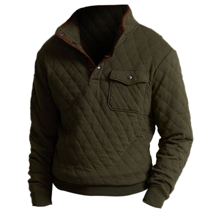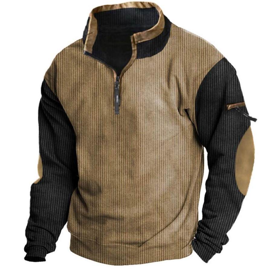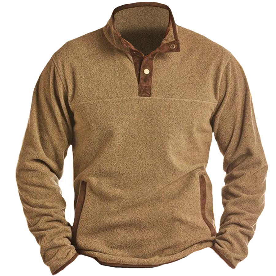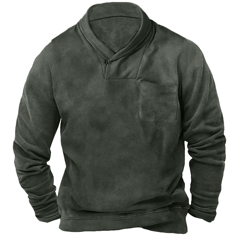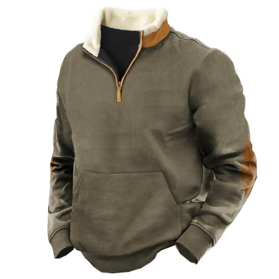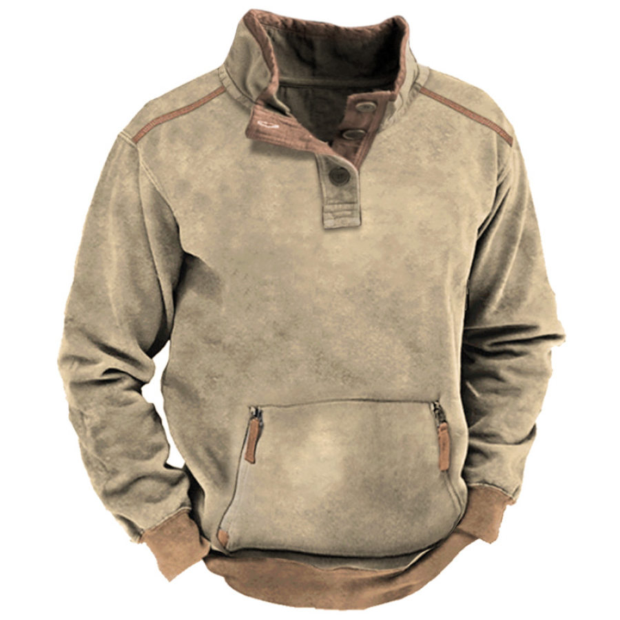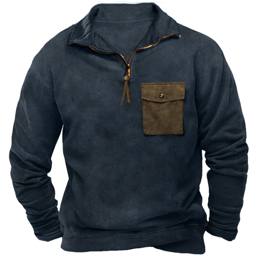 Men's Retro Casual Stand Collar Pocket Long Sleeve Sweatshirt |