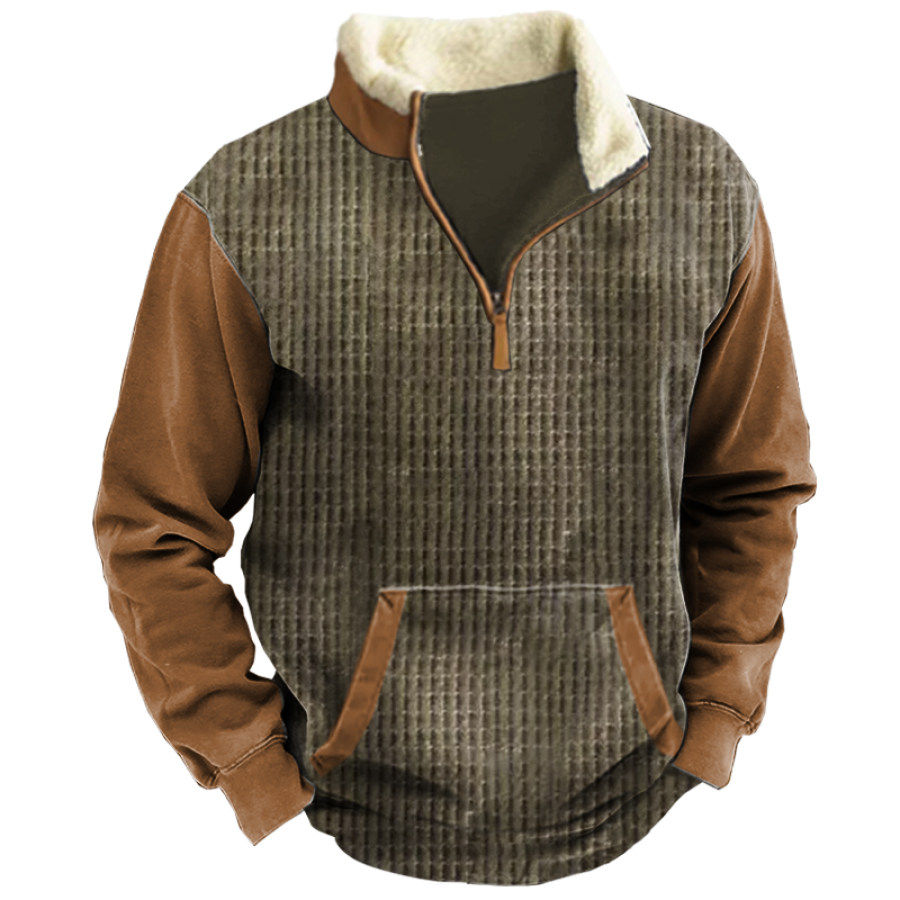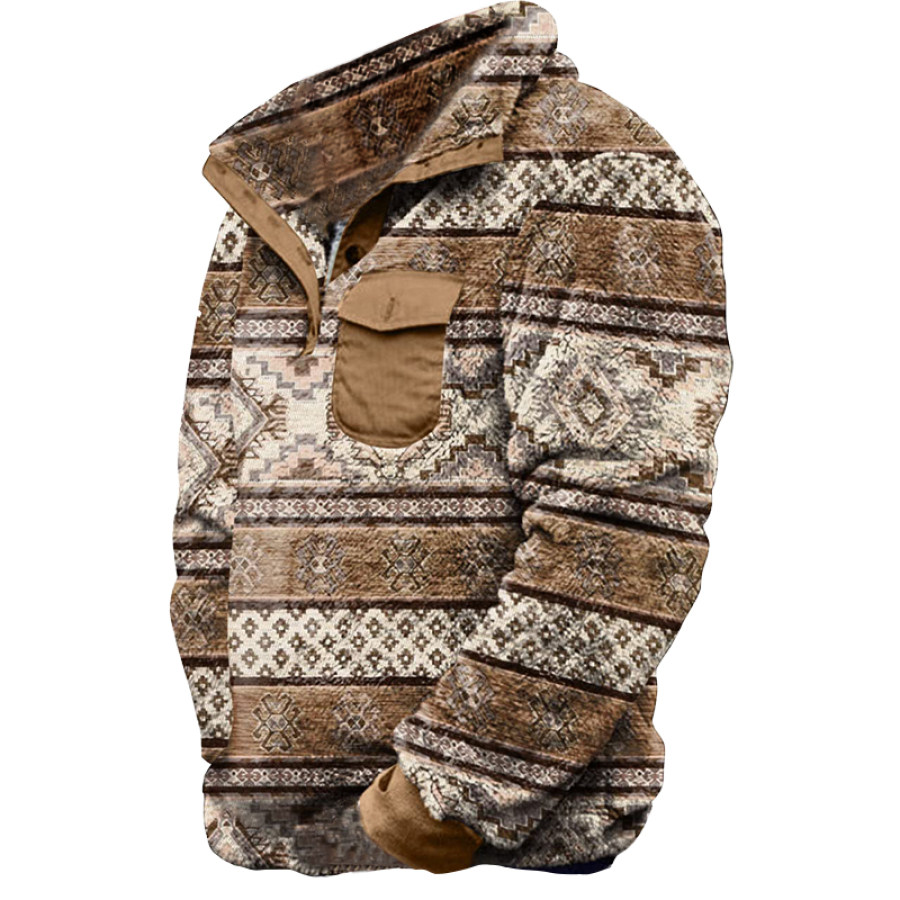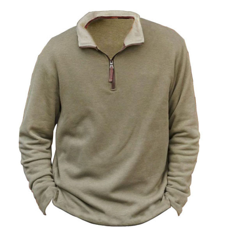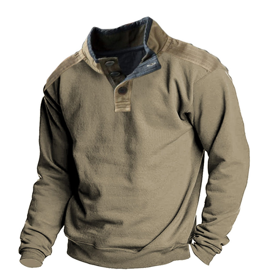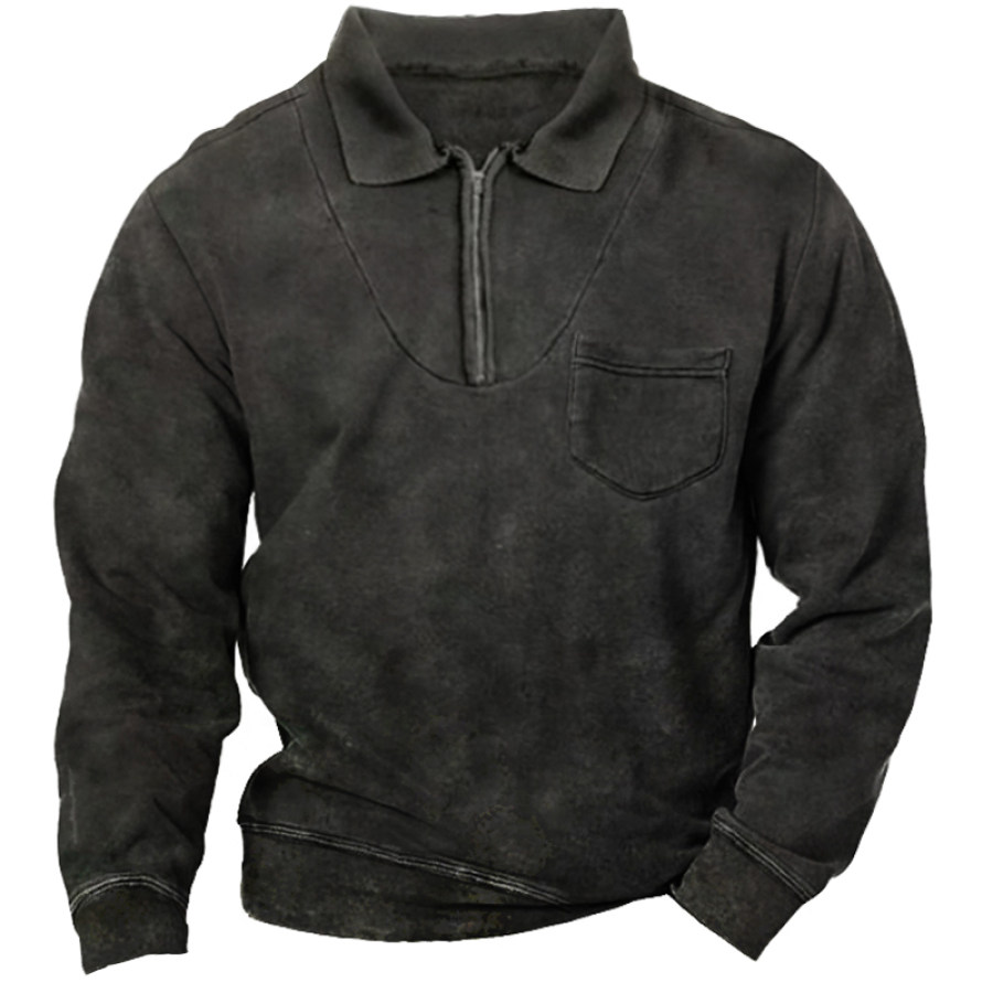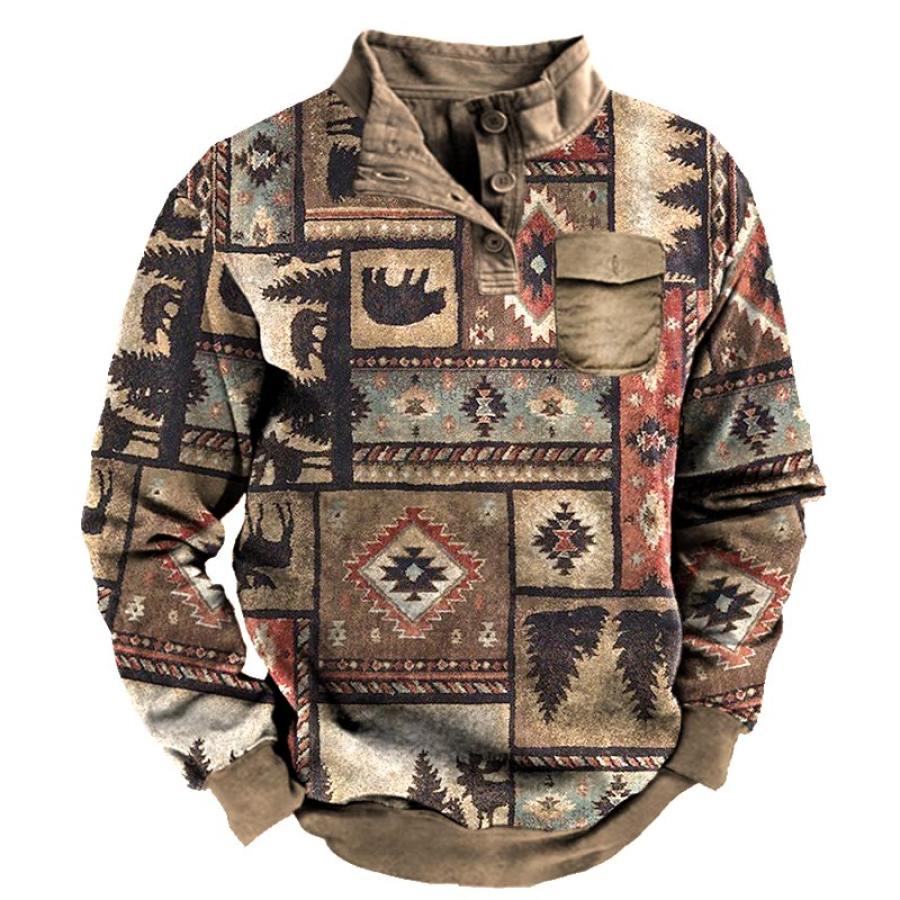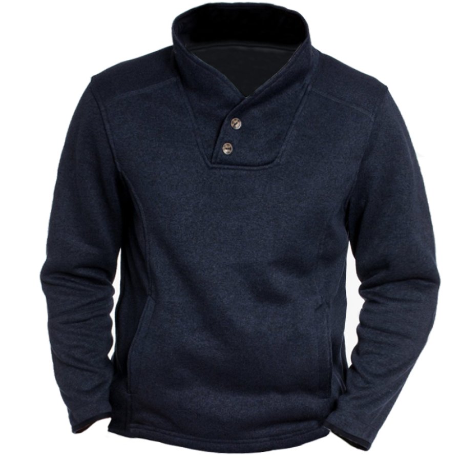 Men's Retro Casual Stand Collar Pocket Long Sleeve Sweatshirt |