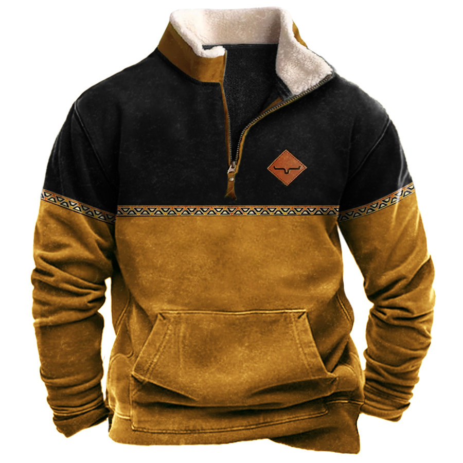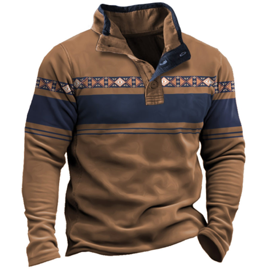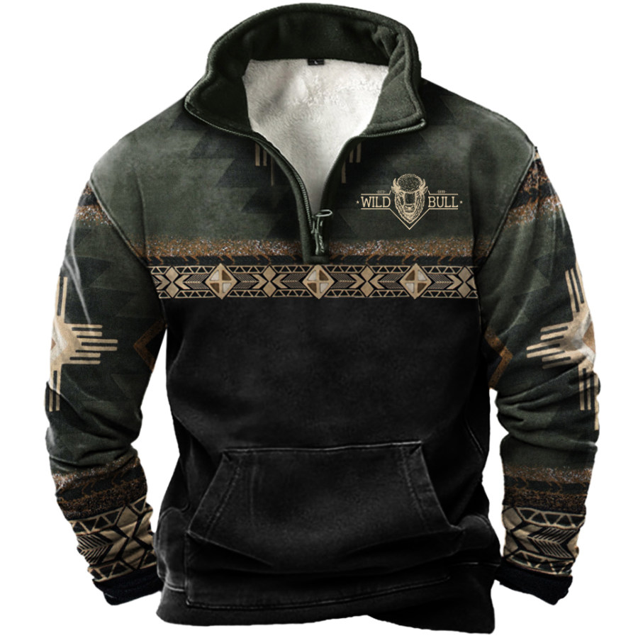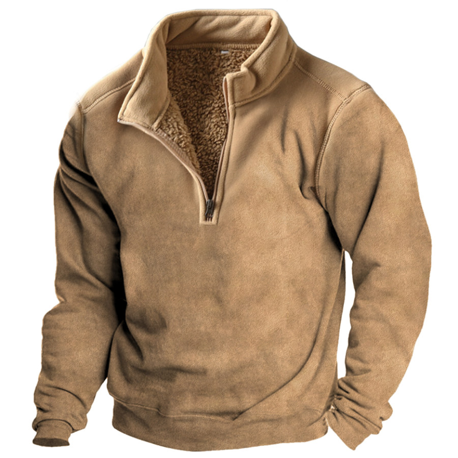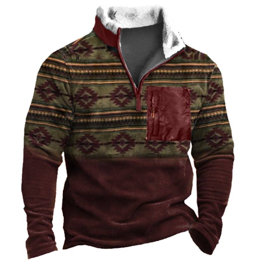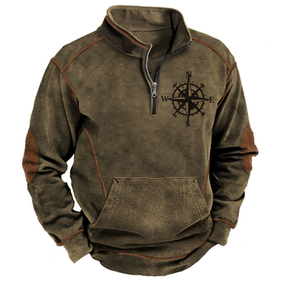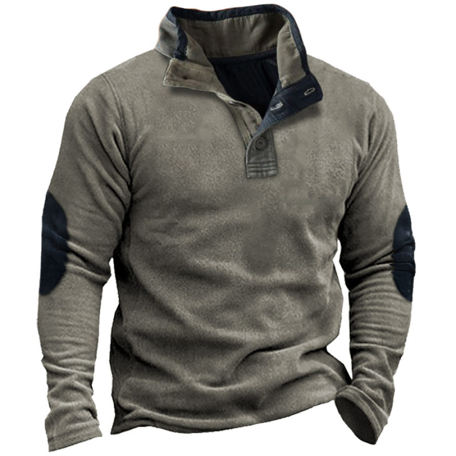 Men's Retro Casual Stand Collar Pocket Long Sleeve Sweatshirt |