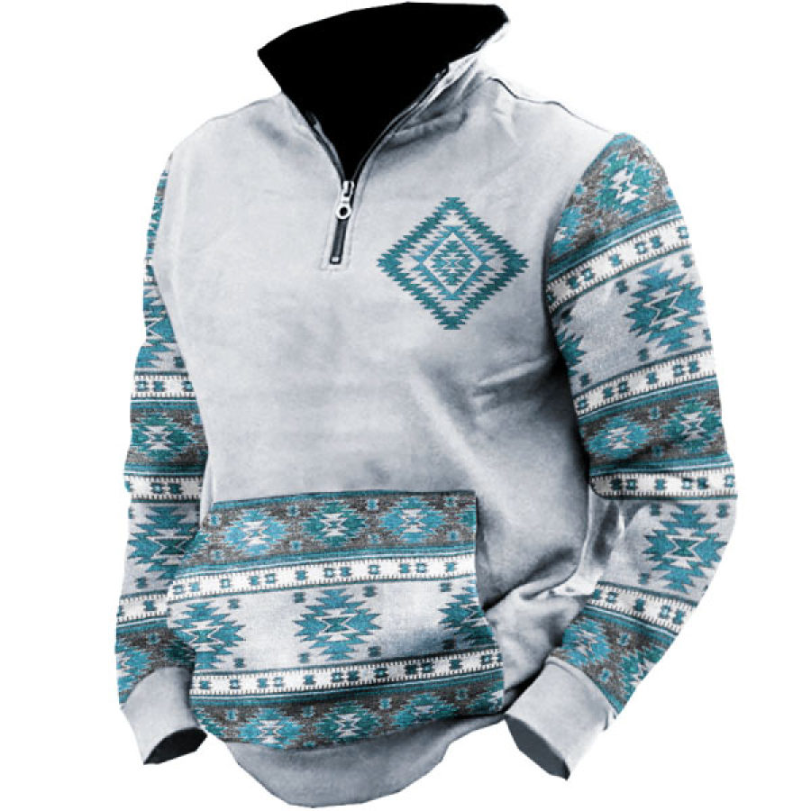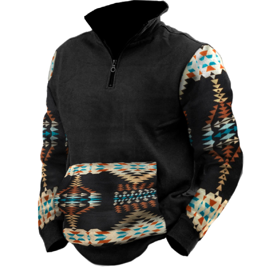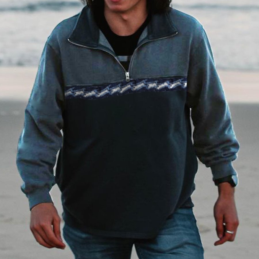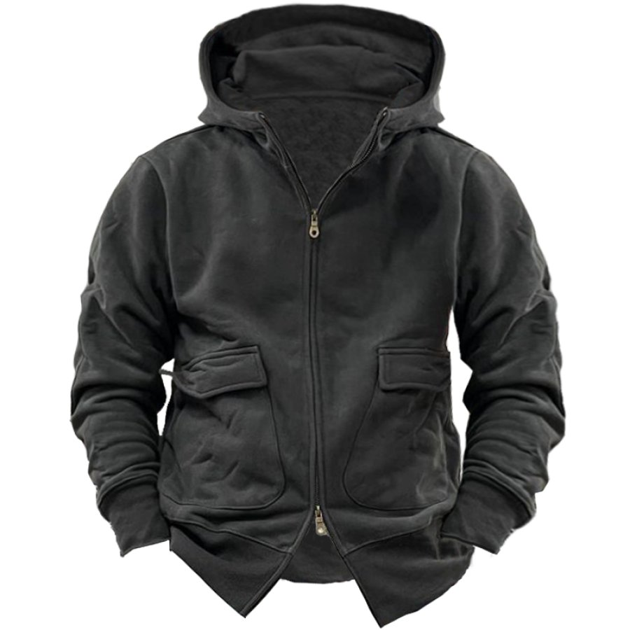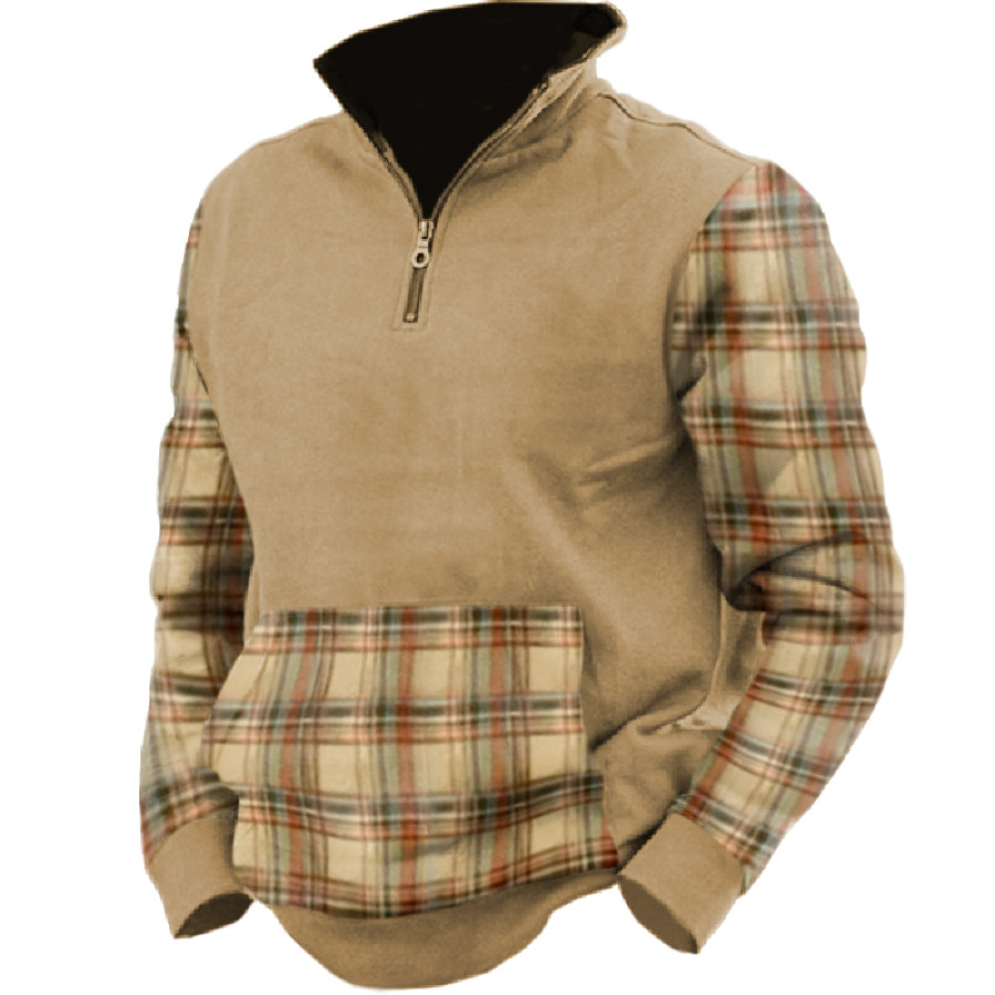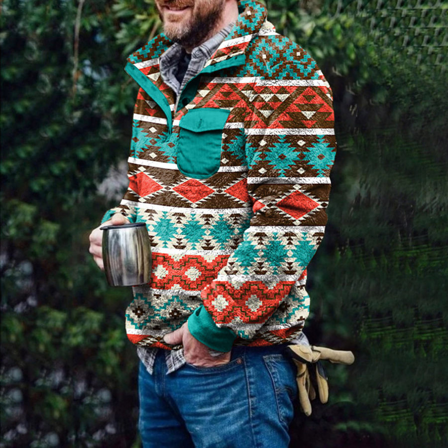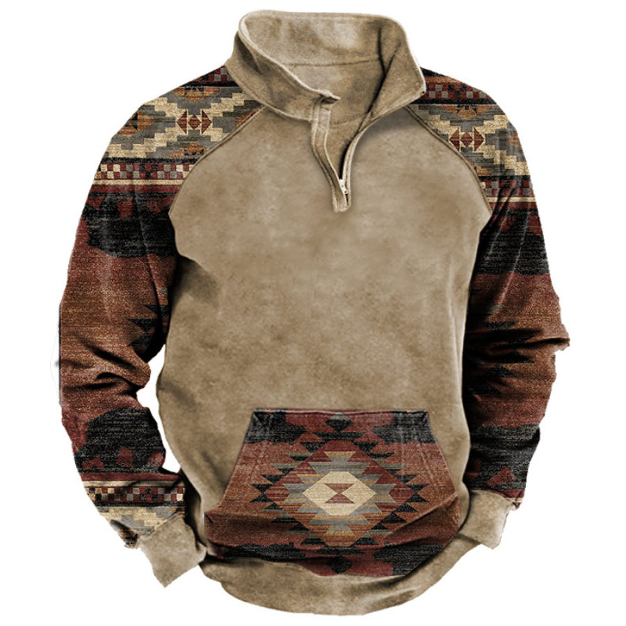 Men's Retro Casual Stand Collar Pocket Long Sleeve Sweatshirt |