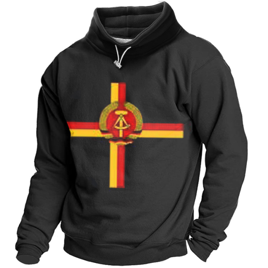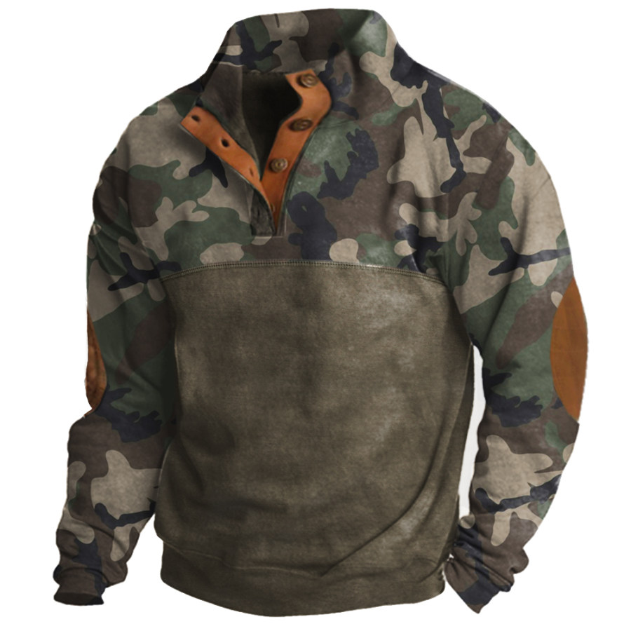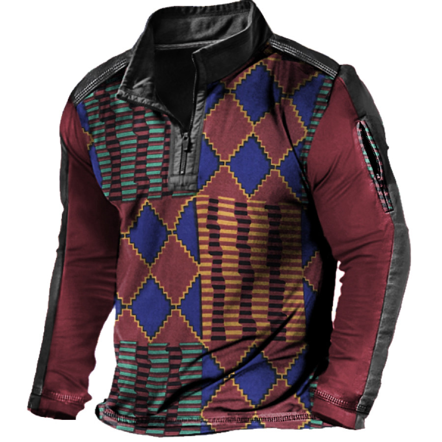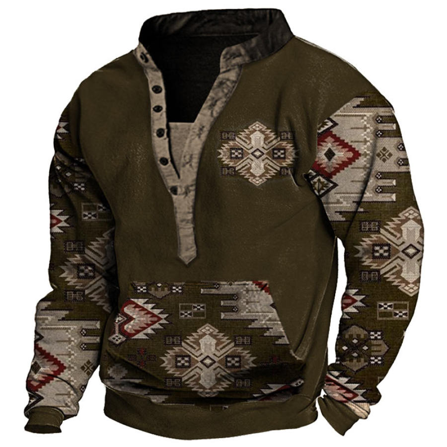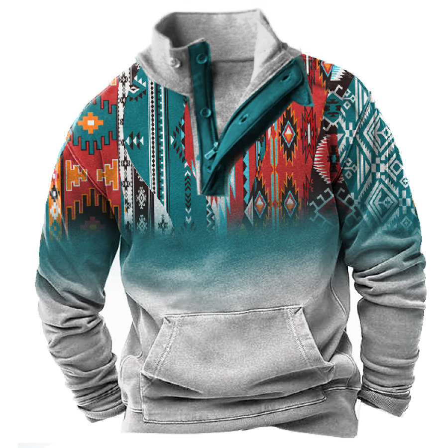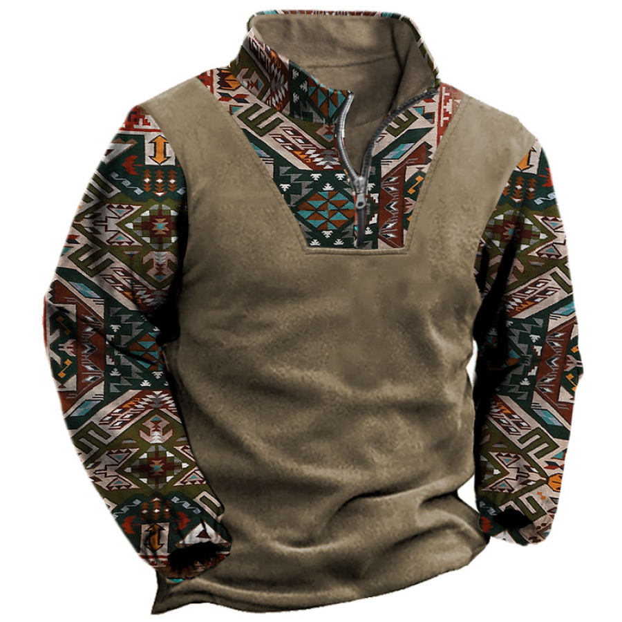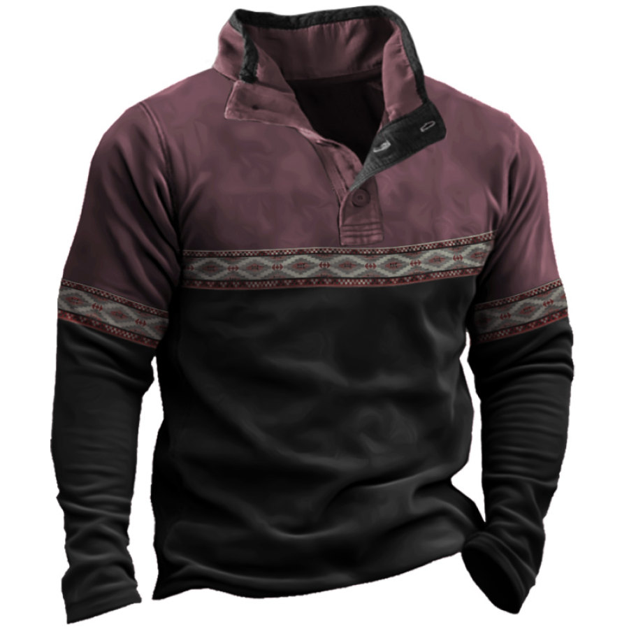 Men's Retro Casual Stand Collar Pocket Long Sleeve Sweatshirt |
