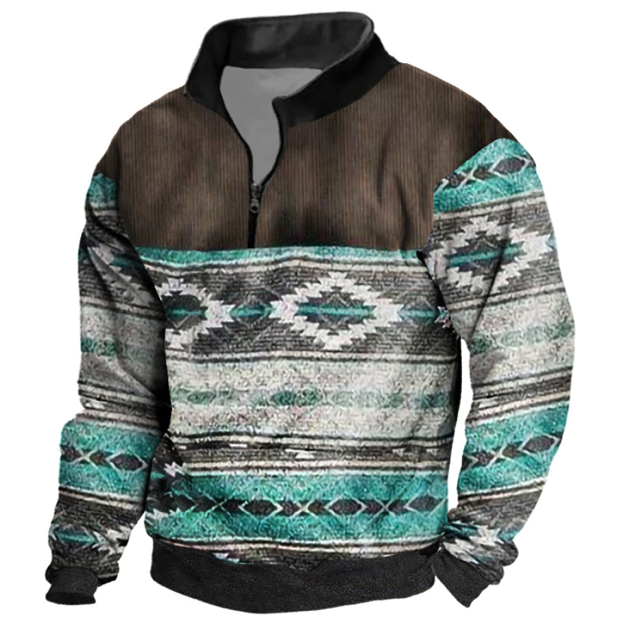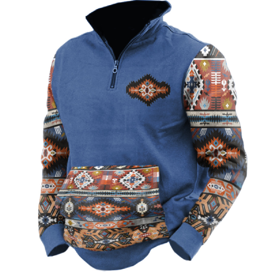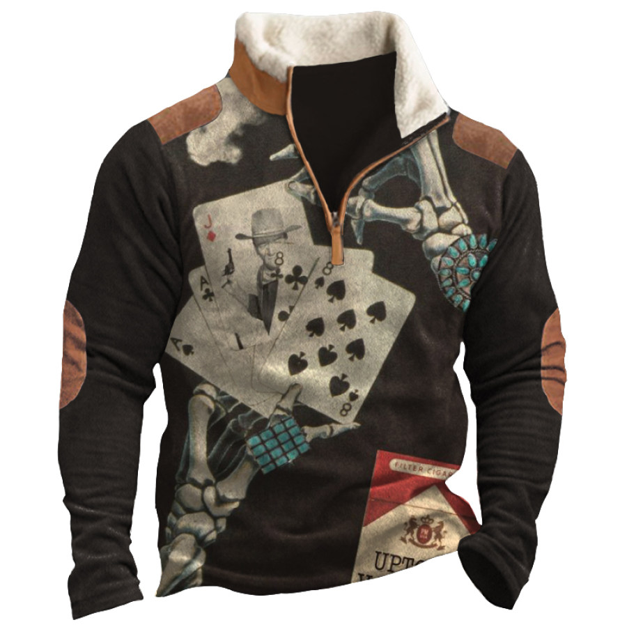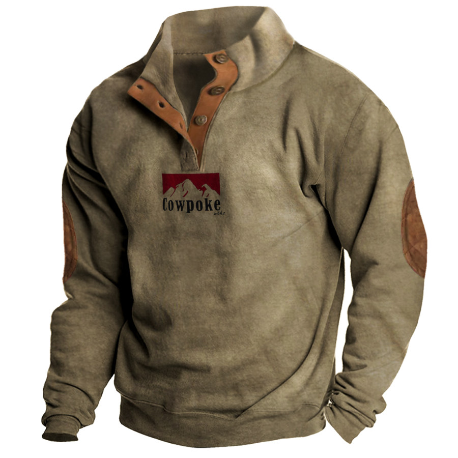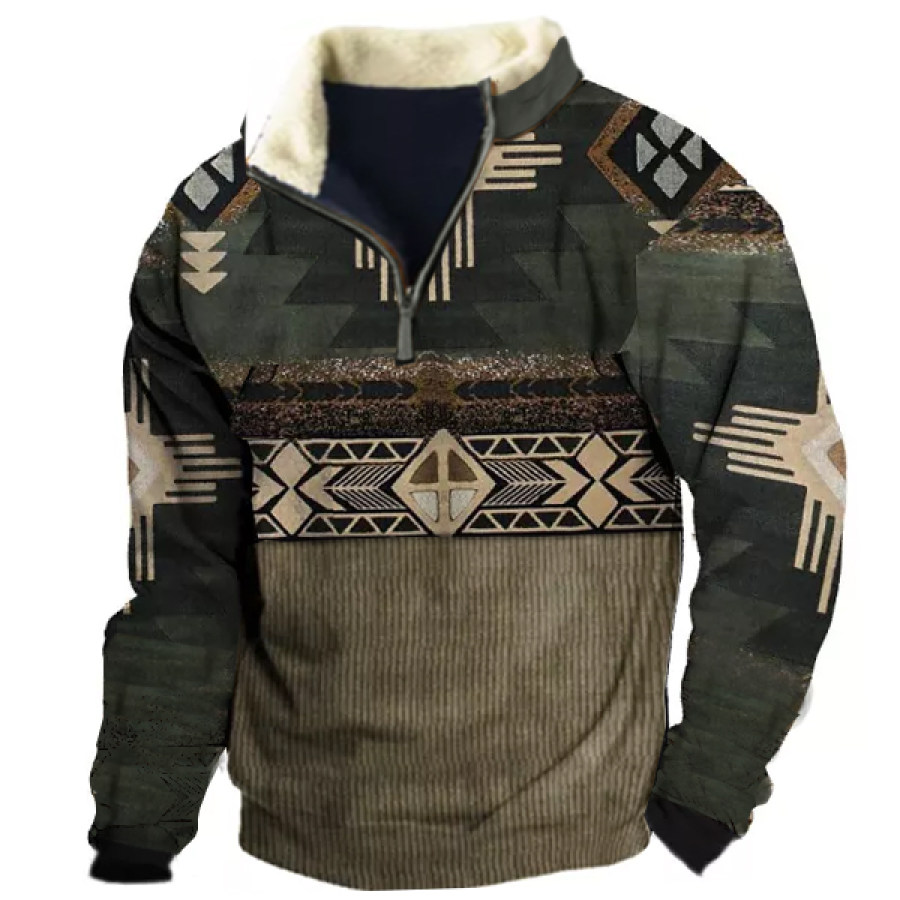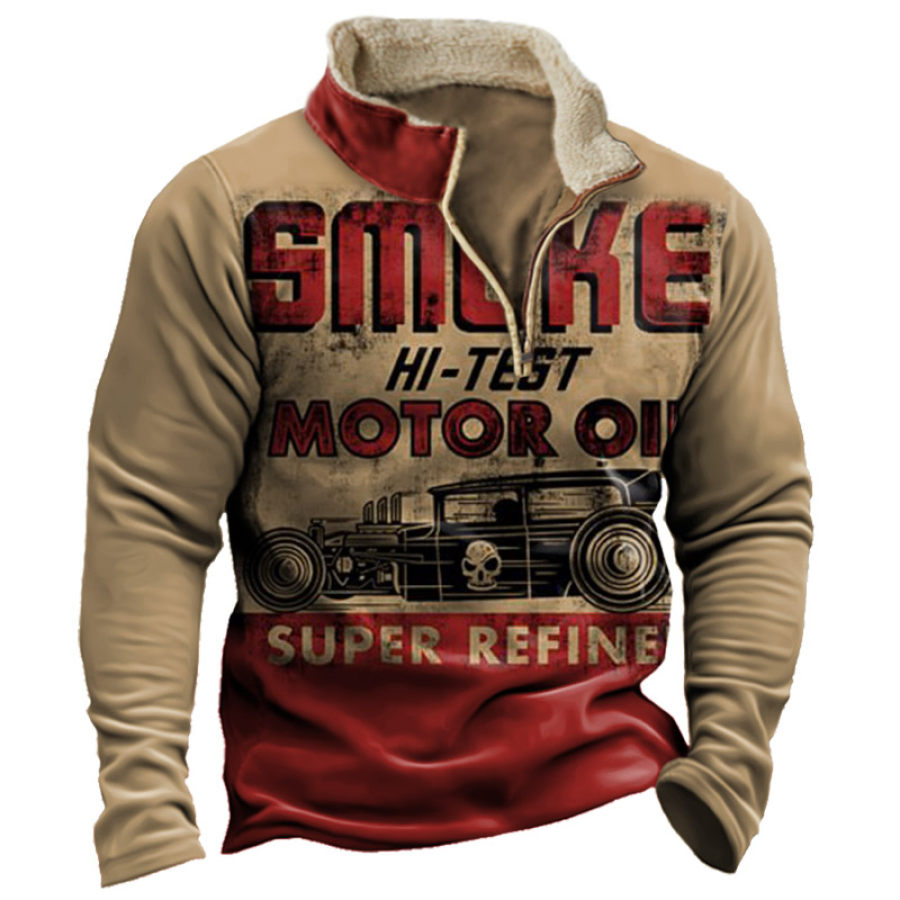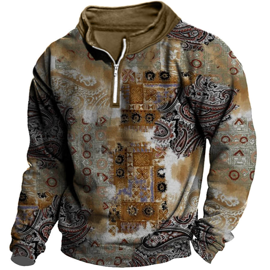 Men's Retro Casual Stand Collar Pocket Long Sleeve Sweatshirt |