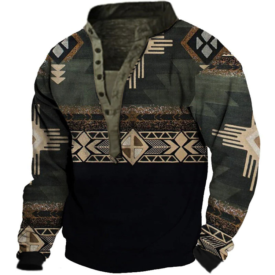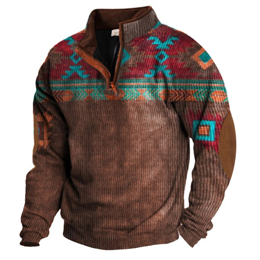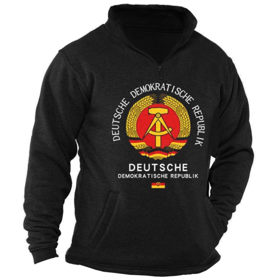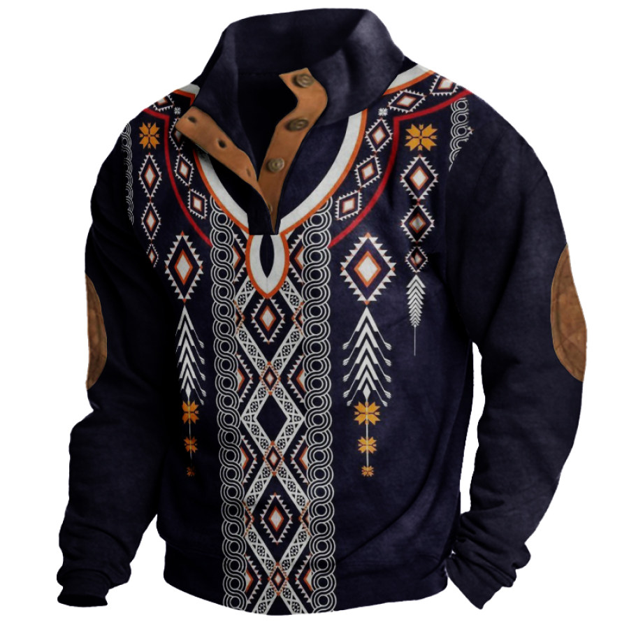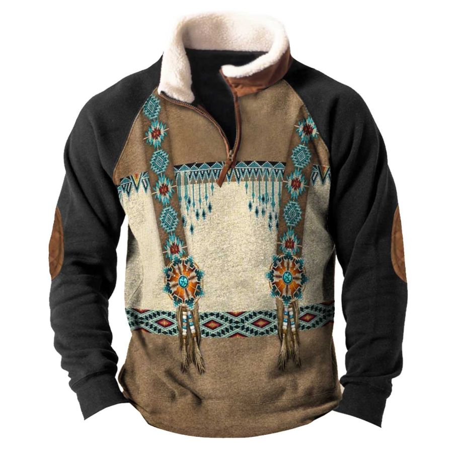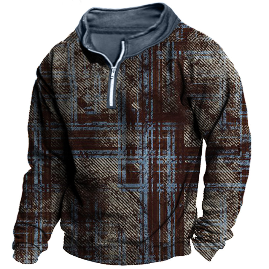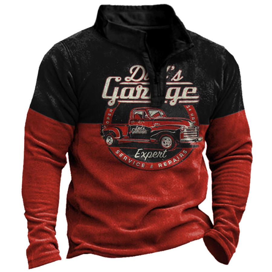 Men's Retro Casual Stand Collar Pocket Long Sleeve Sweatshirt |