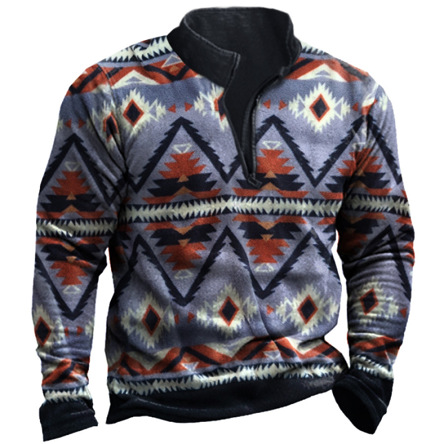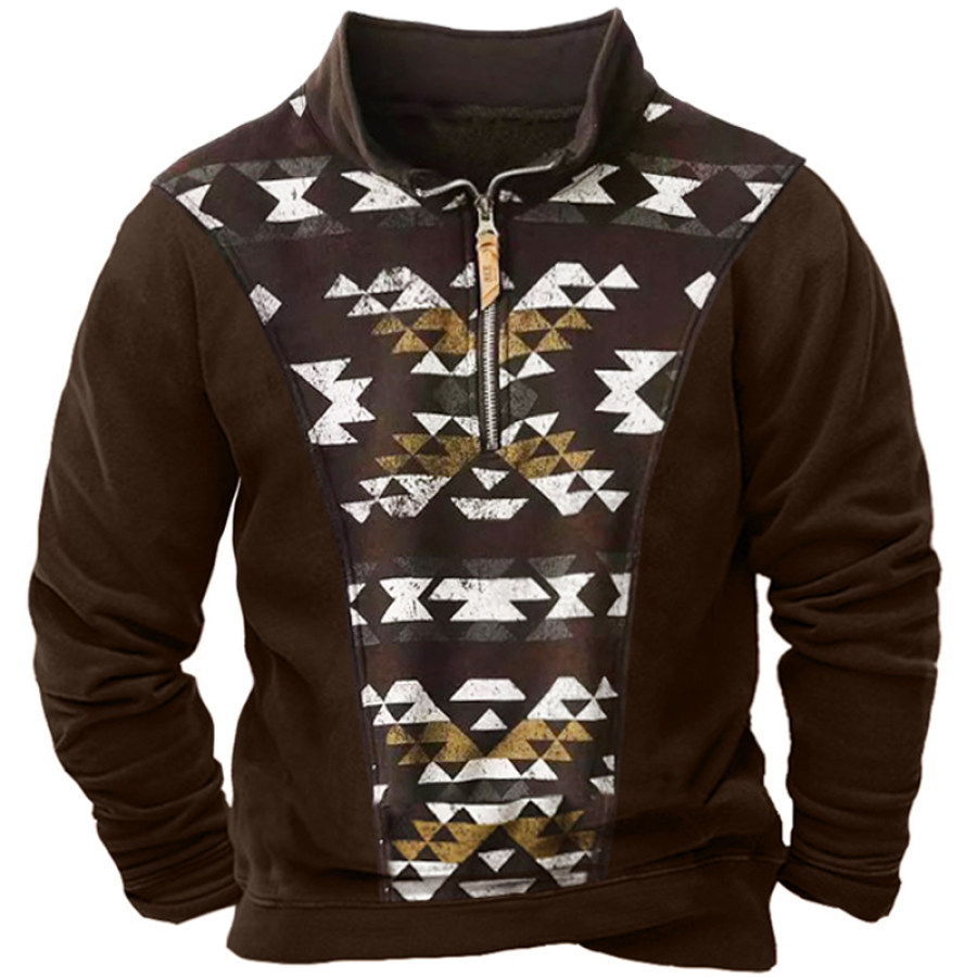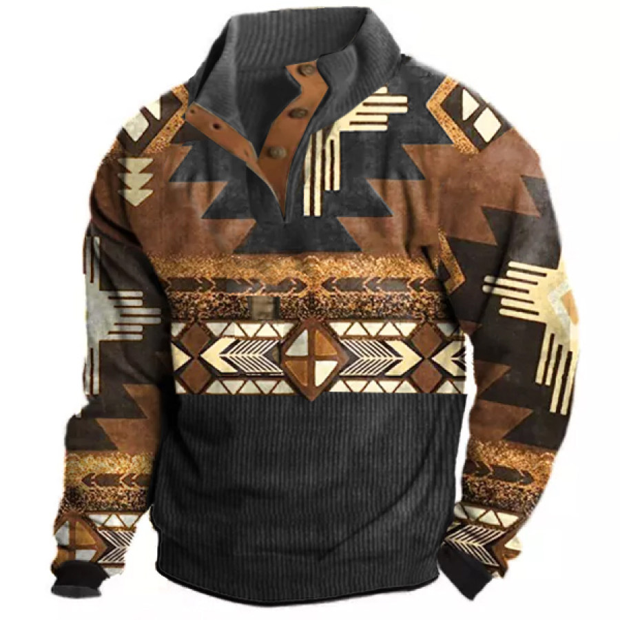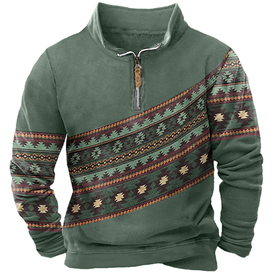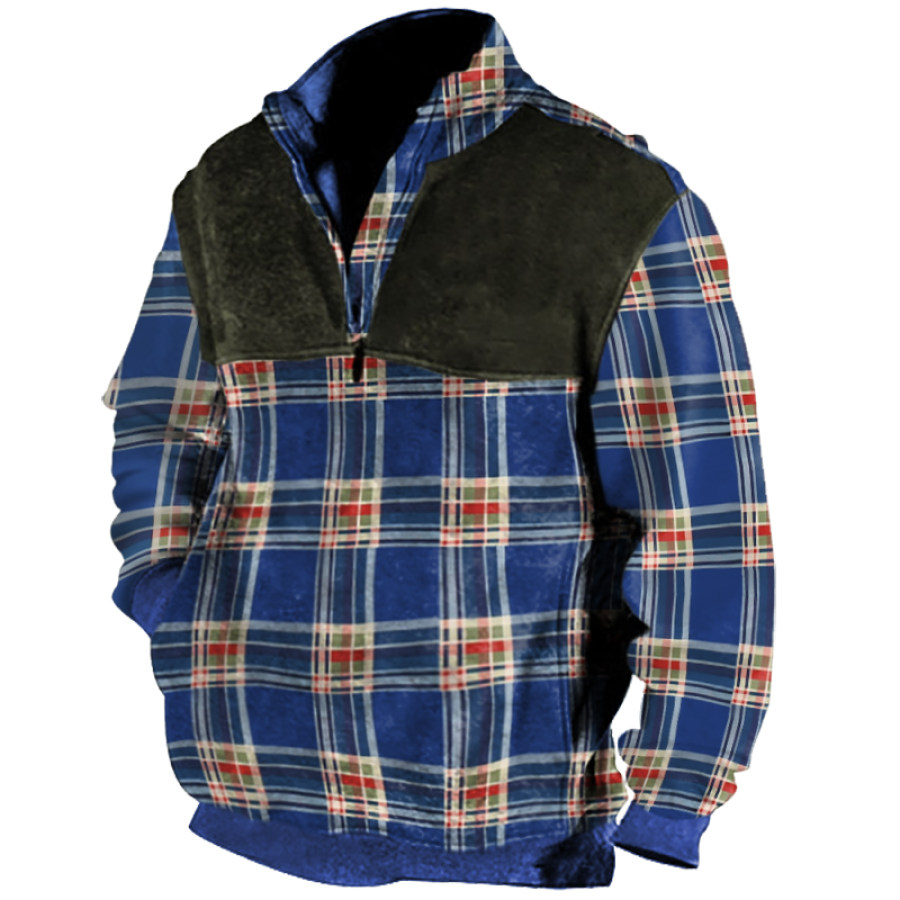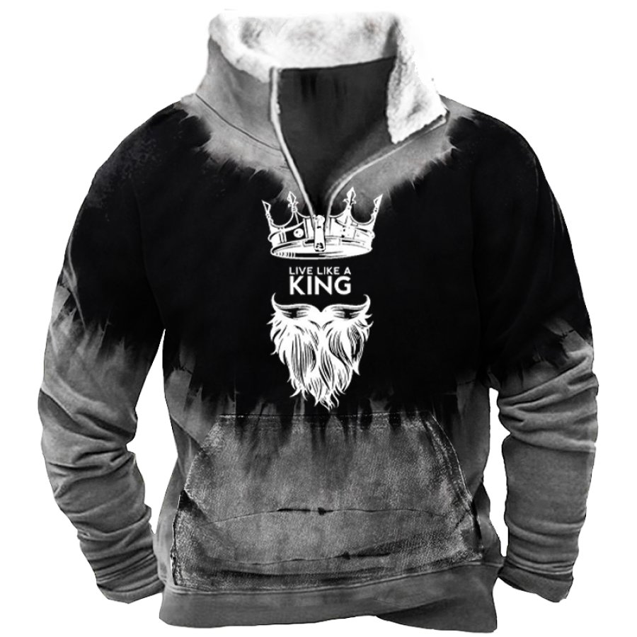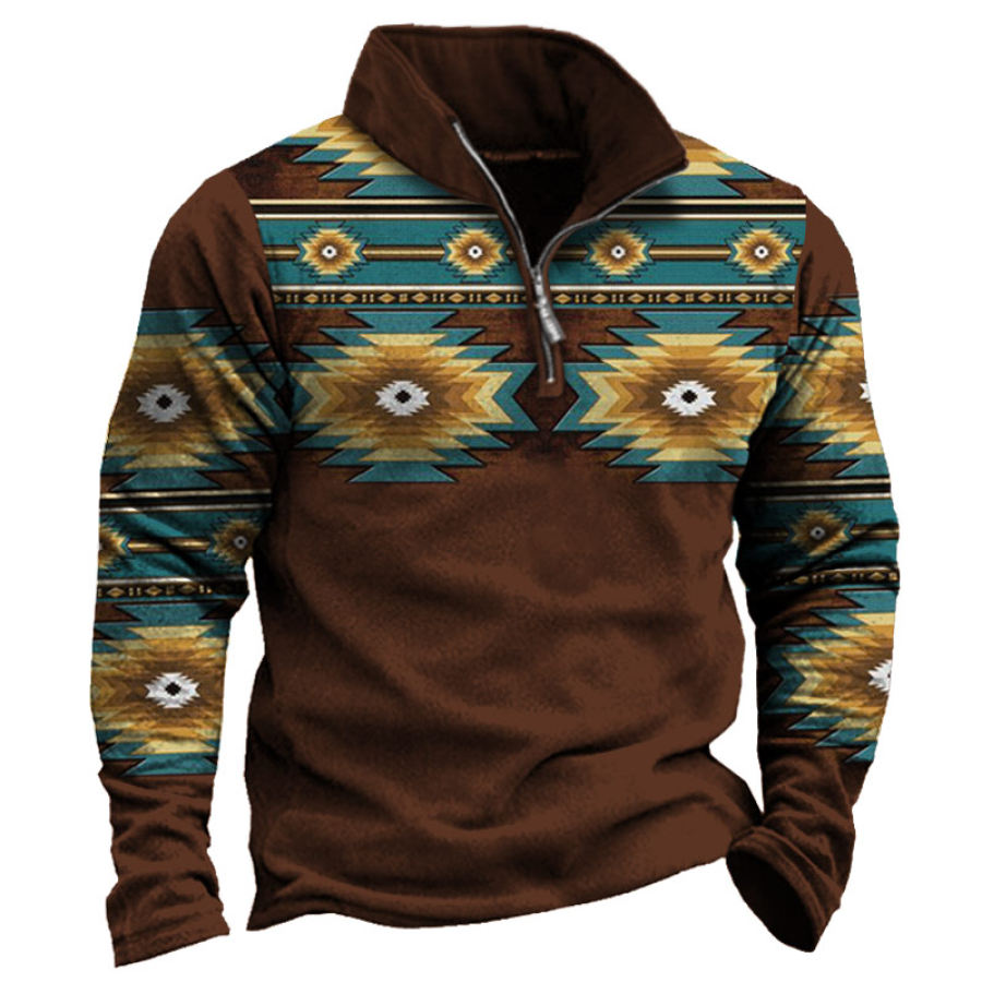 Men's Retro Casual Stand Collar Pocket Long Sleeve Sweatshirt |