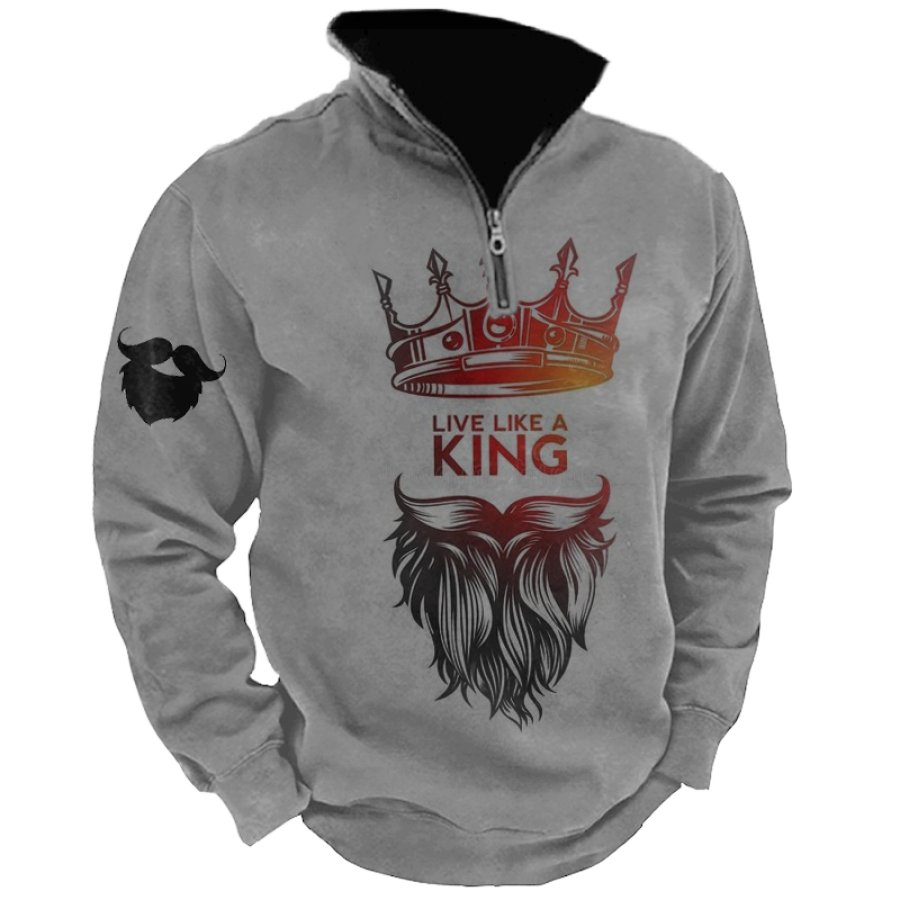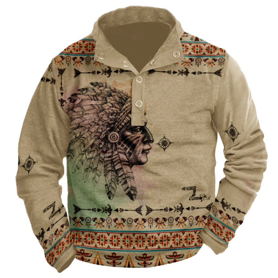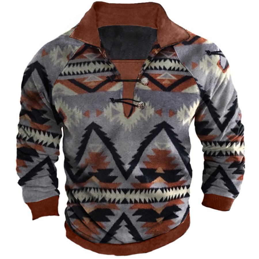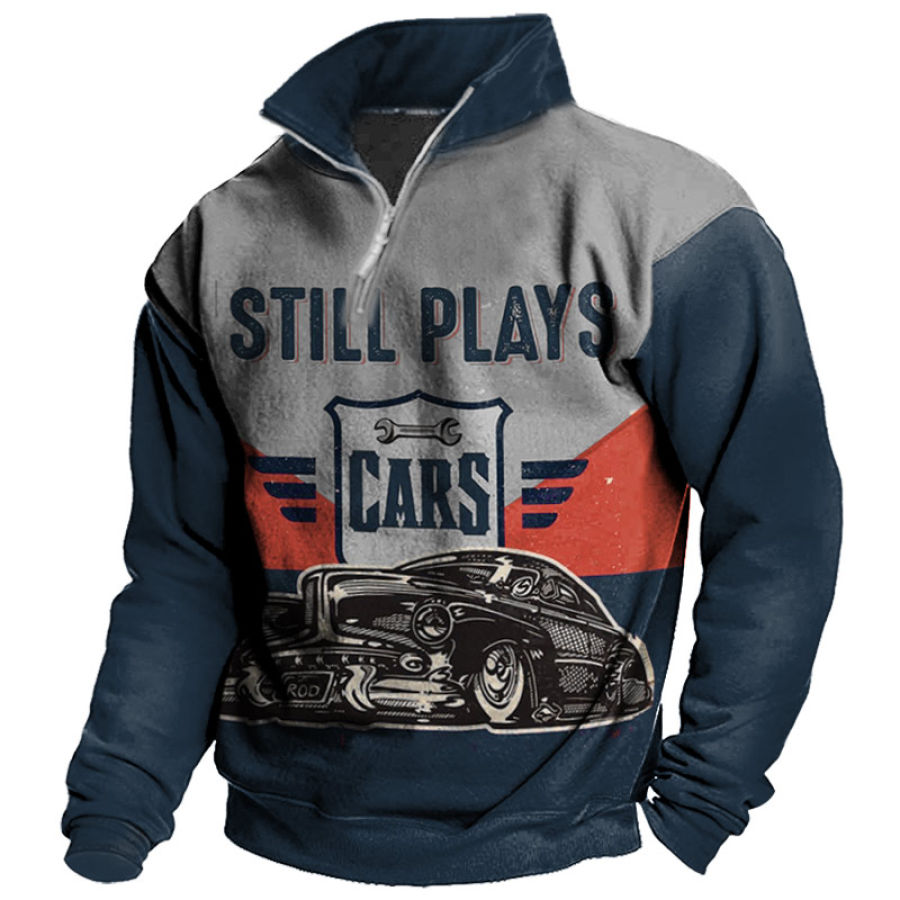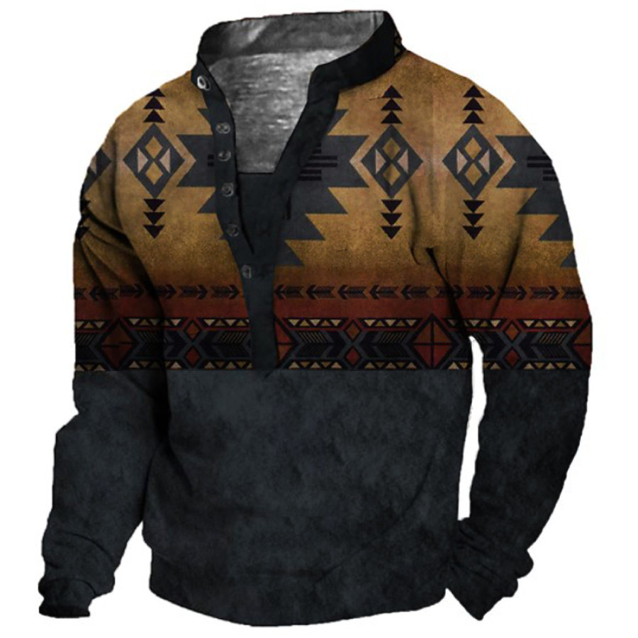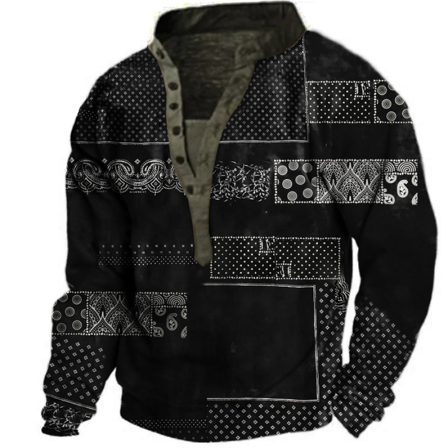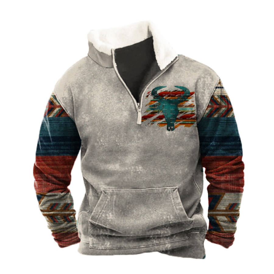 Men's Retro Casual Stand Collar Pocket Long Sleeve Sweatshirt |