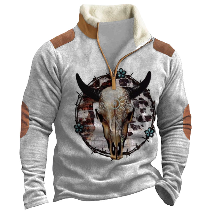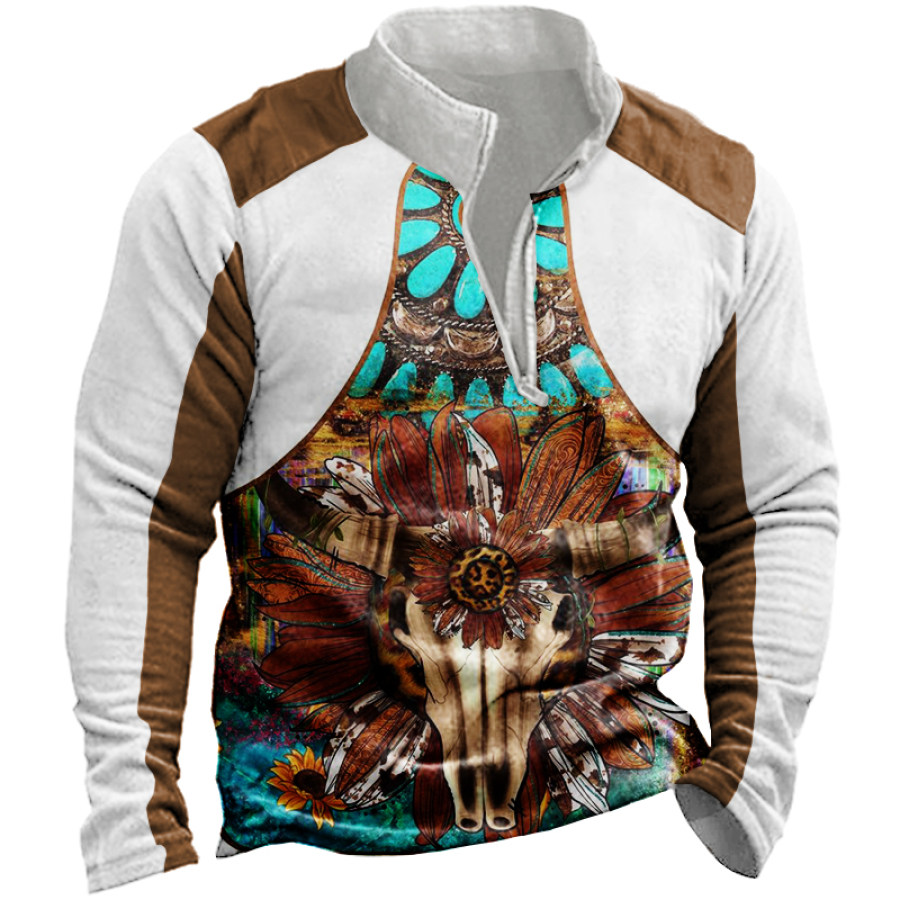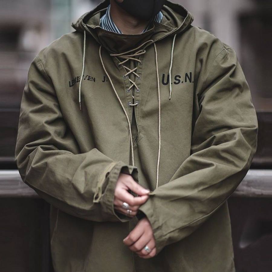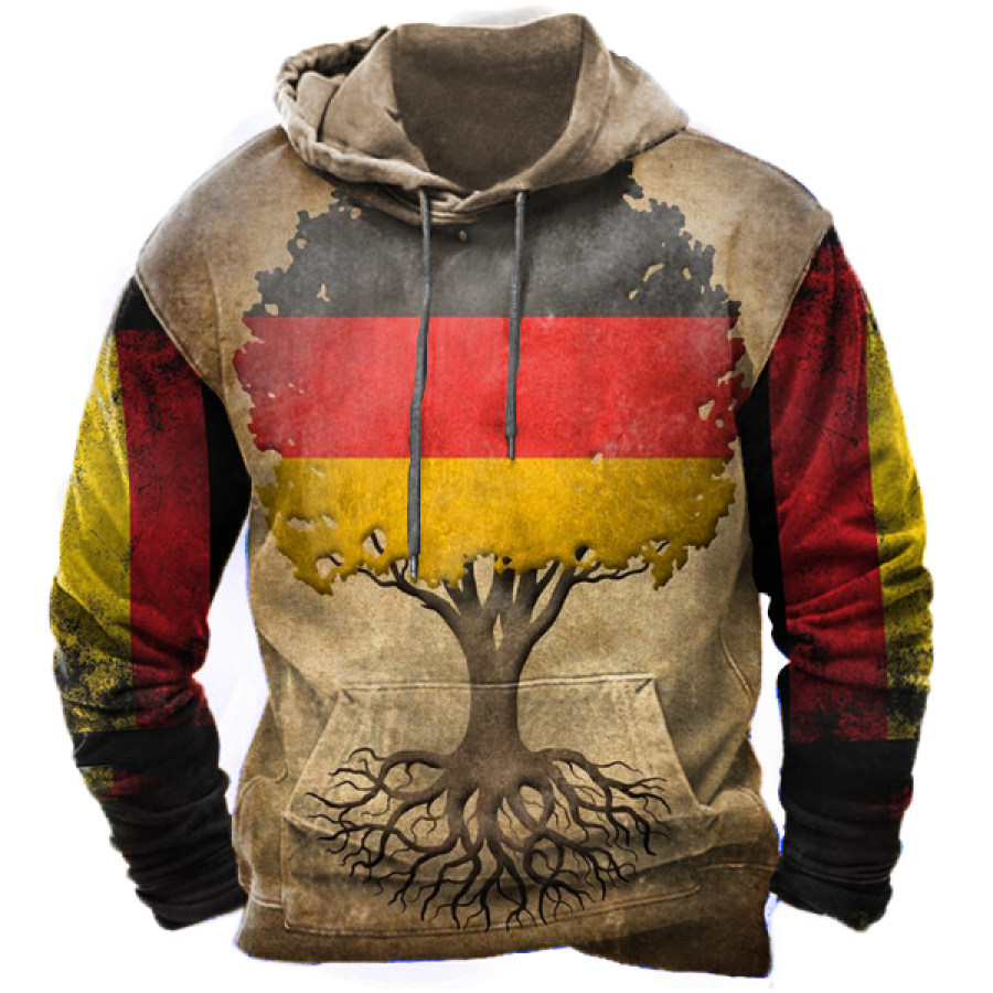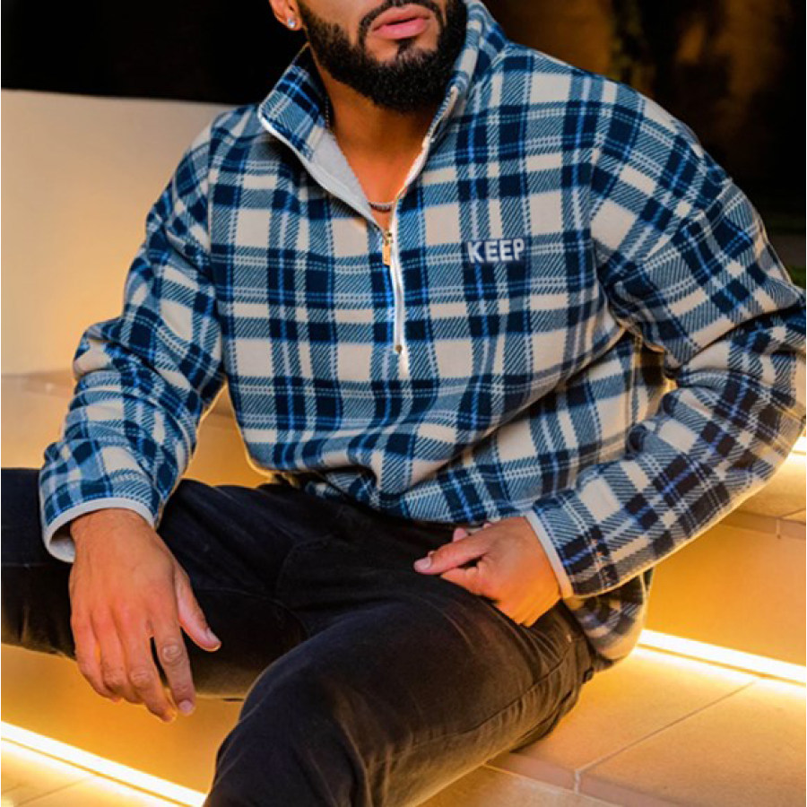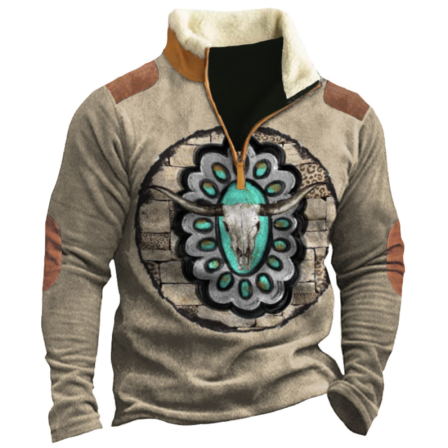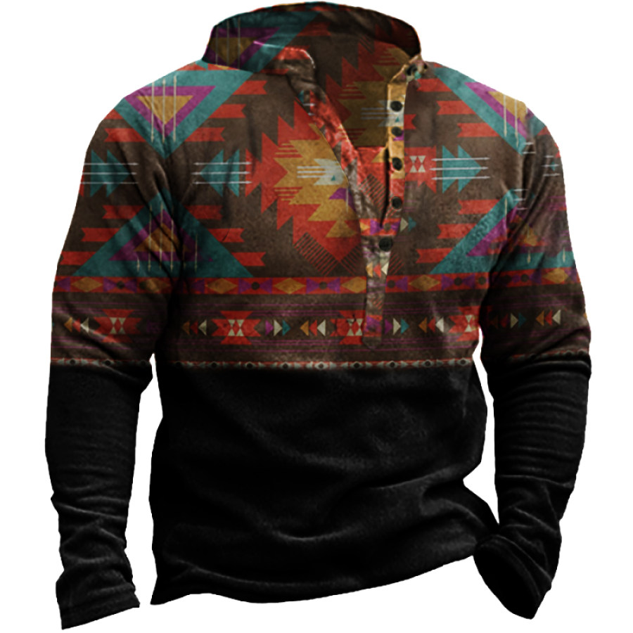 Men's Retro Casual Stand Collar Pocket Long Sleeve Sweatshirt |