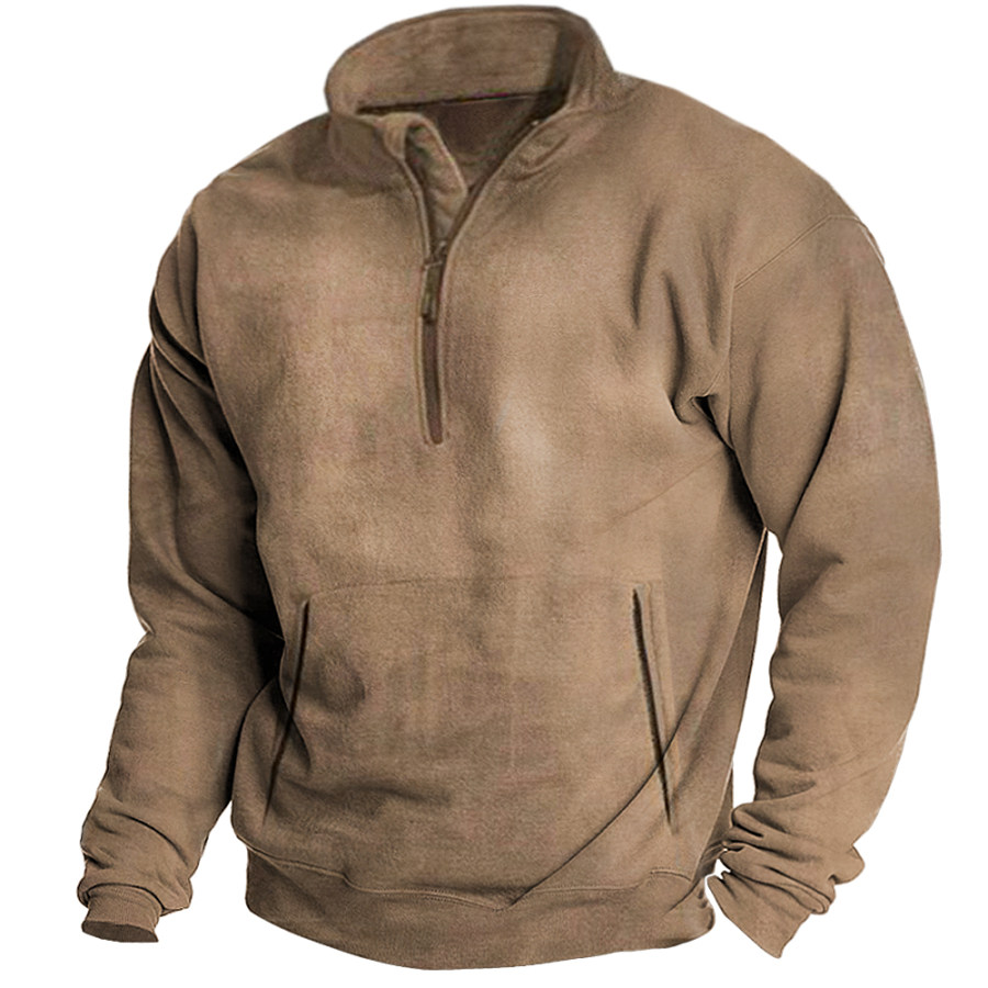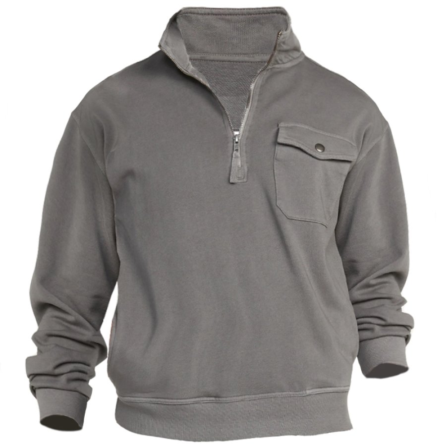 Men's Outdoor Functional Pocket Half Open Collar Sweatshirt |