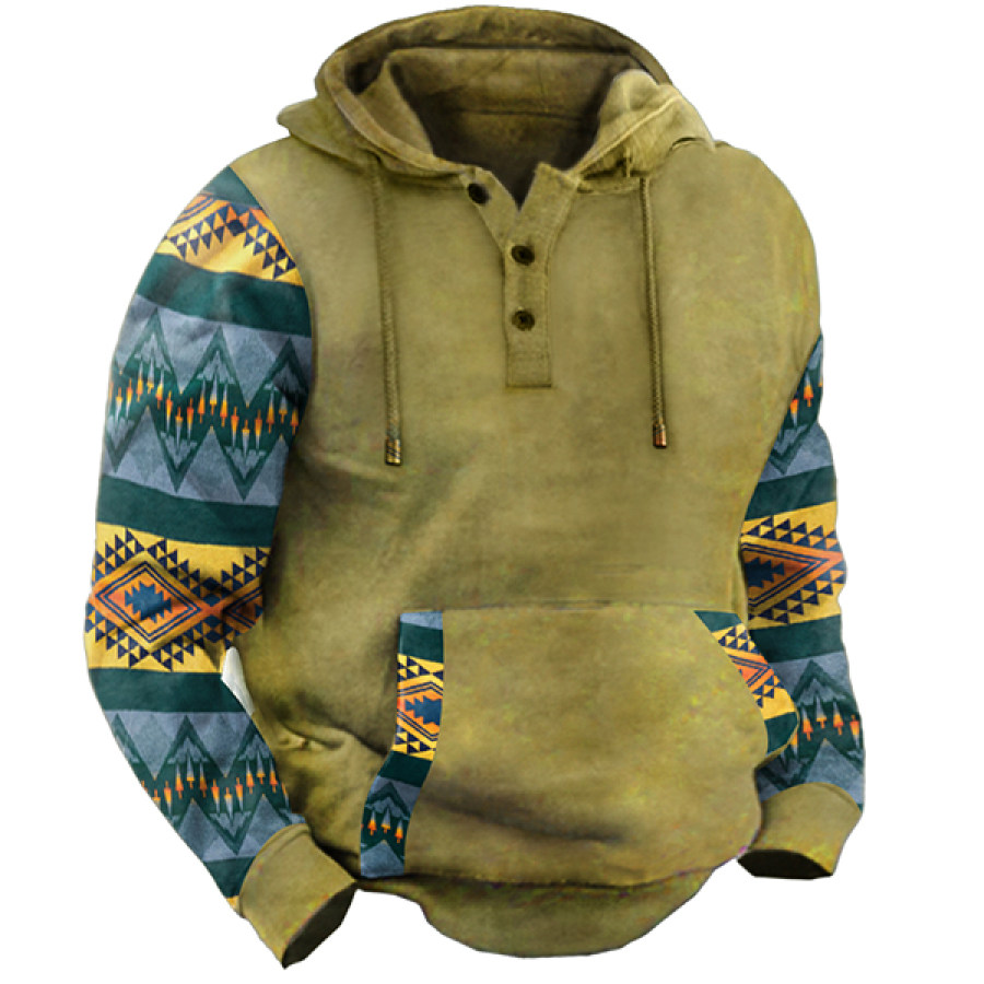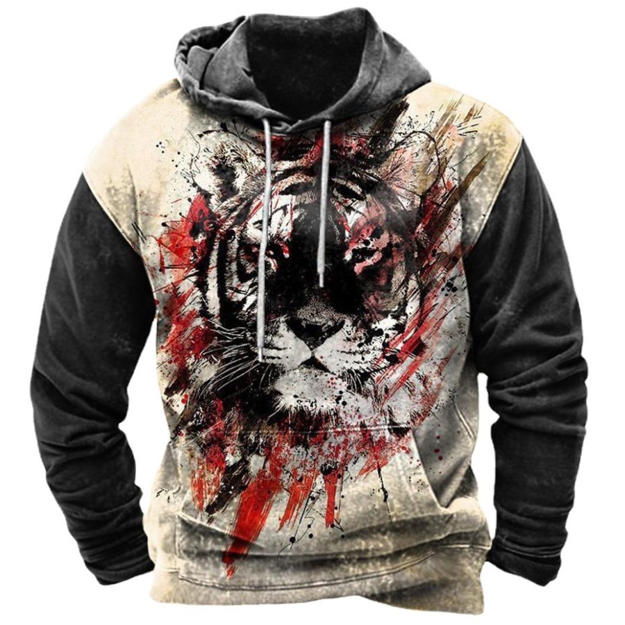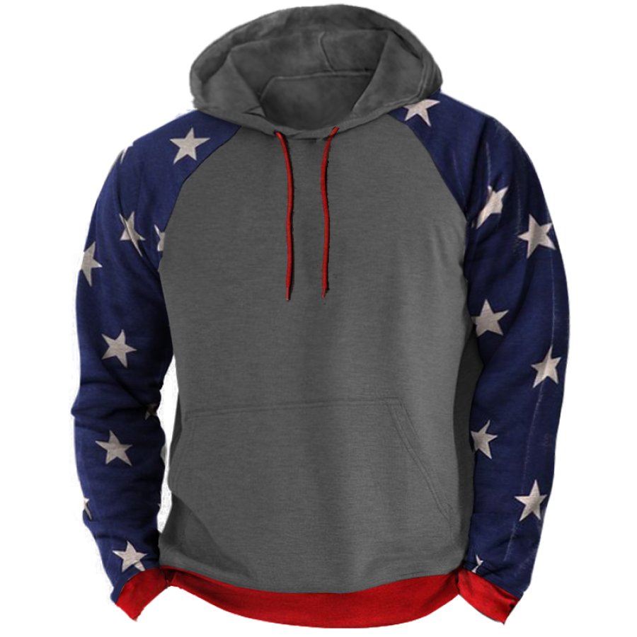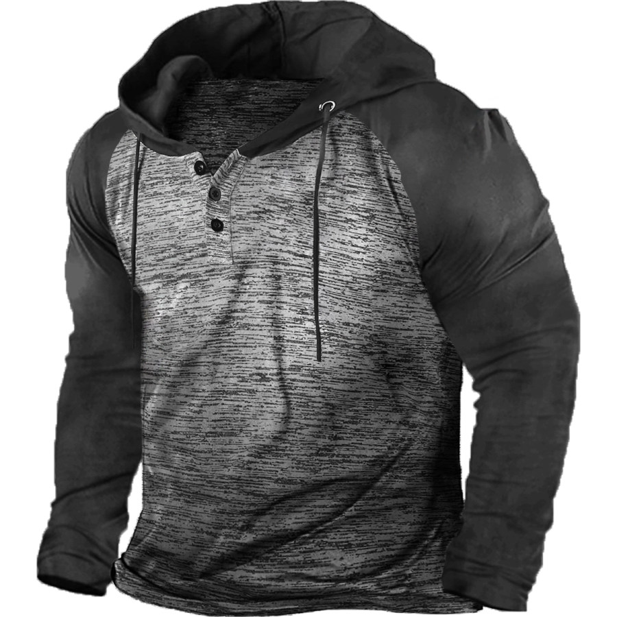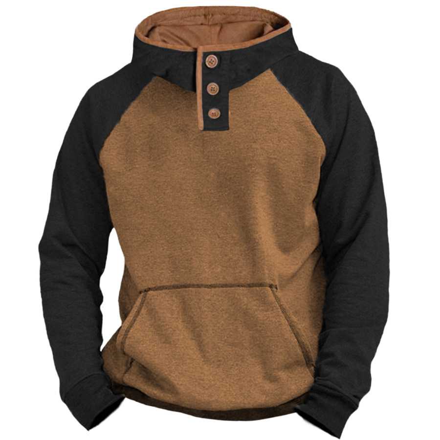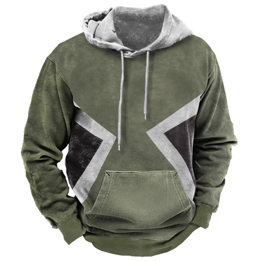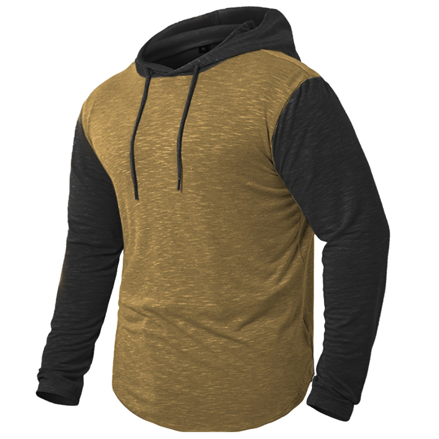 Men's Retro Casual Color Block Hooded T-Shirt |