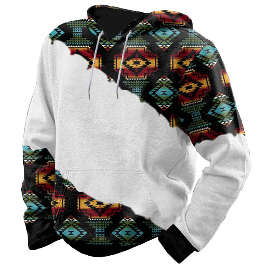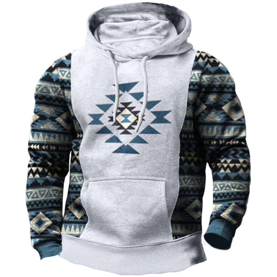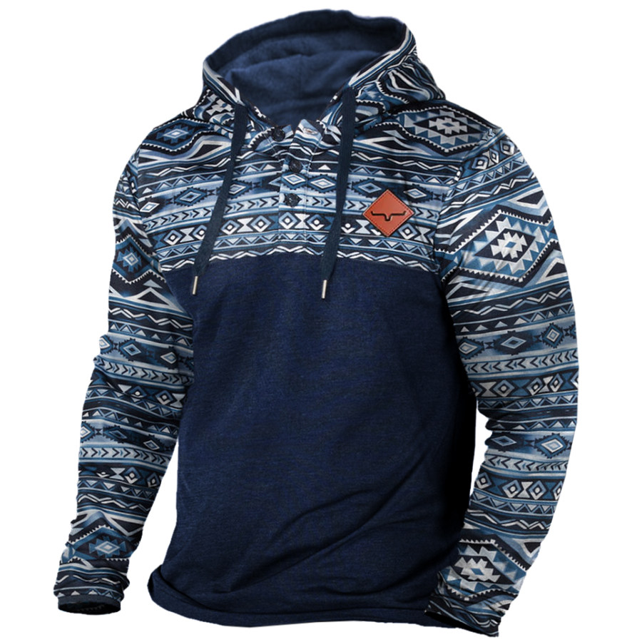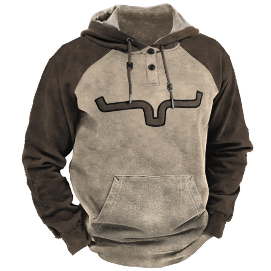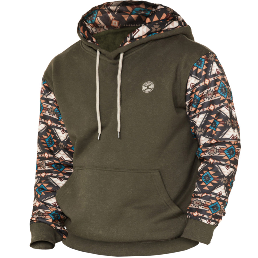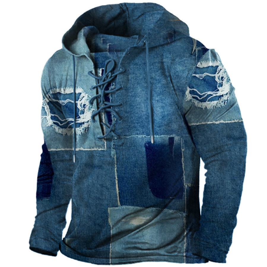 Men's Vintage Western Denim Color Block Hoodie |