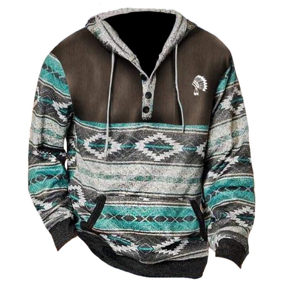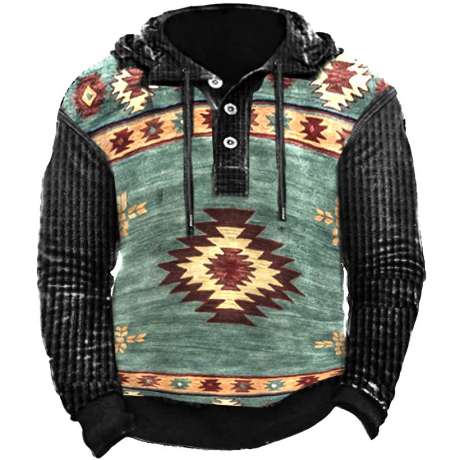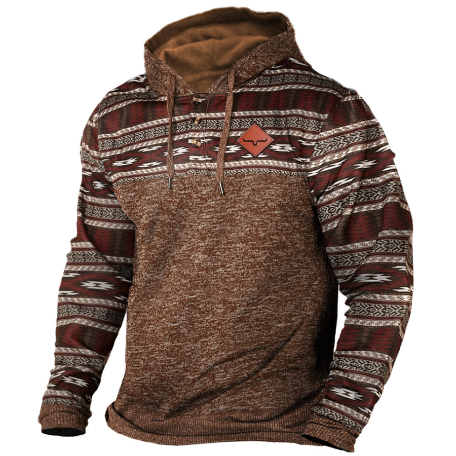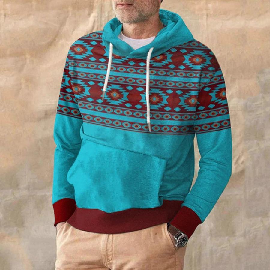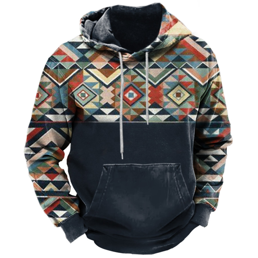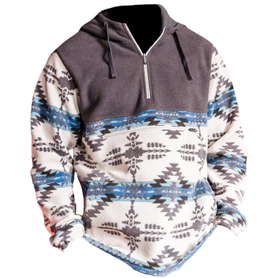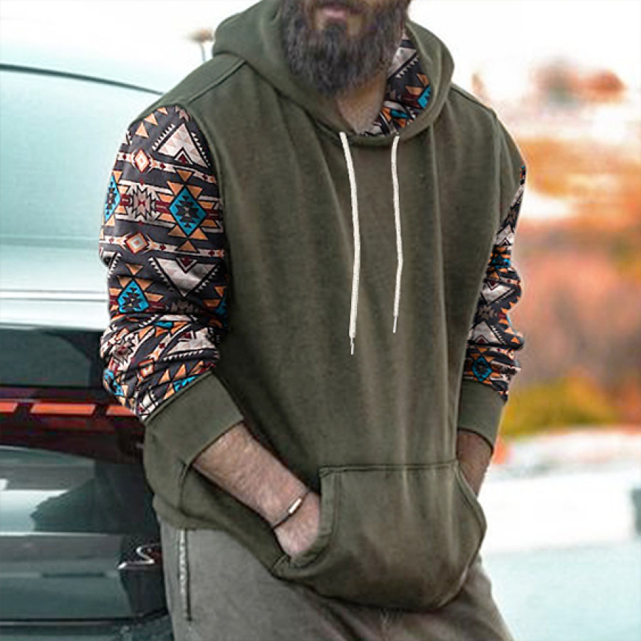 Men's Vintage Western Denim Color Block Hoodie |