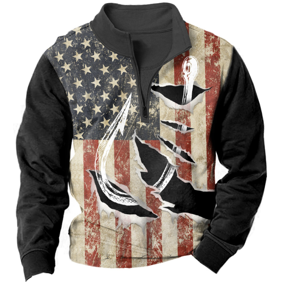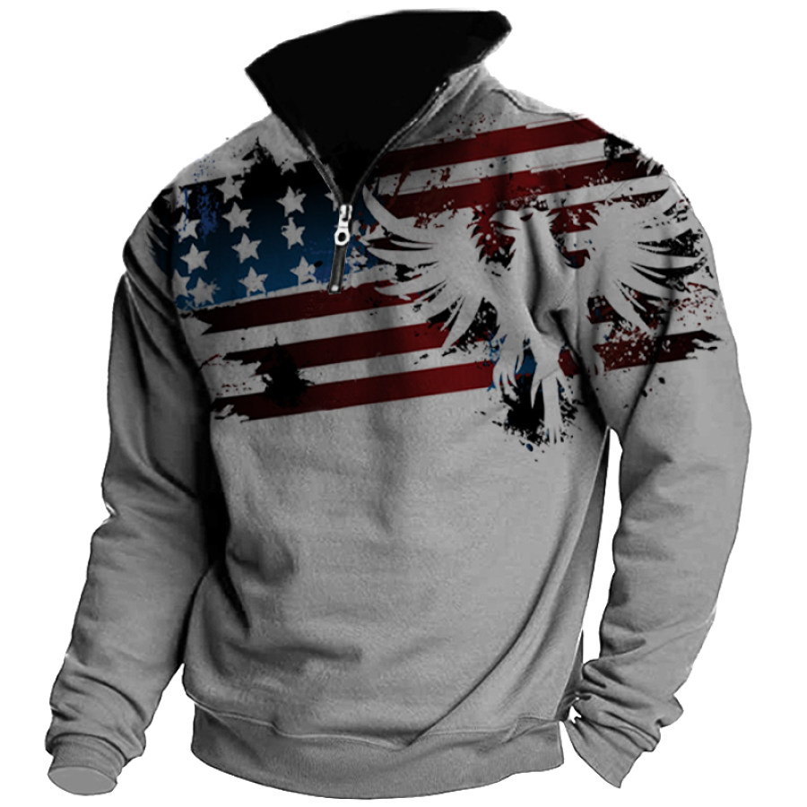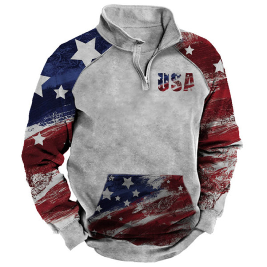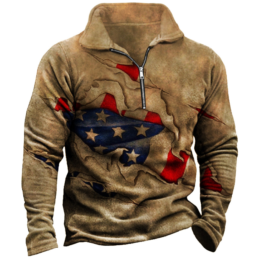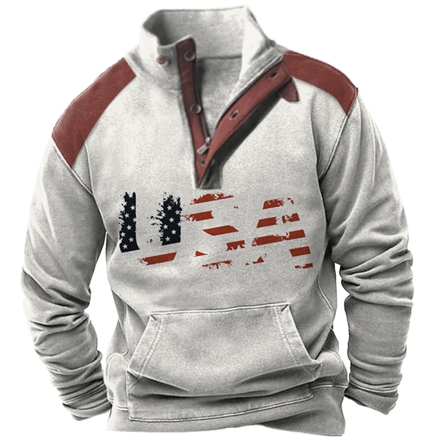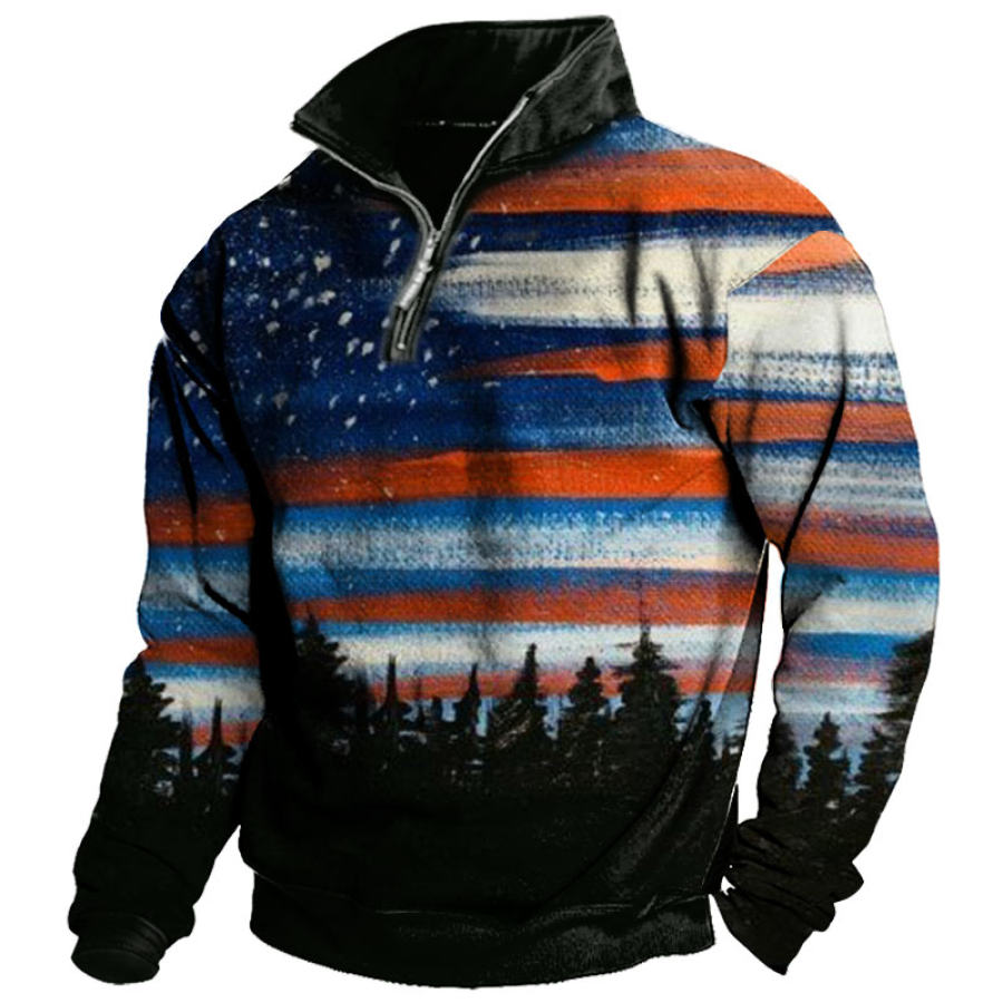 Men's Outdoor American Flag Casual Stand Collar Sweatshirt |