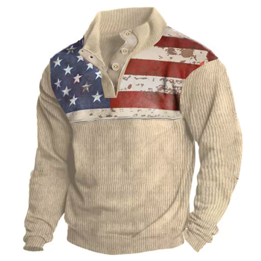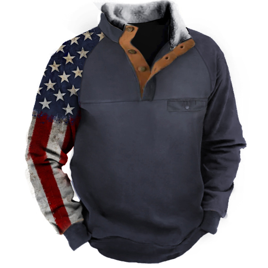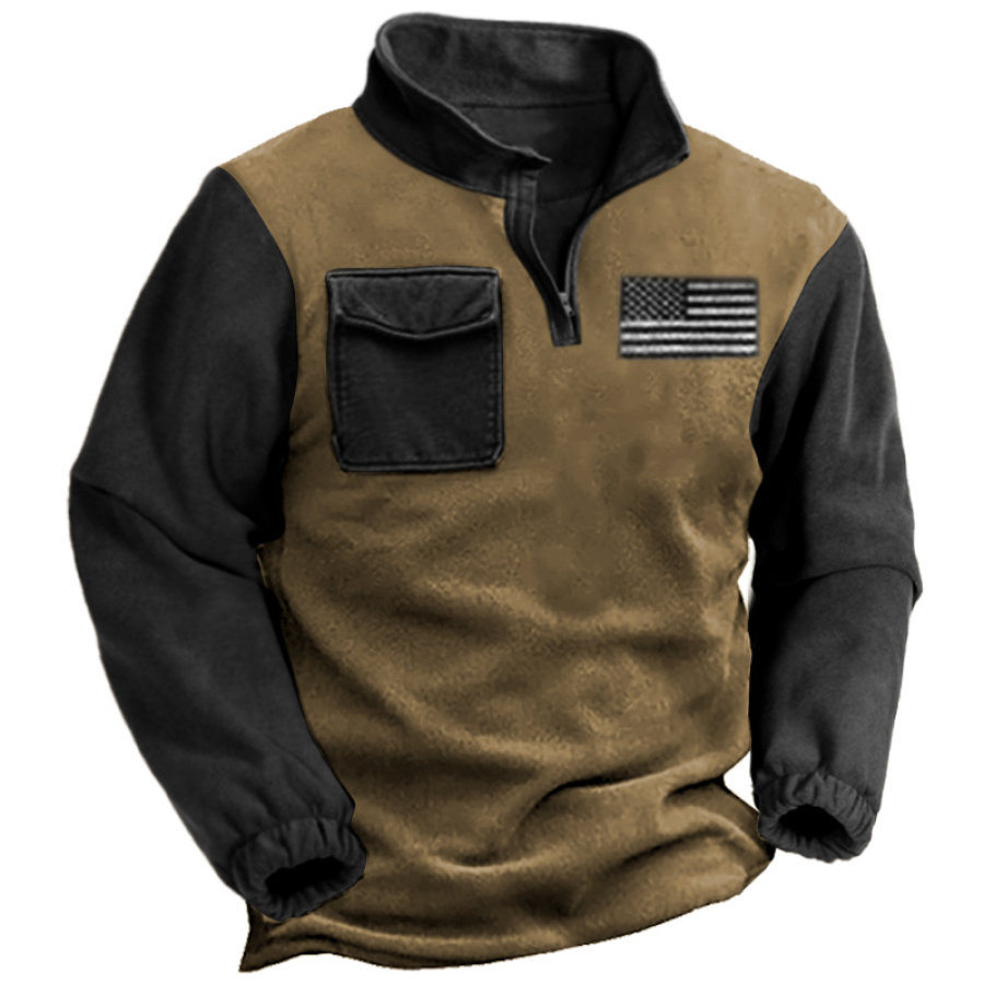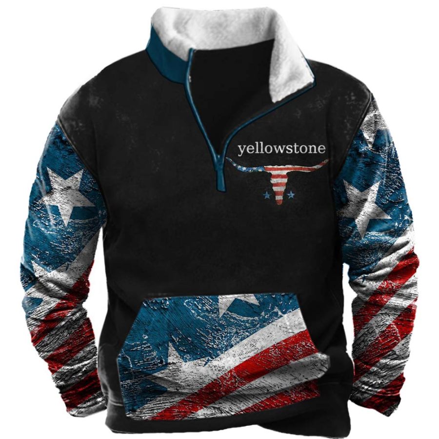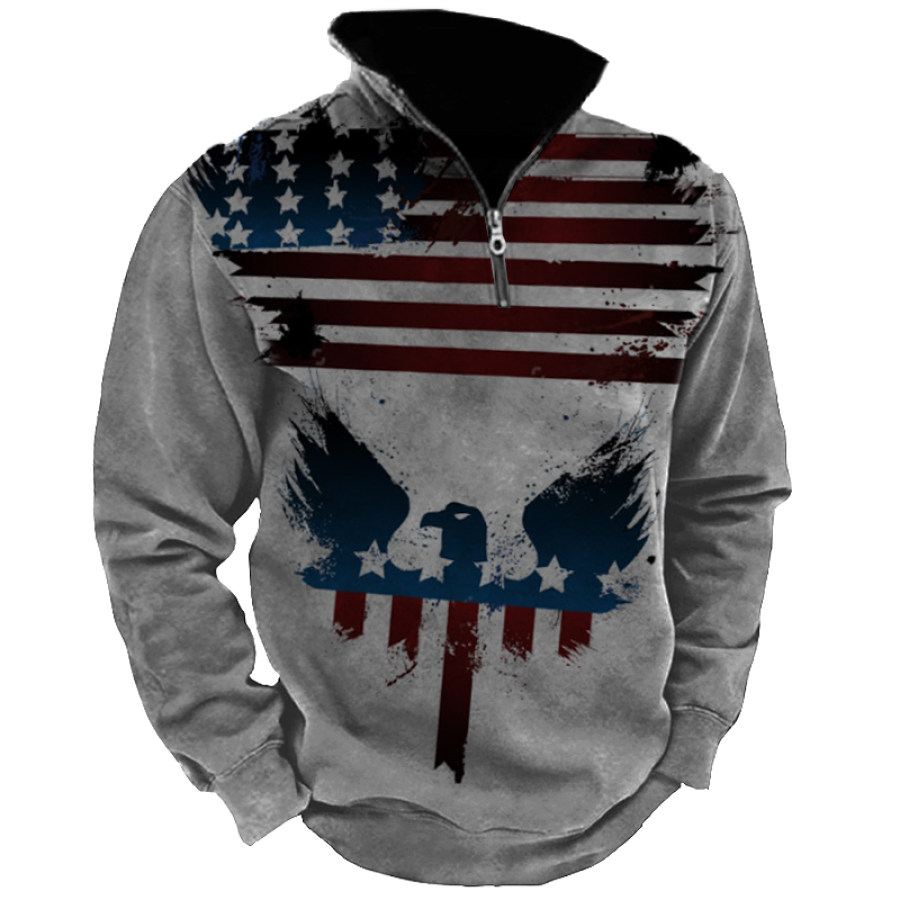 Men's Outdoor American Flag Casual Stand Collar Sweatshirt |