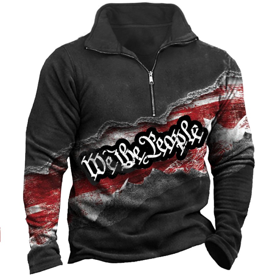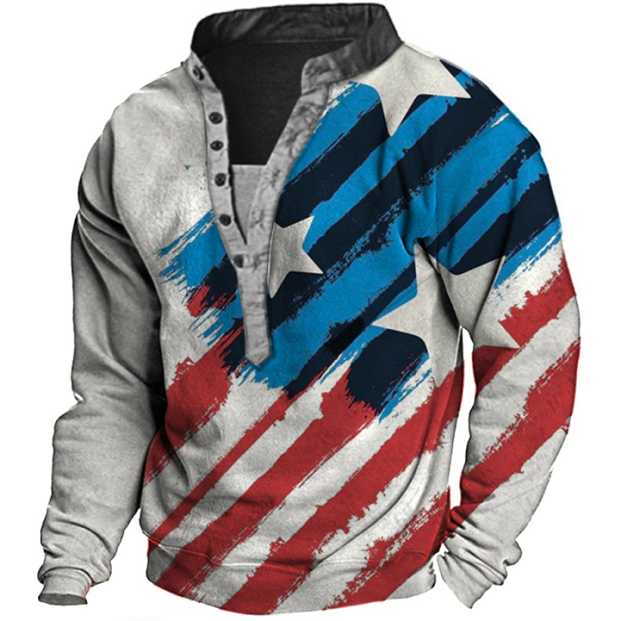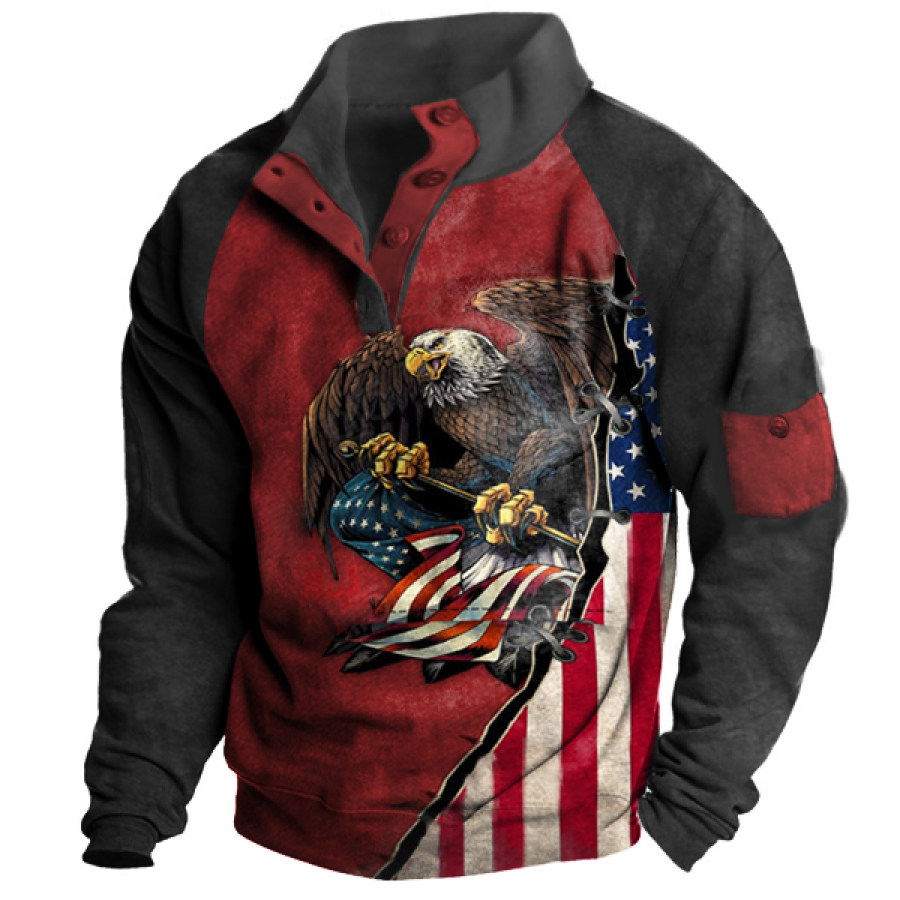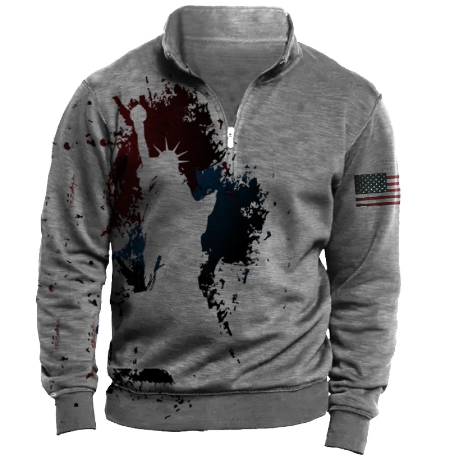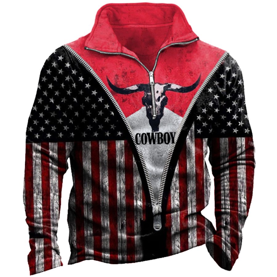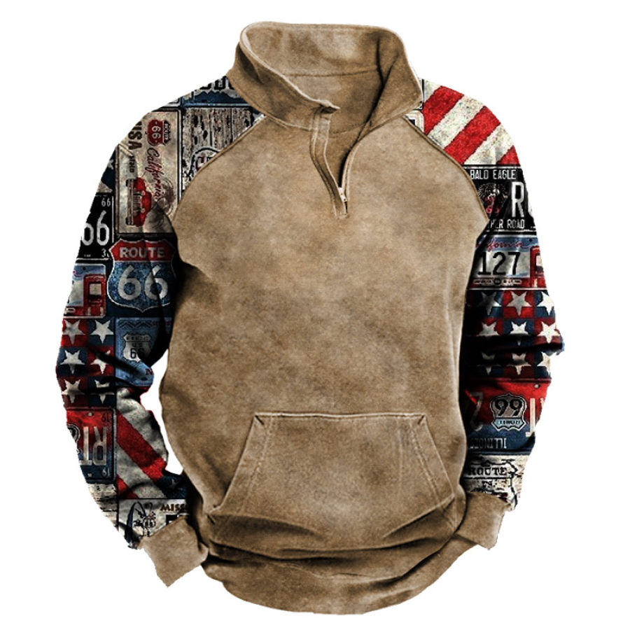Men's Outdoor American Flag Casual Stand Collar Sweatshirt |