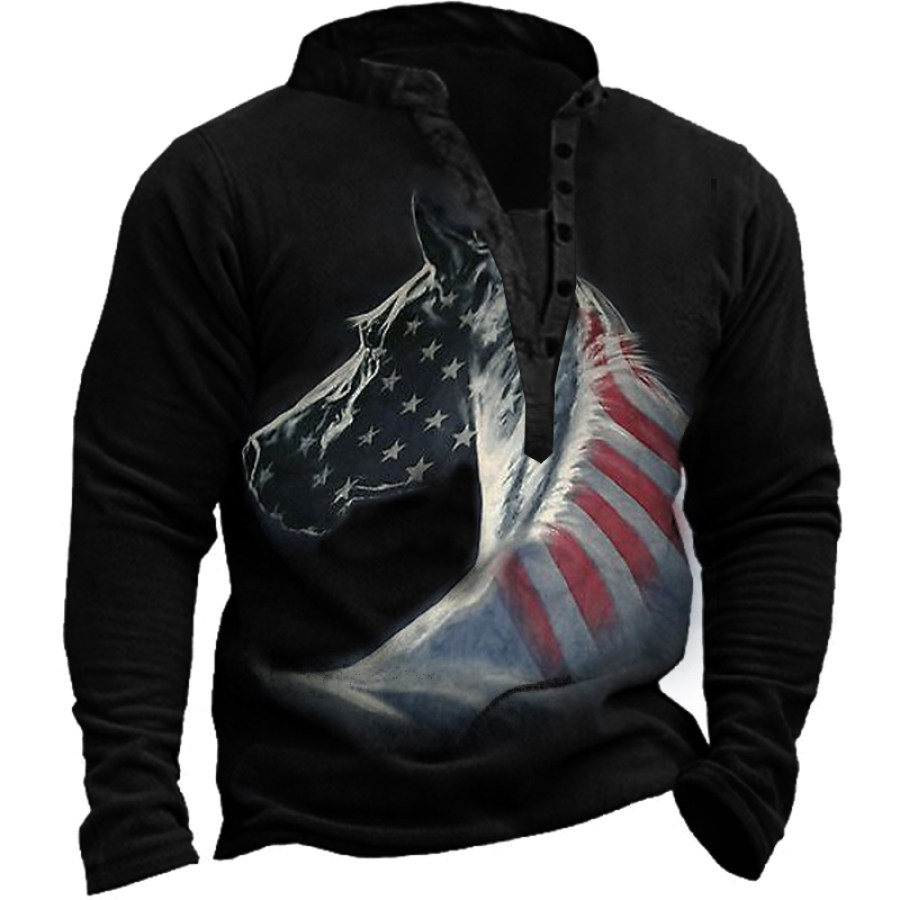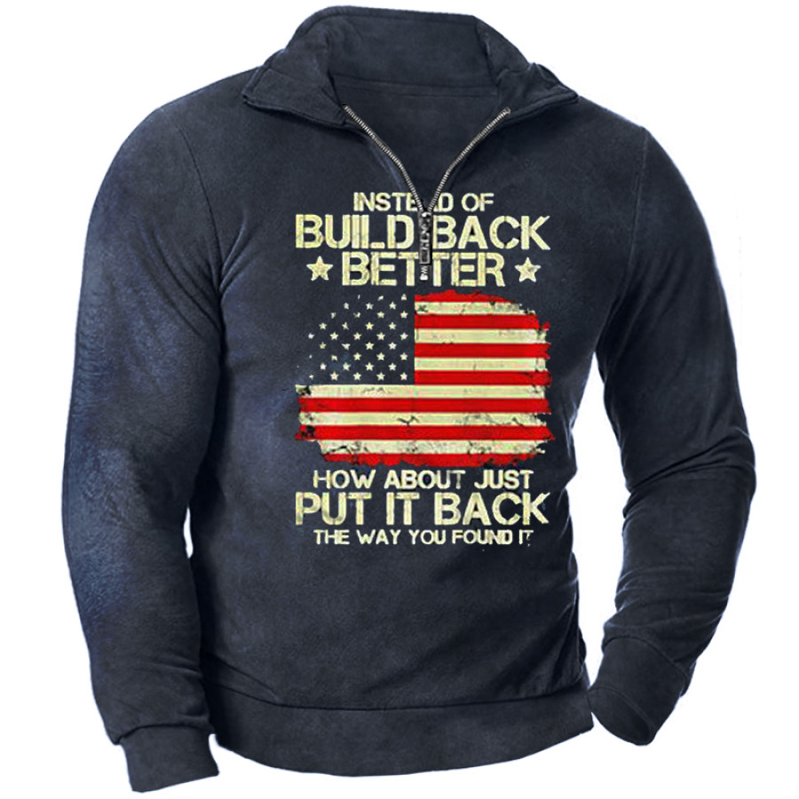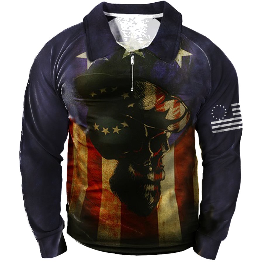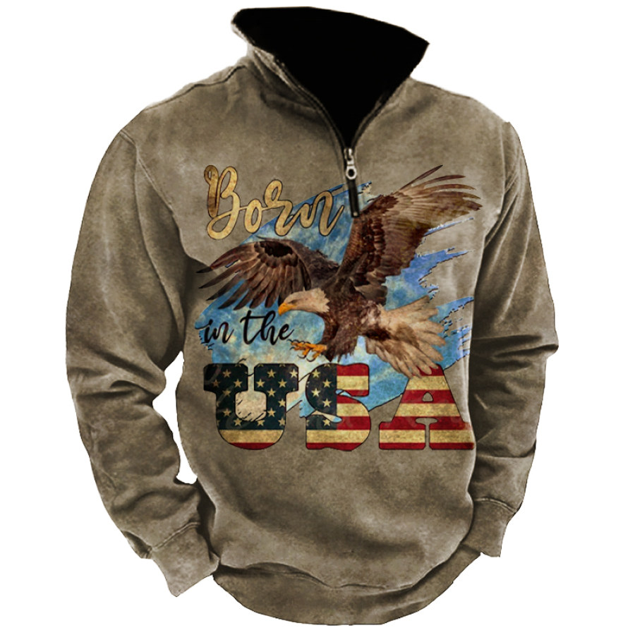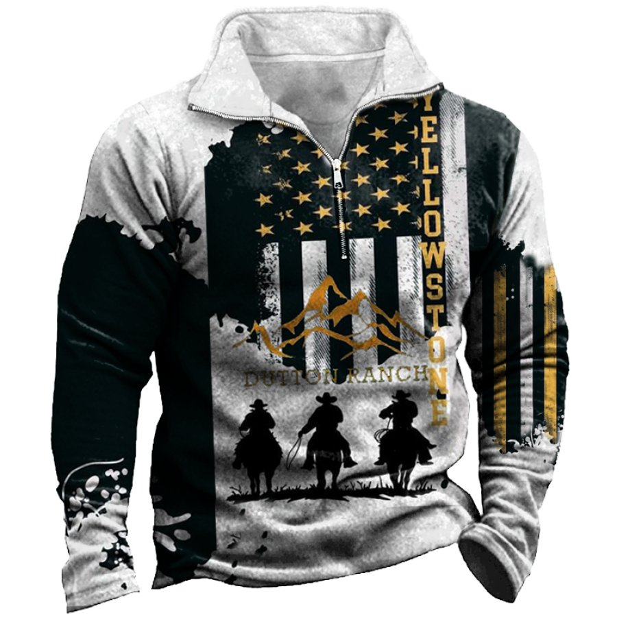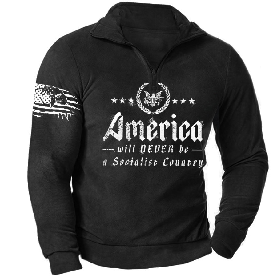 Men's Outdoor American Flag Casual Stand Collar Sweatshirt |