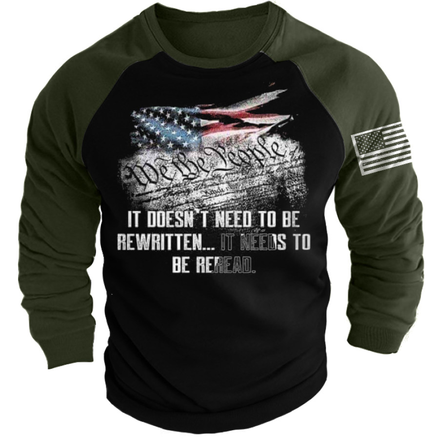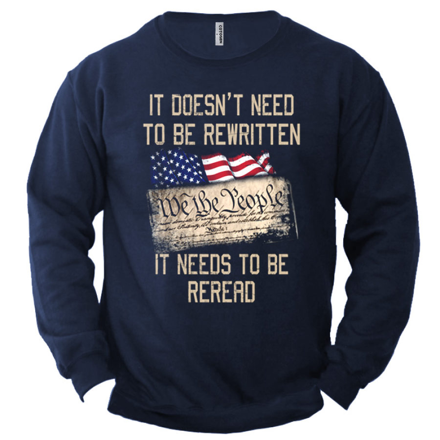 We The People It Needs To Be Reread Men's American Flag Print Sweatshirt |
