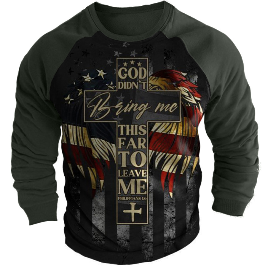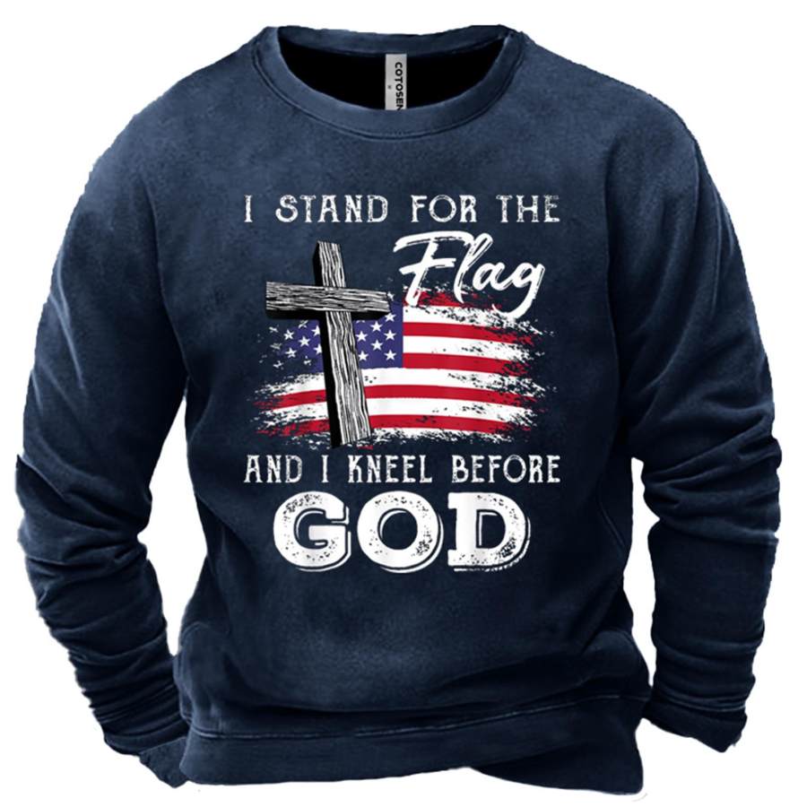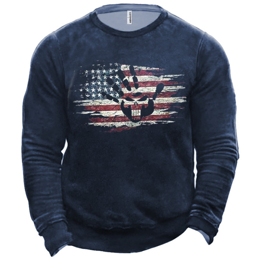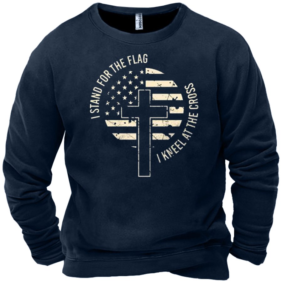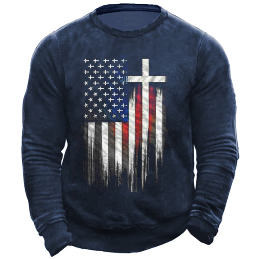 Men's American Flag Cross Print Crew Neck Sweatshirt |