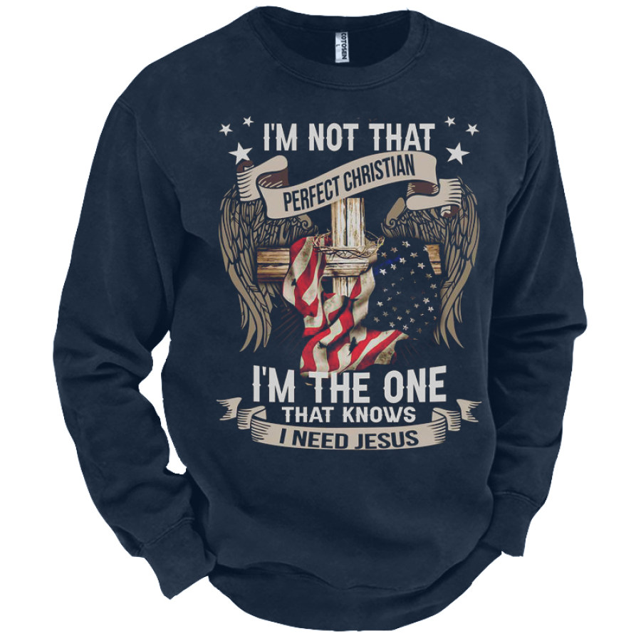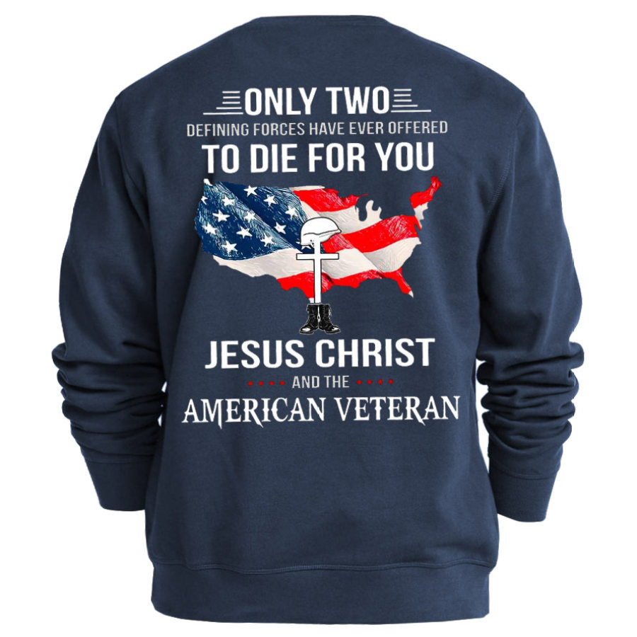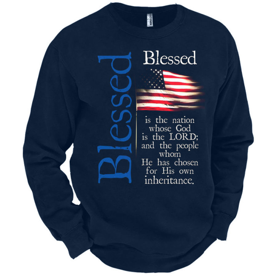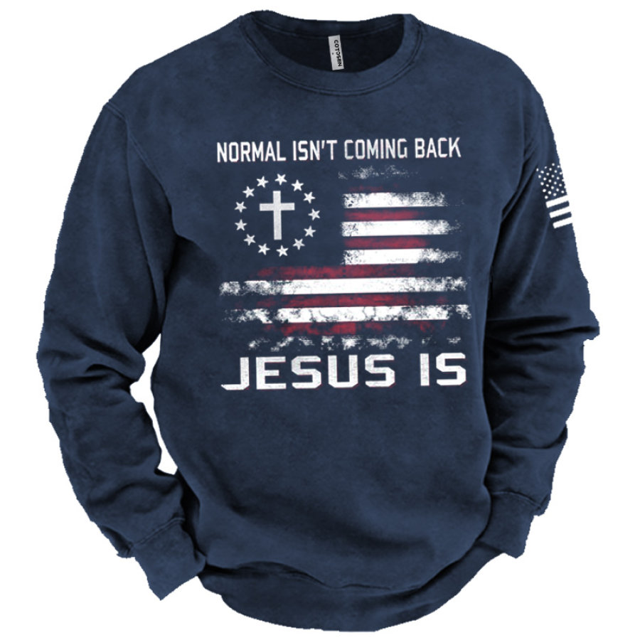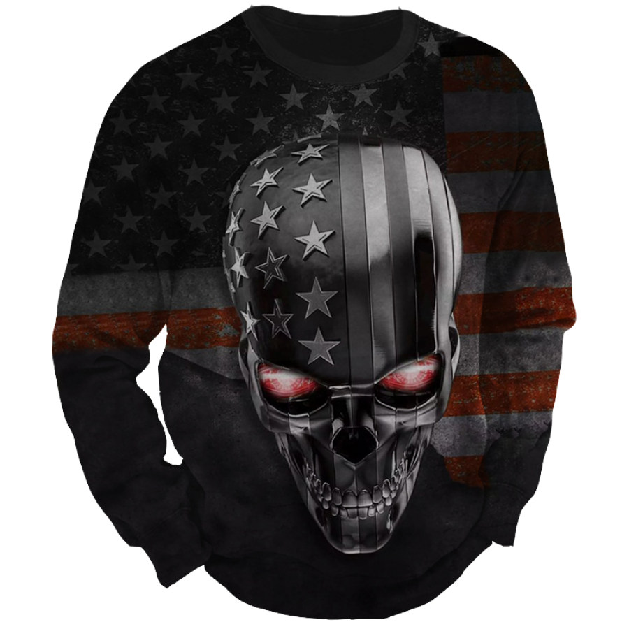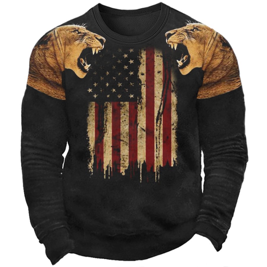 Men's American Flag Cross Print Crew Neck Sweatshirt |