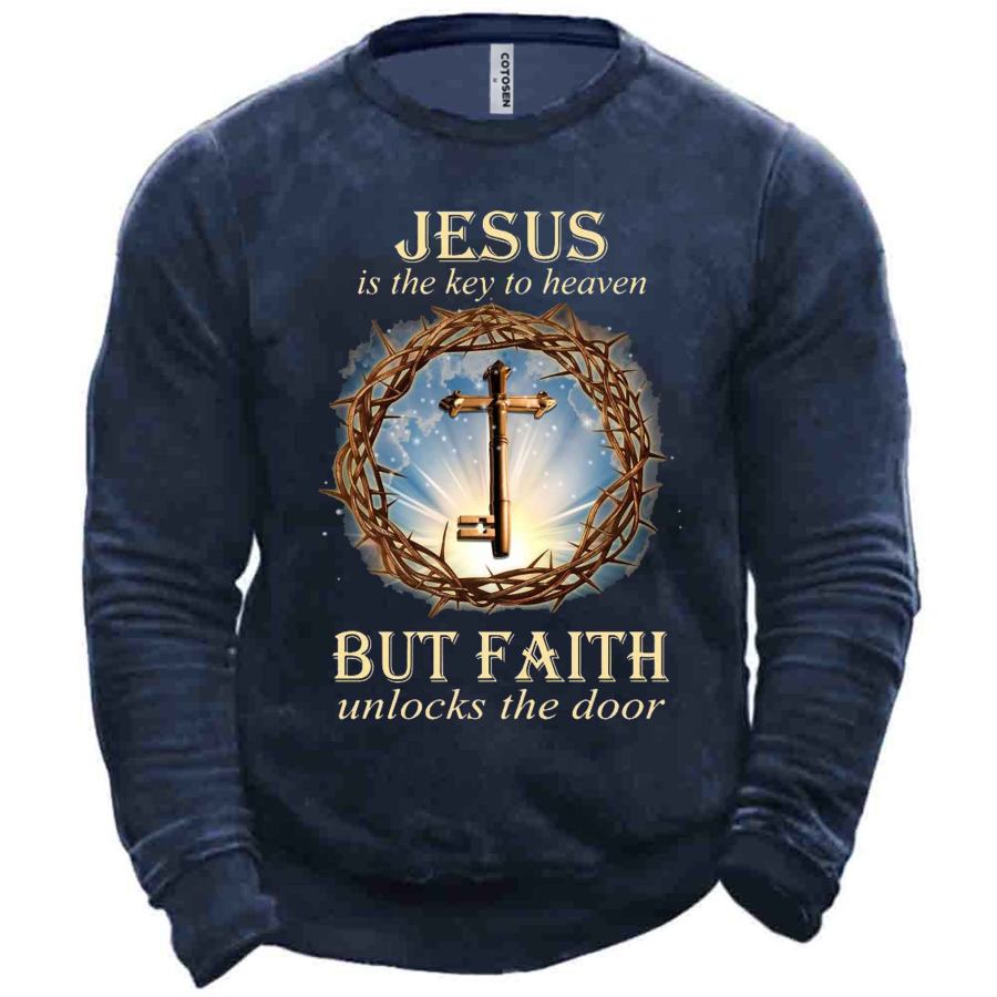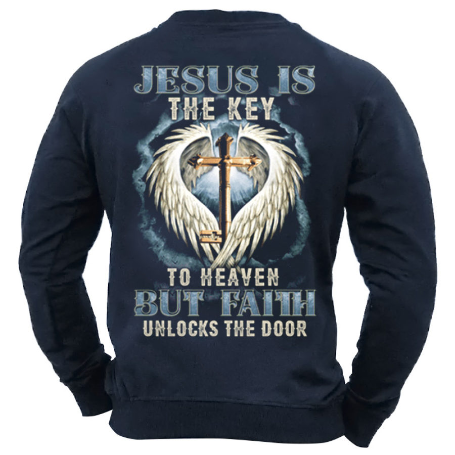 Jesus Is The Key Men's Jesus Cross Print Sweatshirt |