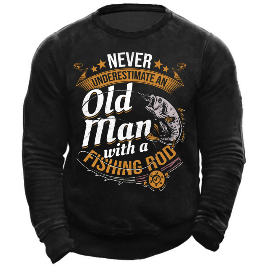 Never Undersetimate An Old Man With A Fishing Rod Men's Sweatshirt |