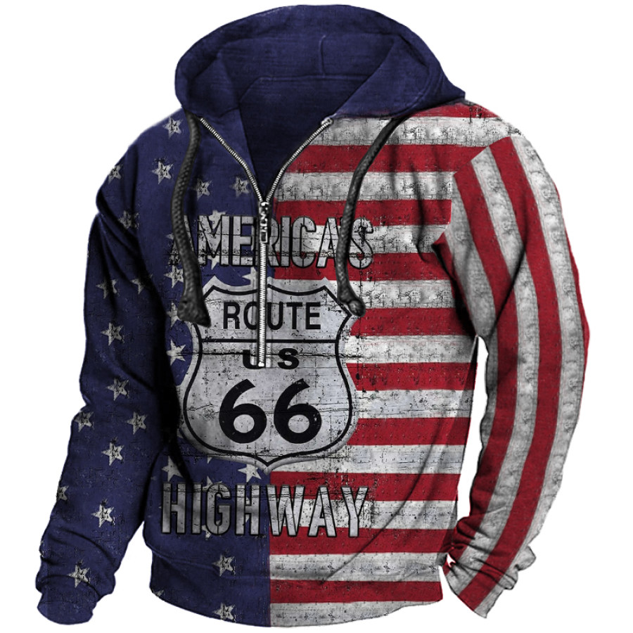 Men's Outdoor Route 66 Print Quarter Zip Sweatshirt |