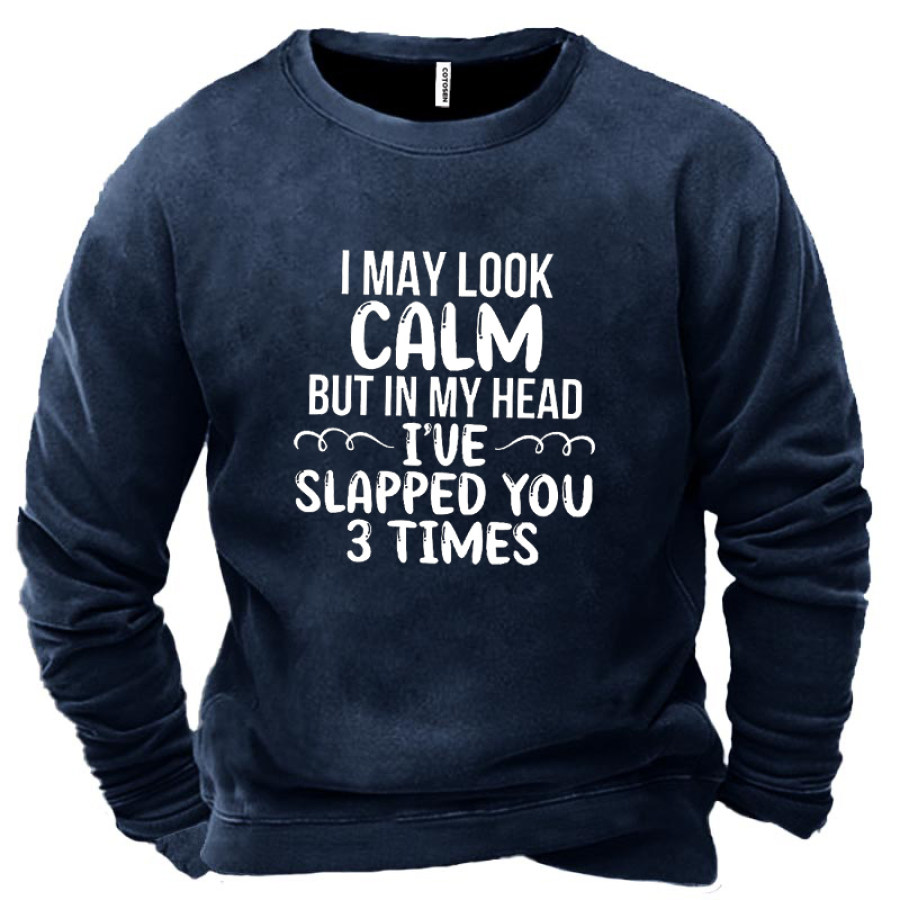 I May Look Calm Crew Neck Simple Men's Sweatshirt |