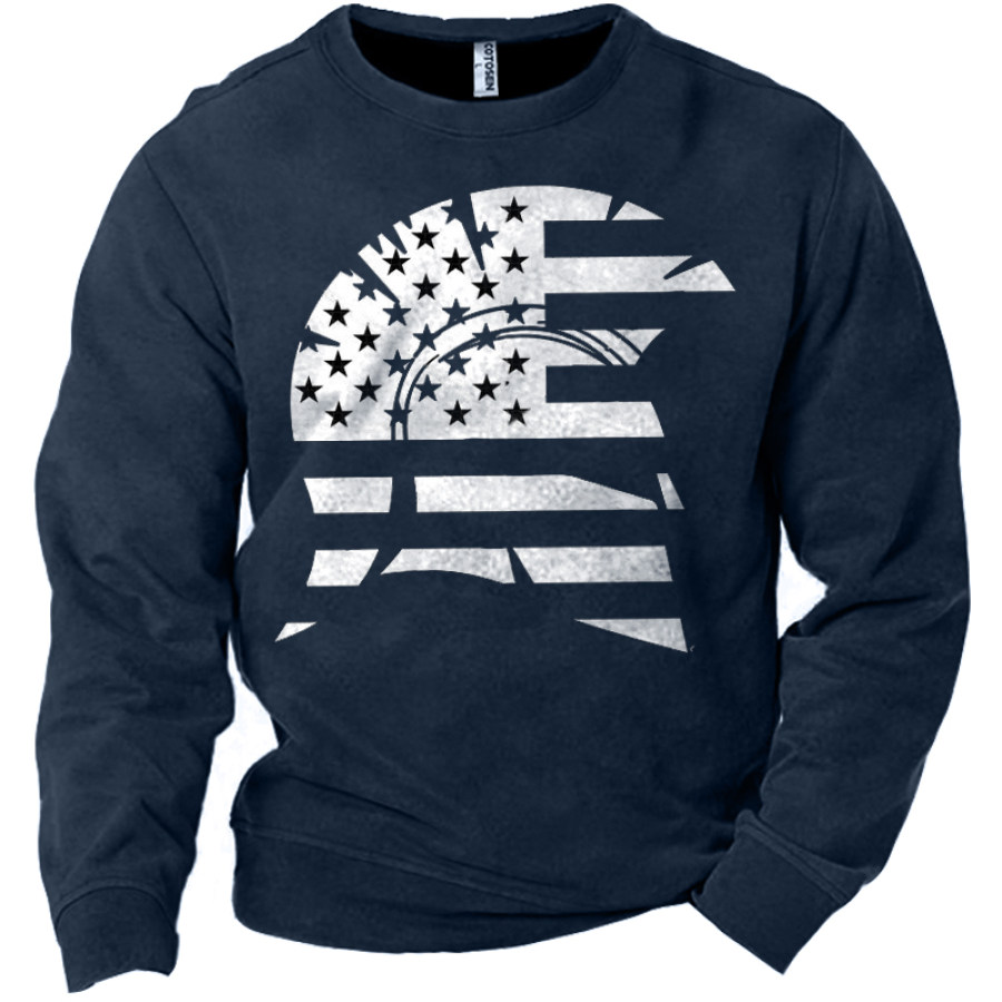 Men's American Flag Cross Print Crew Neck Sweatshirt |