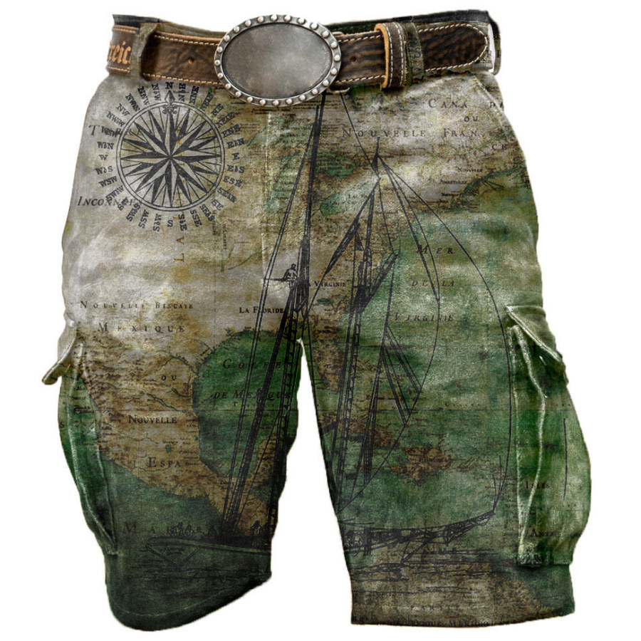 Men's Outdoor Tactical Retro World Map Tactical Shorts |