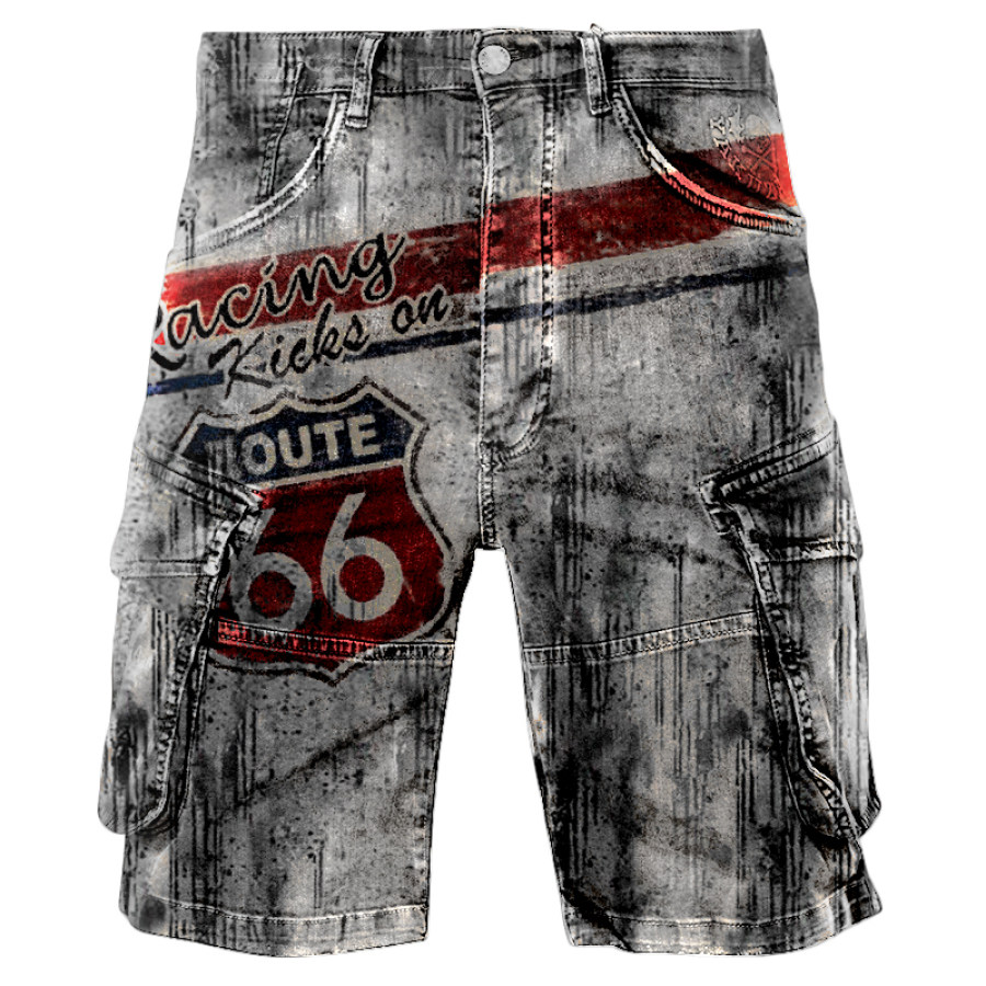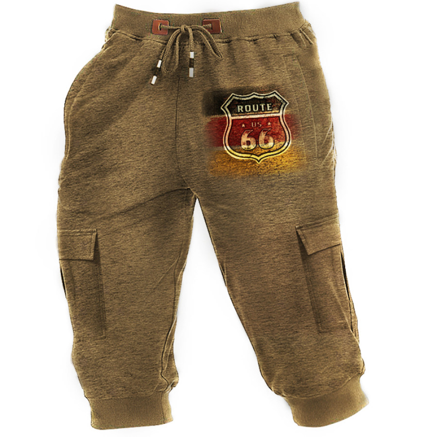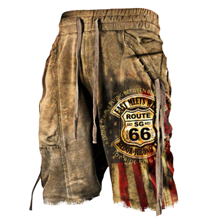Route 66 American Flag Print Men's Outdoor Casual Tactical Shorts |