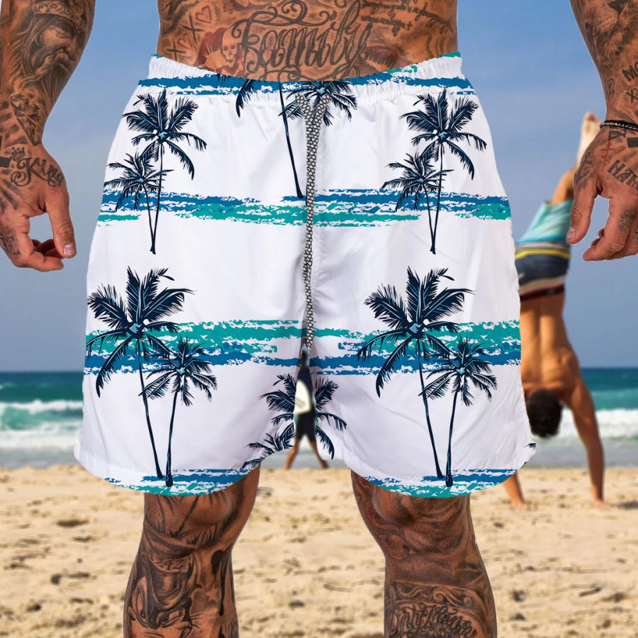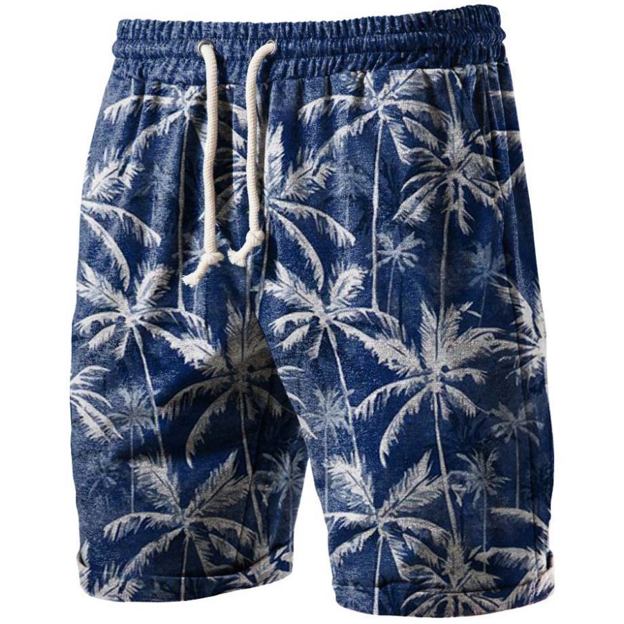 Men's Palm Tree Vacation Drawstring Beach Shorts |