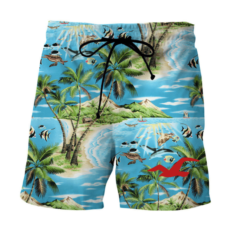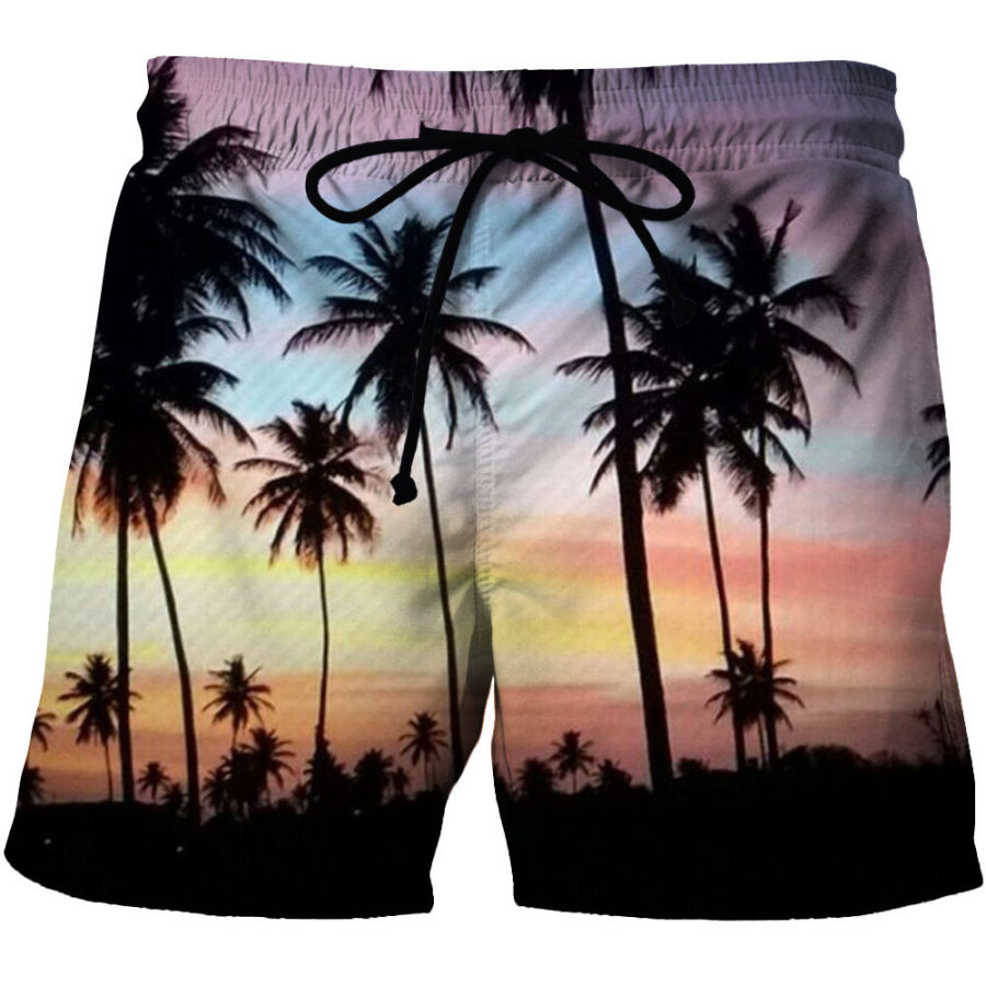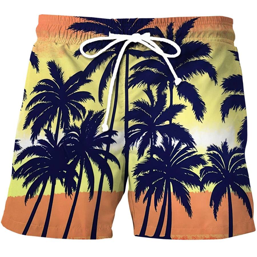 Men's Casual Hawaiian Coconut Print Resort Beach Shorts |